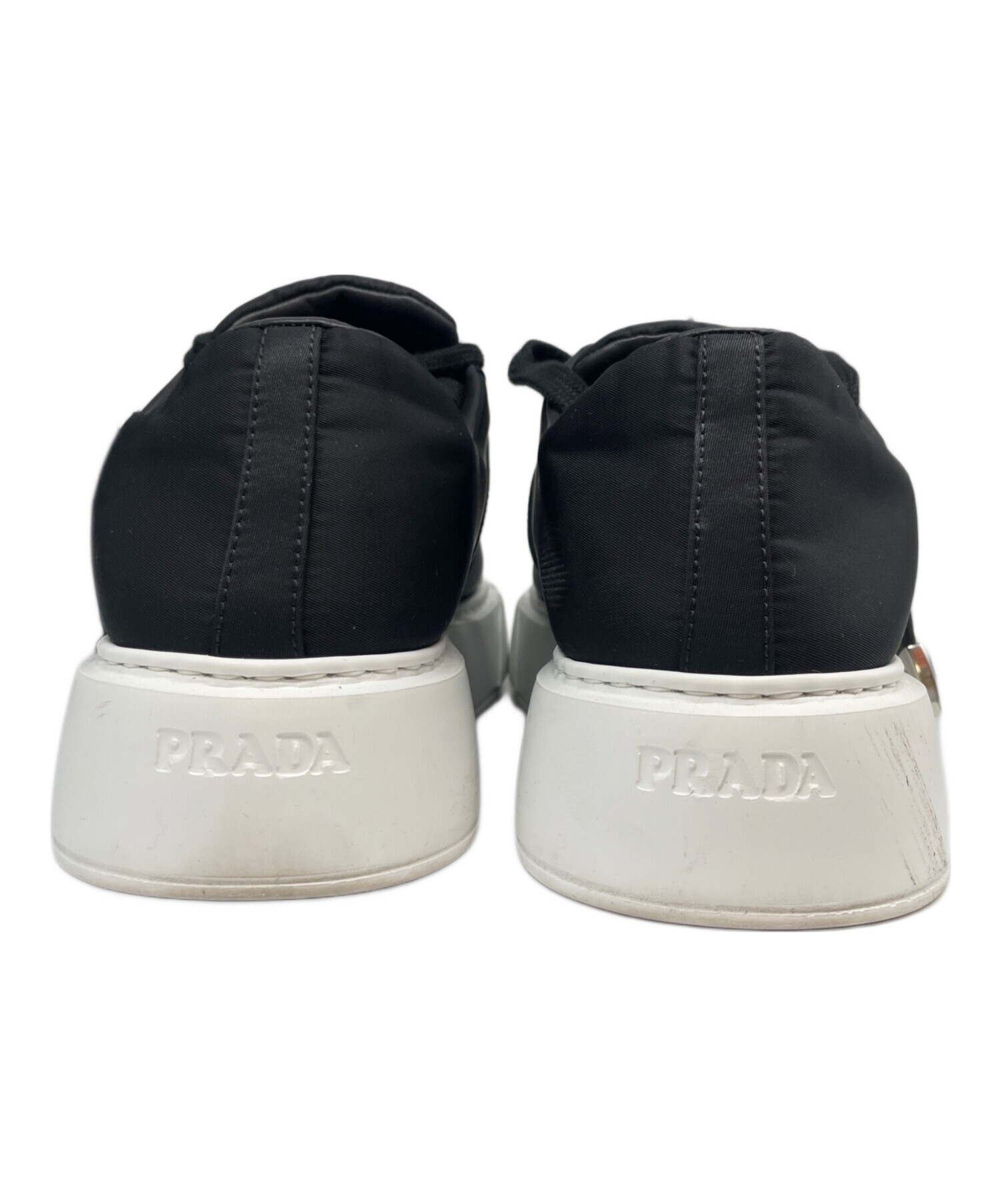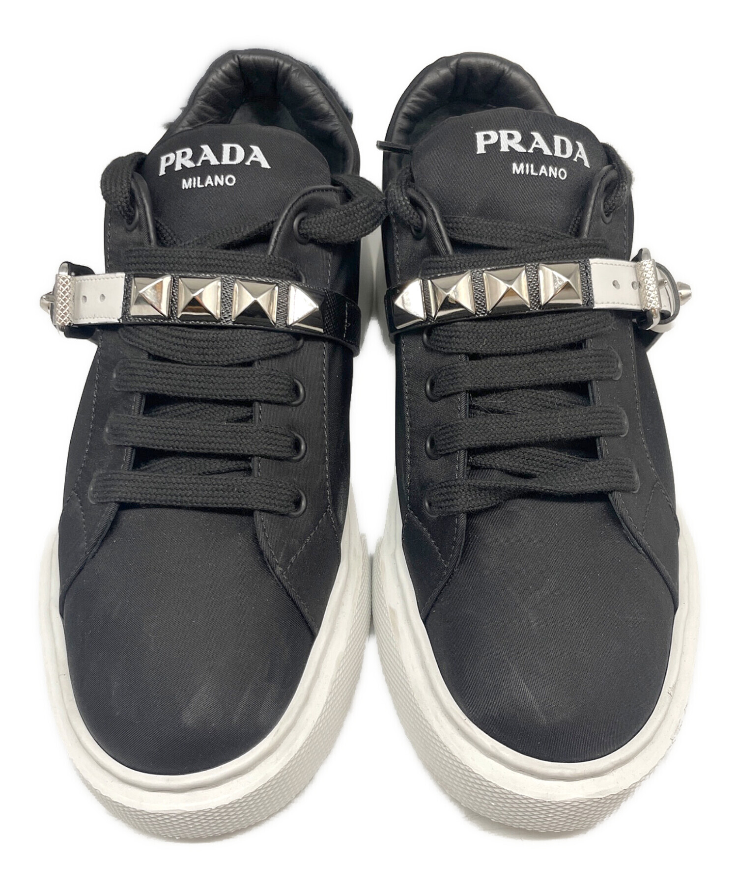 | スタッフコメント | プラダのボリュームスニーカーでございます。スタッズバックルの留め具がエッジが効いており、足元から存在感を放ちます。シュータンとヒールにはブランドロゴが配されていて、一目でわかるデザインとなっています。 |