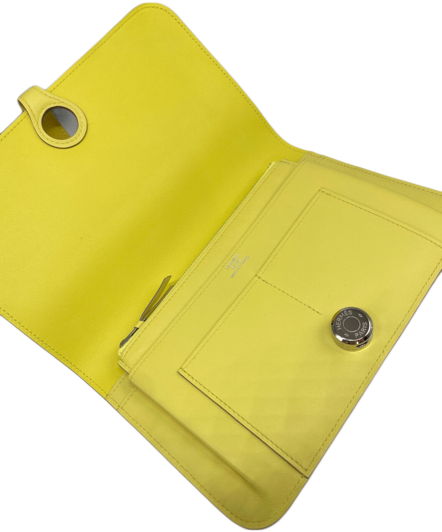 | スタッフコメント | 1997年に登場した、エルメスの財布シリーズ ドゴンでございます。エルメスらしいシンプルで洗練されたデザインと、機能性を両立しています。鮮やかなイエローカラーが目を惹く華やかなアイテムです。 |