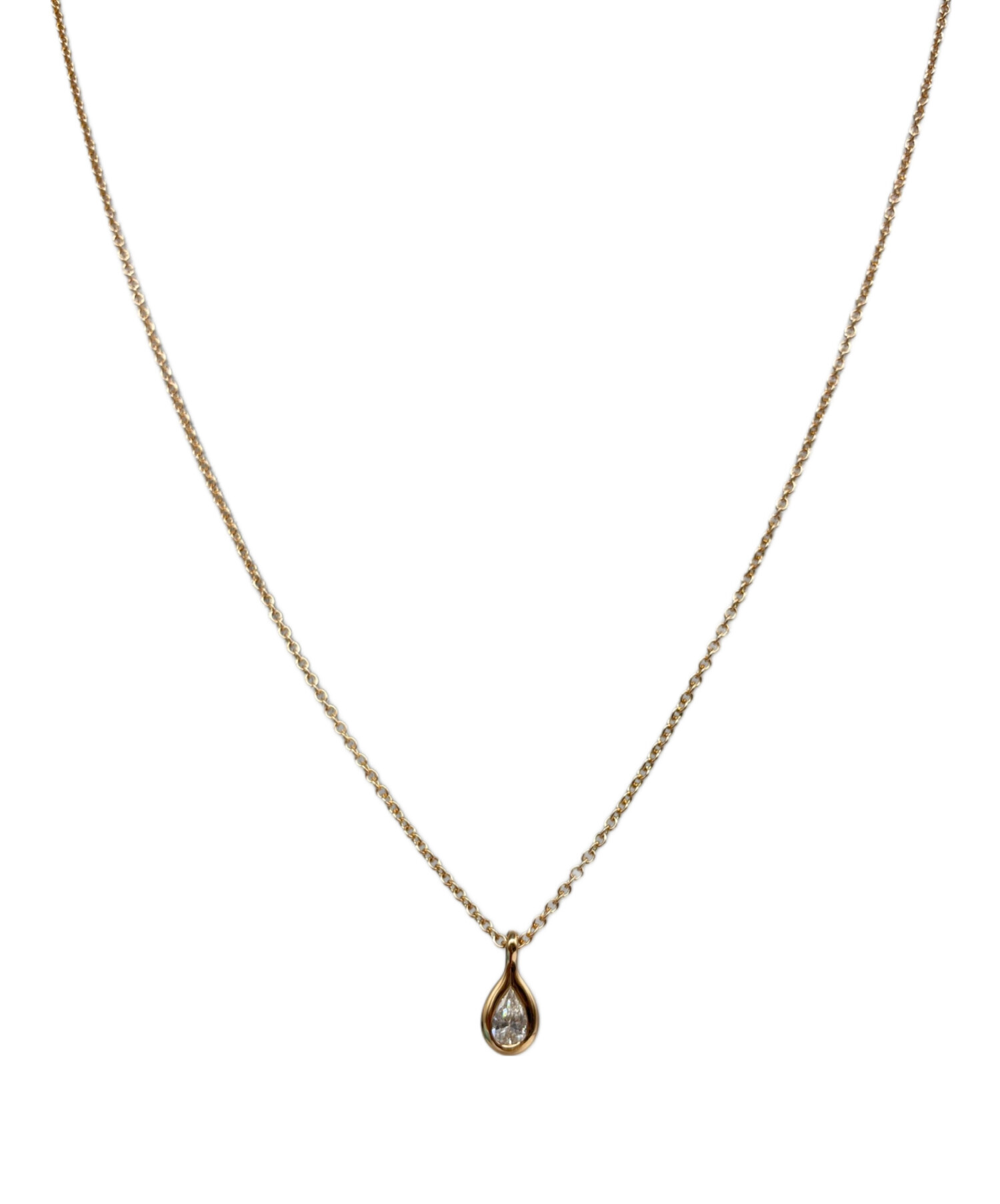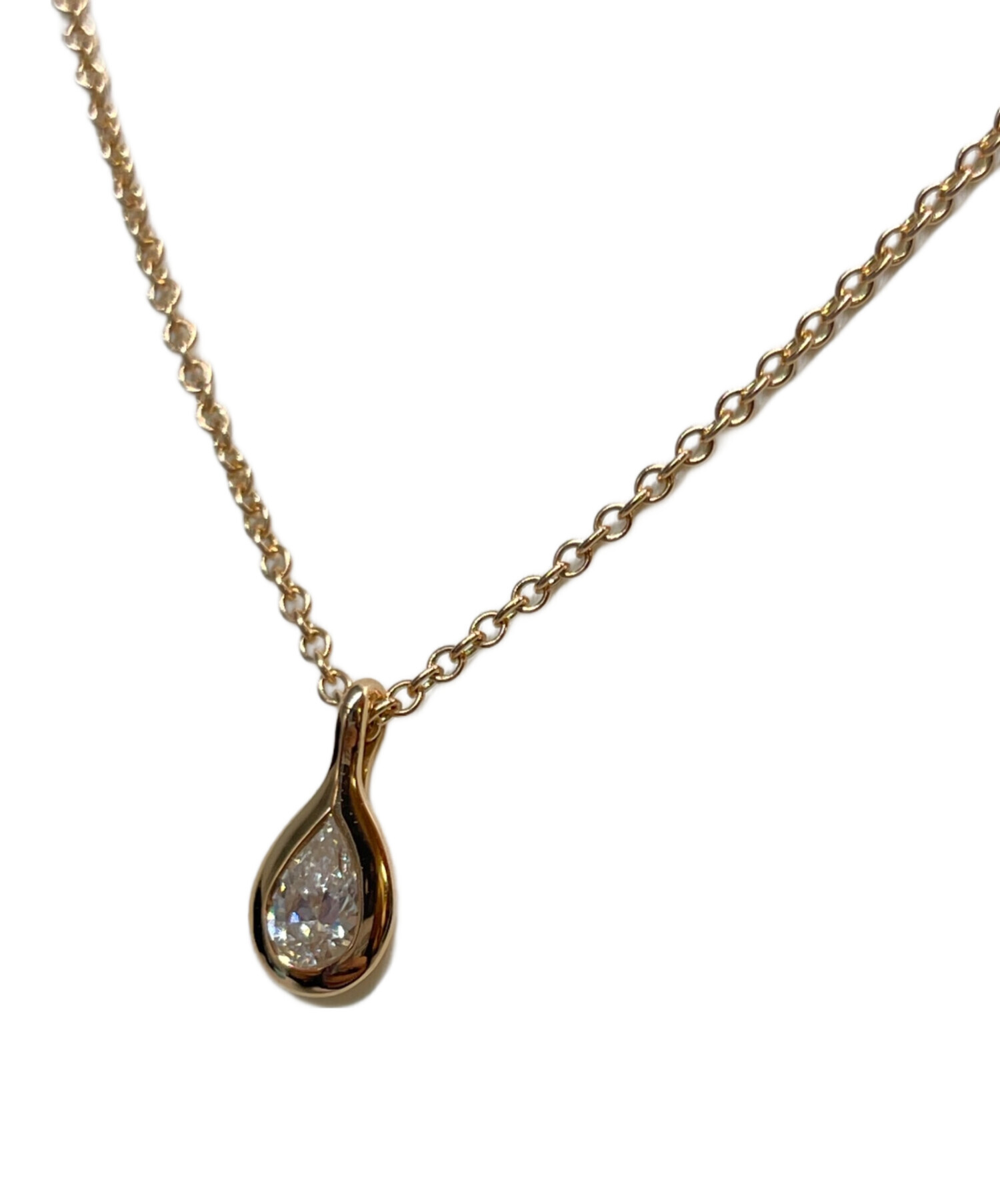 | スタッフコメント | Tiffany & Co.のネックレスでございます。トップにはペアシェイプ(洋梨型)のダイヤモンドを使用し、ラグジュアリーさと高級感を兼ね揃えております。ピンクゴールドの輝きがお顔周りをより華やかに魅せてくれます。 |