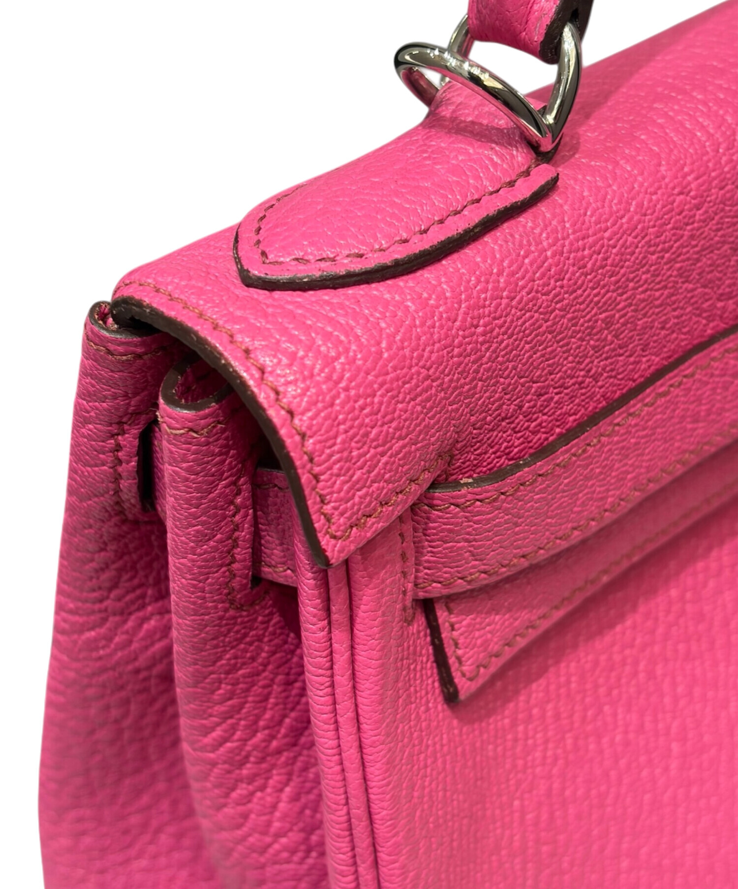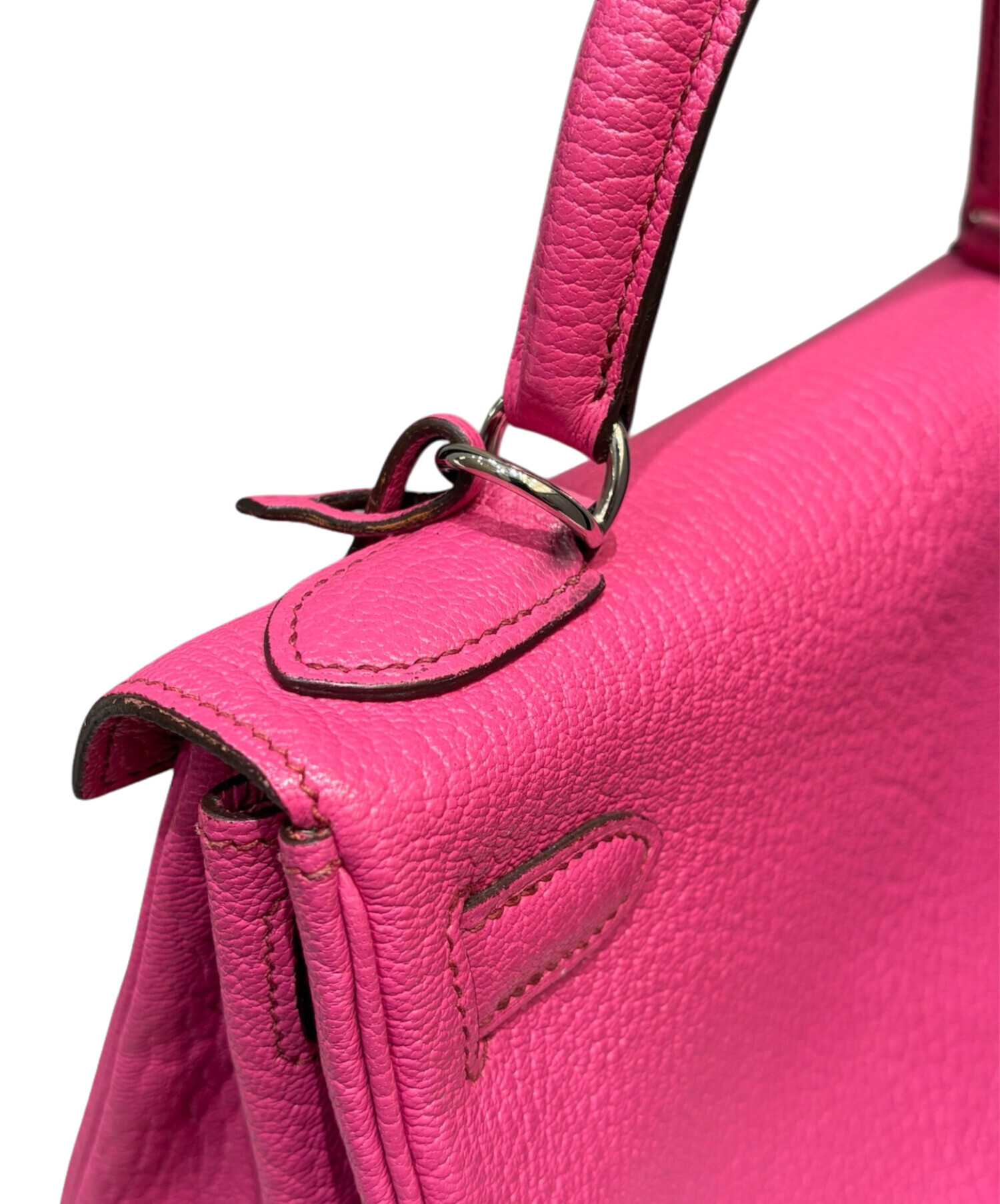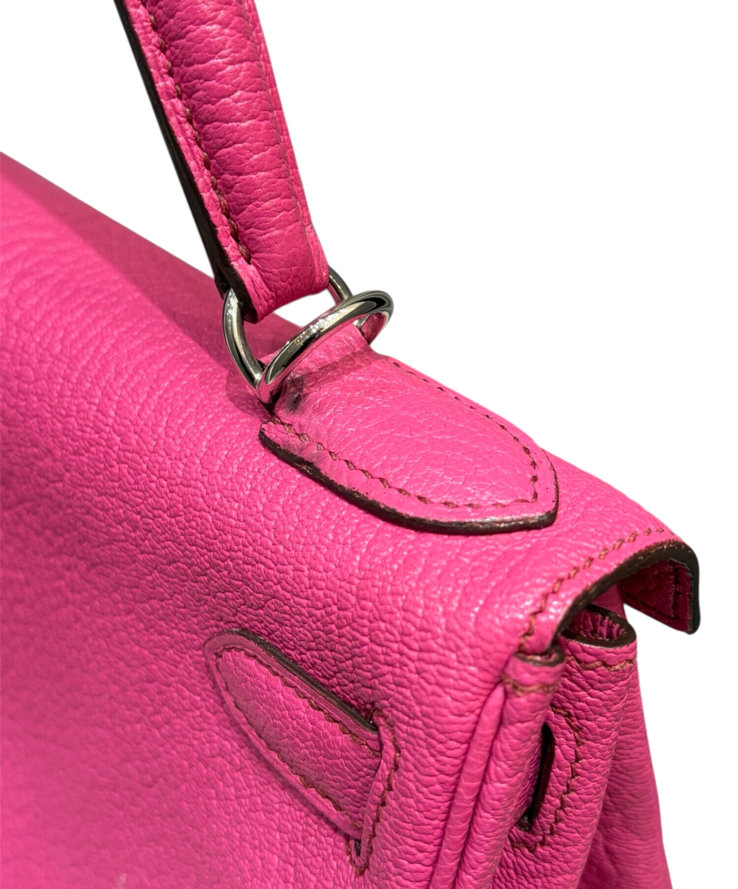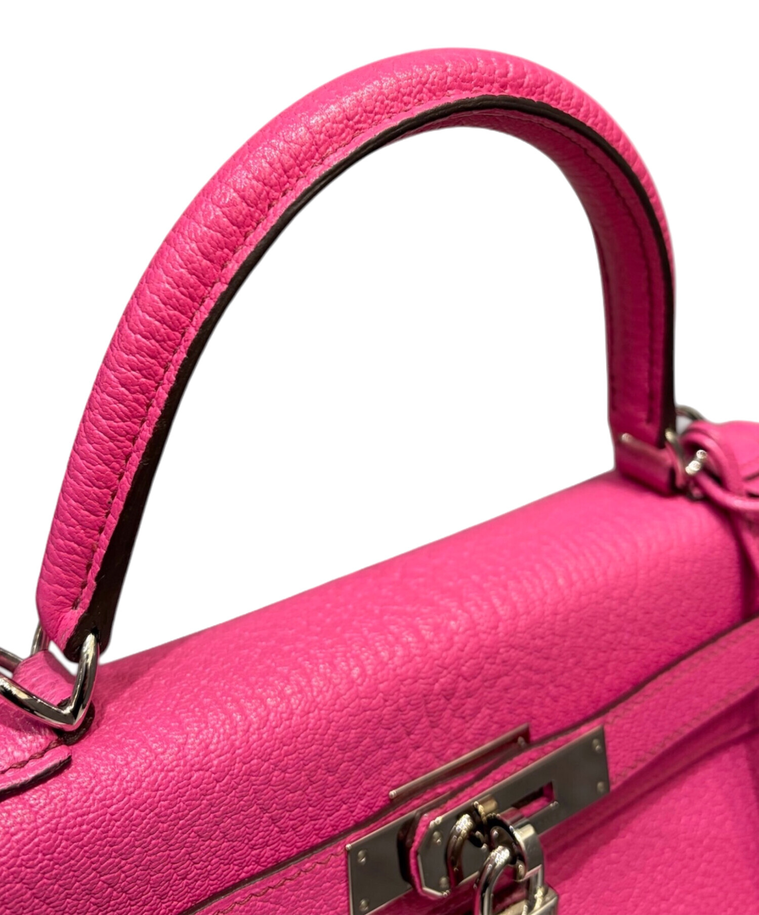 スタッフコメント HERMESのケリー28でございます。上品なサイズ感と実用性を兼ね備えたバッグです。内縫いならではの柔らかく女性らしいフォルムに、シェブルミゾル特有の美しいシボと軽やかさが加わり、日常使いでもエレガントな印象を演出します。鮮やかなピンクカラーはコーディネートの主役として映え、シルバー金具が全体を引き締める絶妙なバランス。華やかさと品格を兼ね備えた一品です。