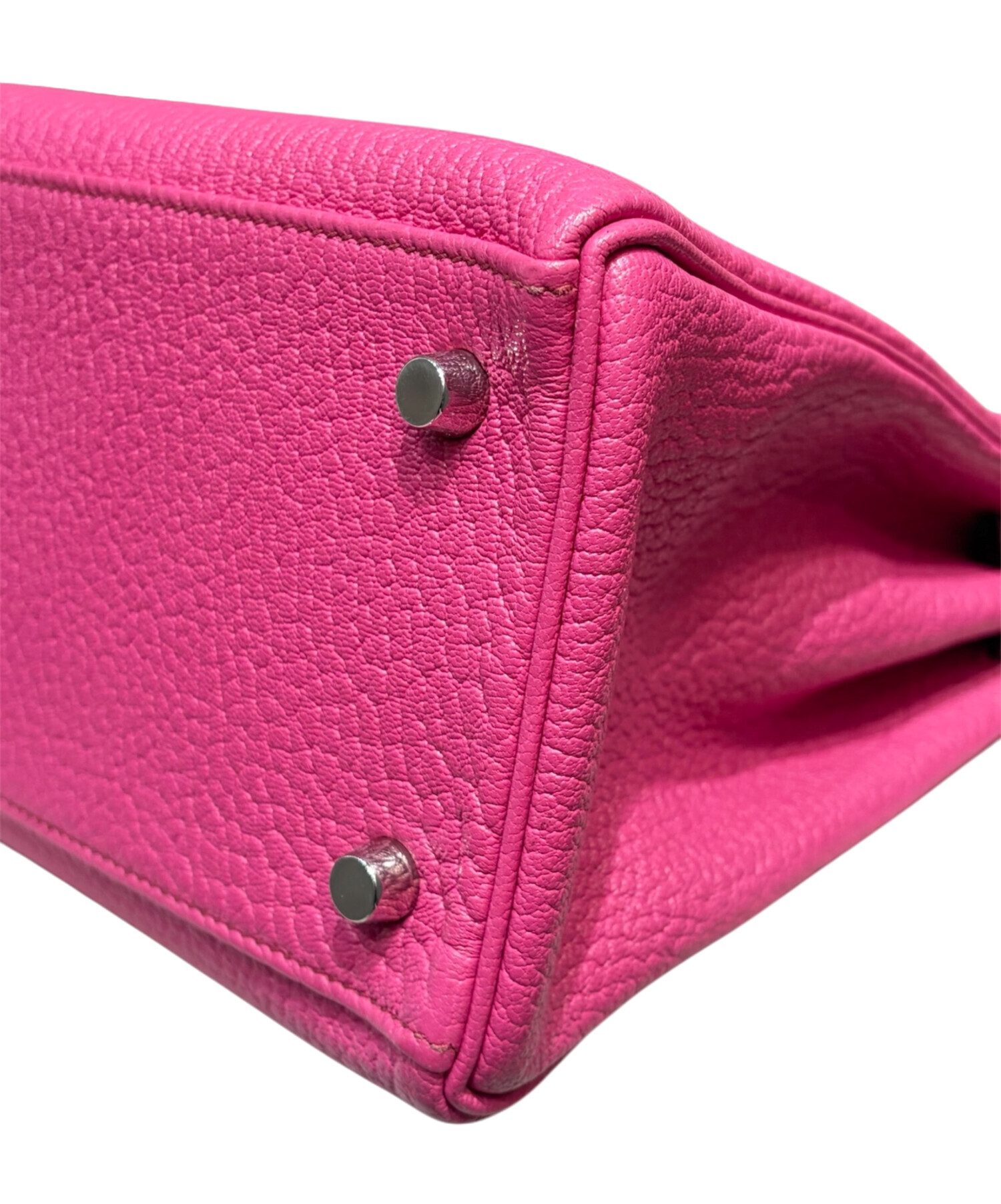 • HERMES(エルメス)HERMES (エルメス) ケリー28 内縫い/シルバー金具/シェブルミゾル/ピンク系/□J刻印/2006年 ピンク系 サイズ:28の古着・服飾アイテム 底鋲4つにキズ有