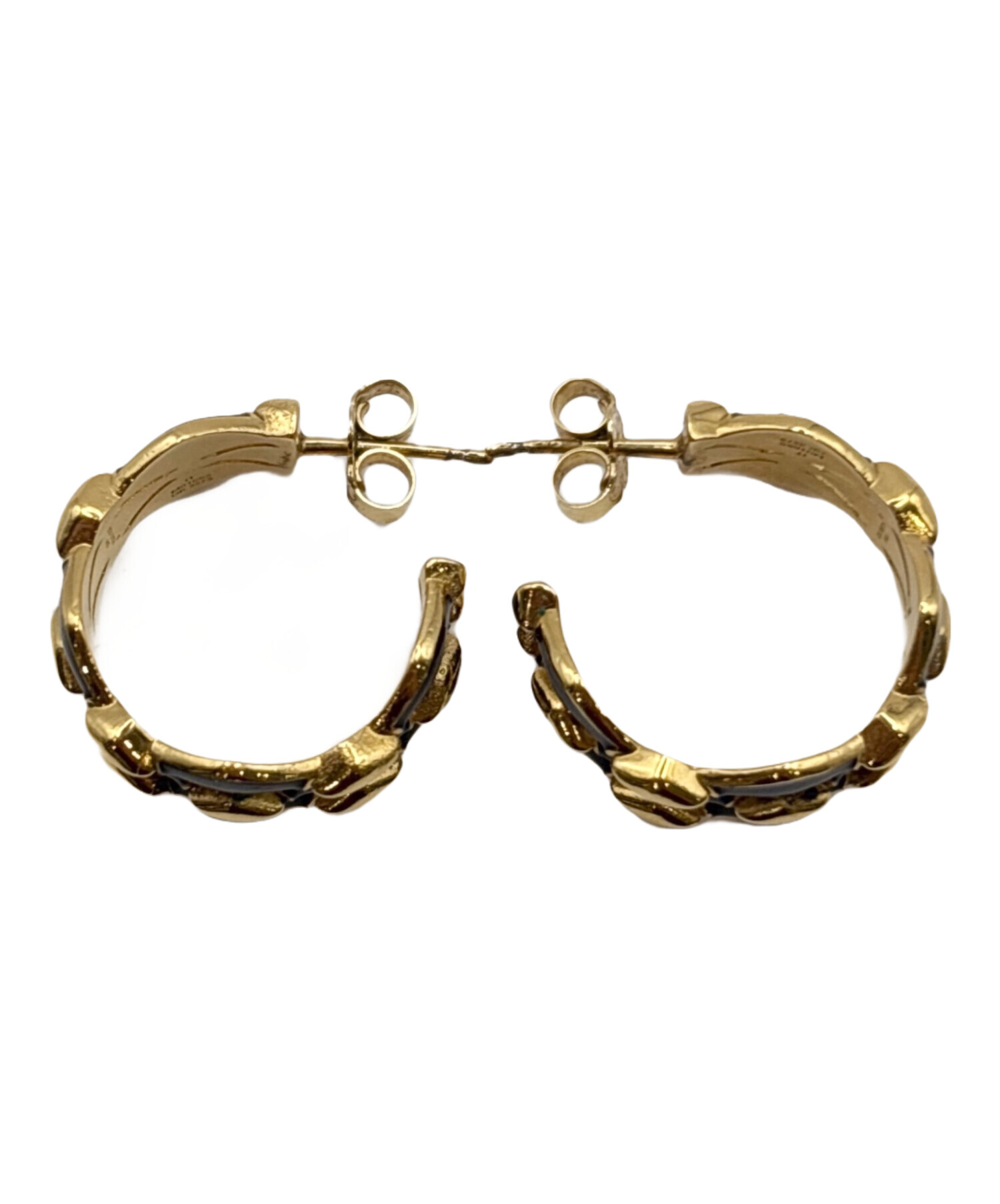 | スタッフコメント | メタル素材にゴールド仕上げを施し、ルイ・ヴィトンらしいラグジュアリー感を演出。立体的なイニシャル「LV」をあしらったスタッズデザインが洗練された印象的です。コンパクトなサイズ感で、デイリーからフォーマルまで幅広く使える万能アクセサリーでございます。 |