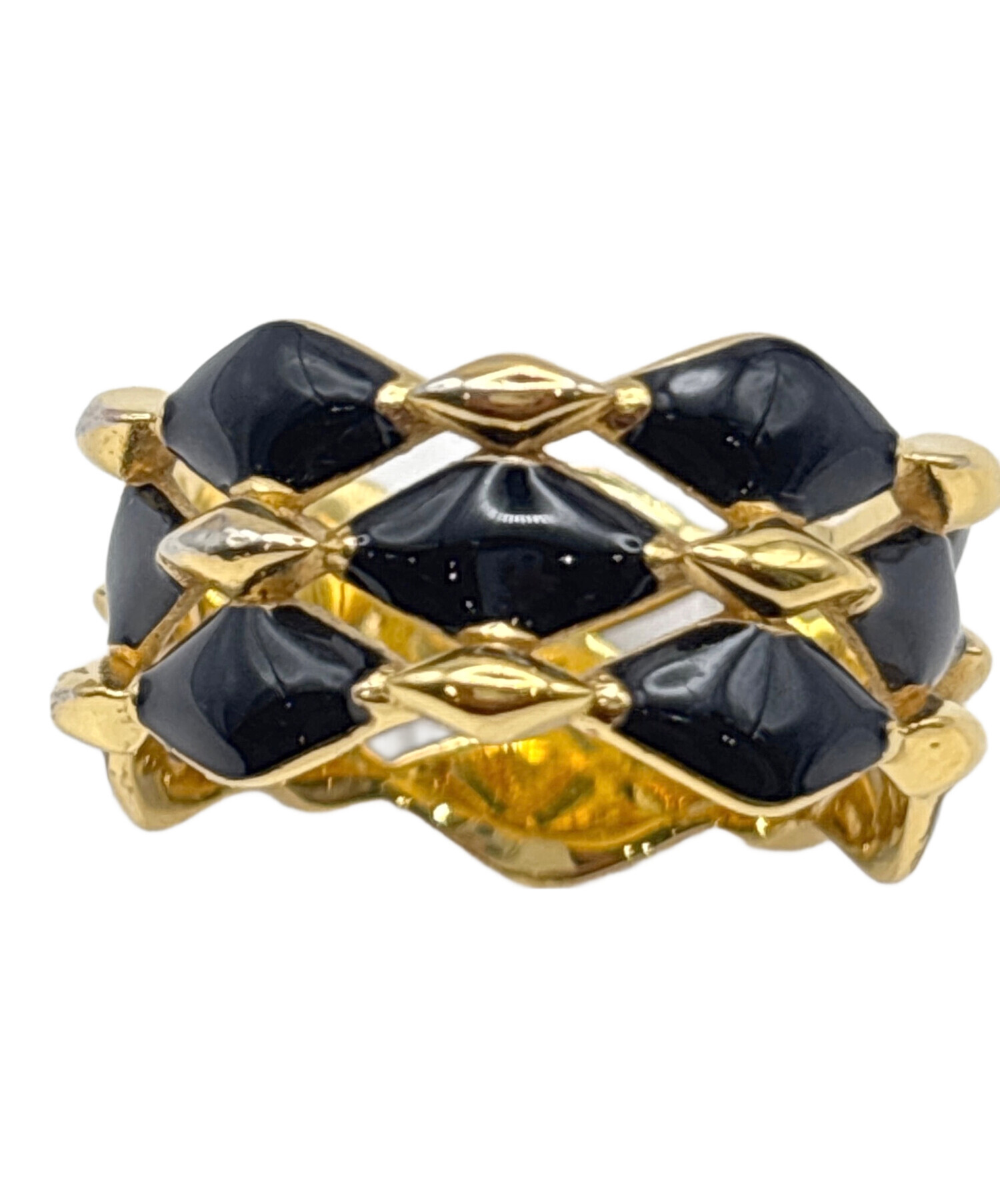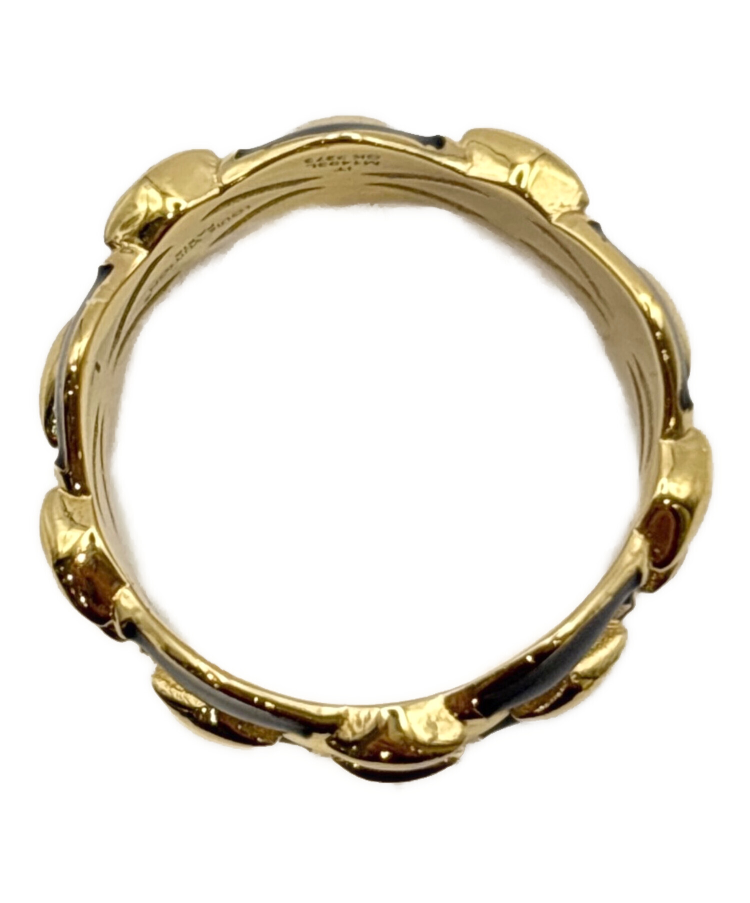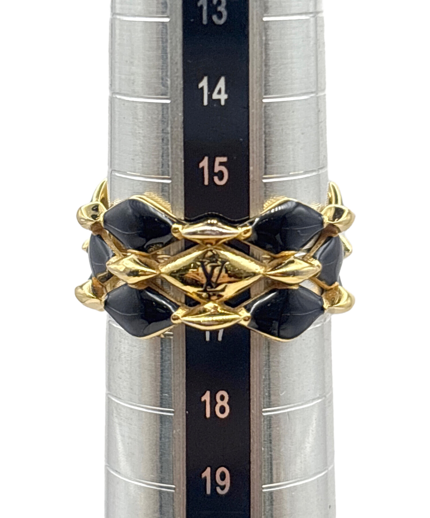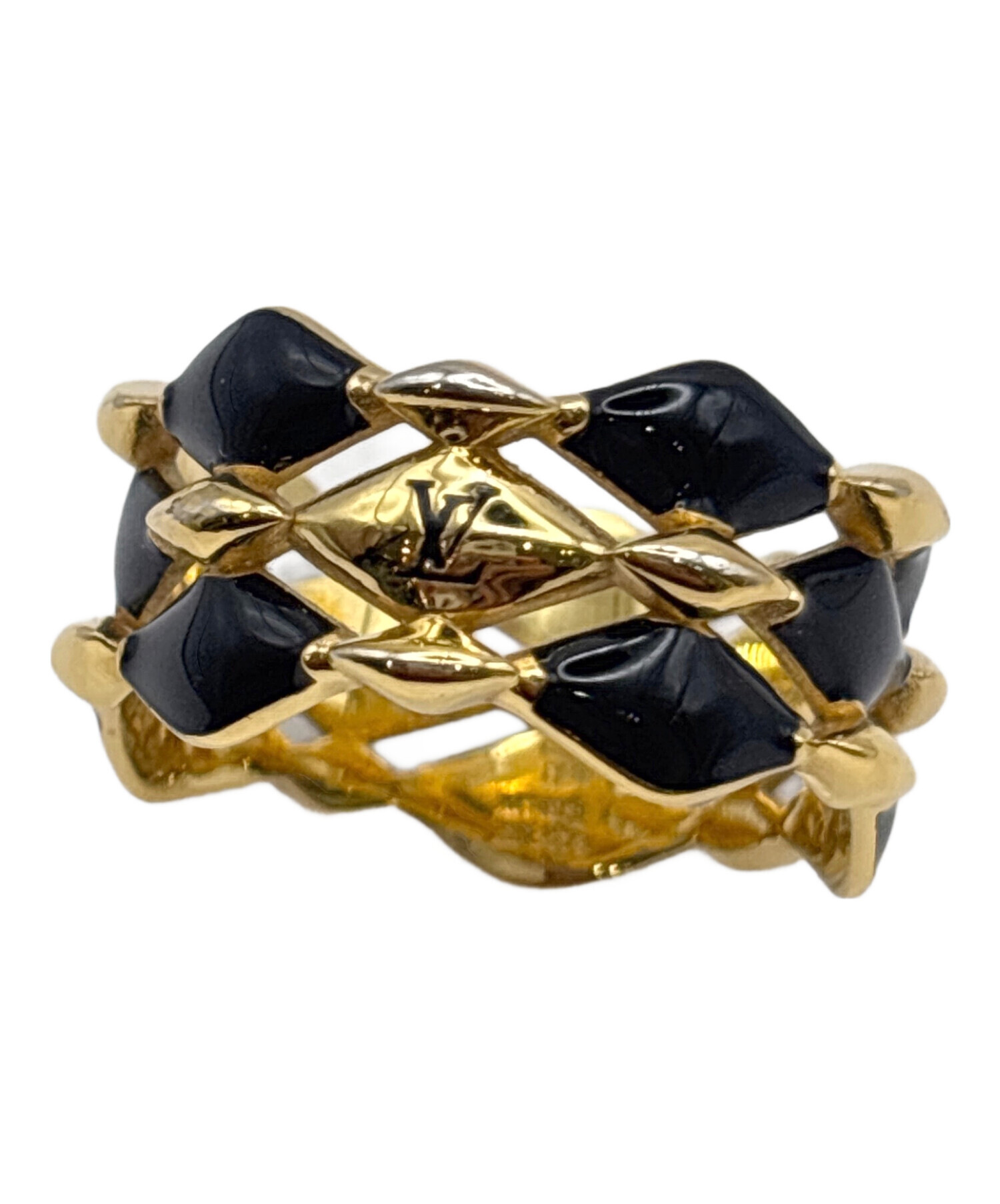 | スタッフコメント | 繊細なディテールとコントラストが際立つデザインの「リング・マルタージュ 」でございます。光沢感のあるブラック & ゴールドカラーのメタルには、メゾンの歴史的なトランクのキルティング加工を施したライニングを彷彿させる、ダイヤモンド・パターンがあしらわれています。スタイリッシュな装いに華やかさとラグジュアリーな印象を添えます。 |