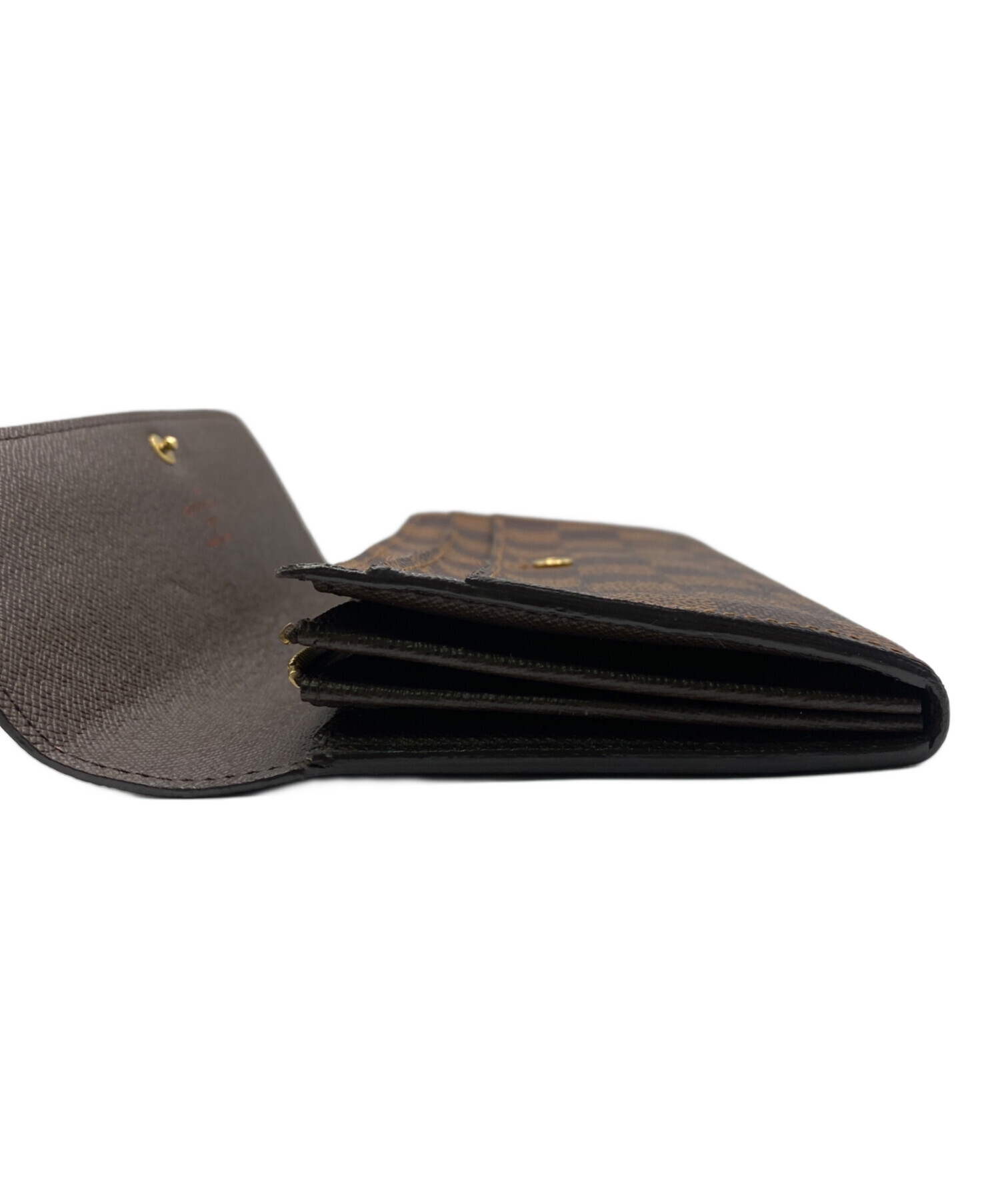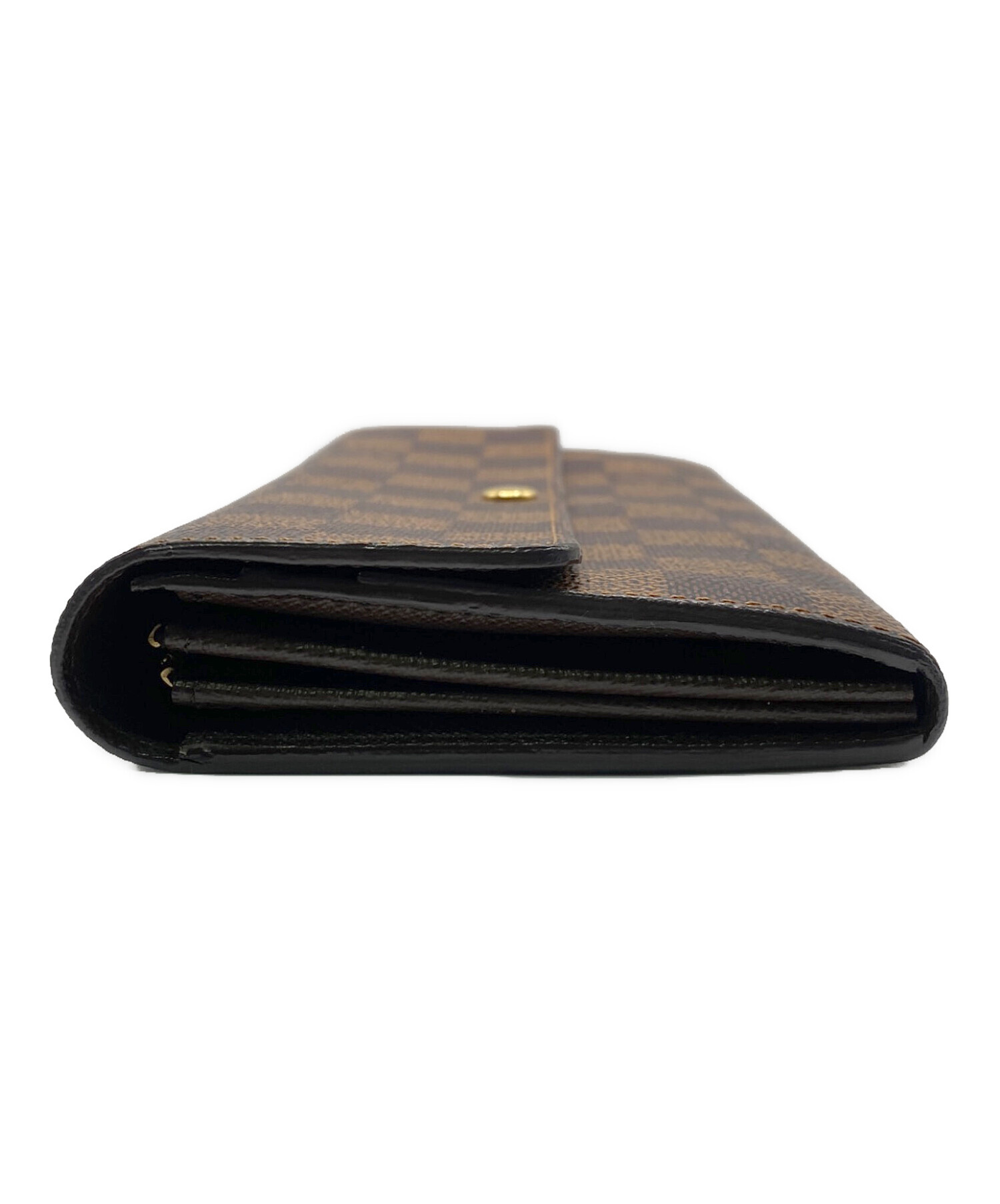 | スタッフコメント | タイムレスなデザインでシックなブラウンのダミエ柄が上品な印象を与えます。収納力に優れた内装で、カードポケットや札入れが充実しており、日常使いに非常に便利なモデルです。 |