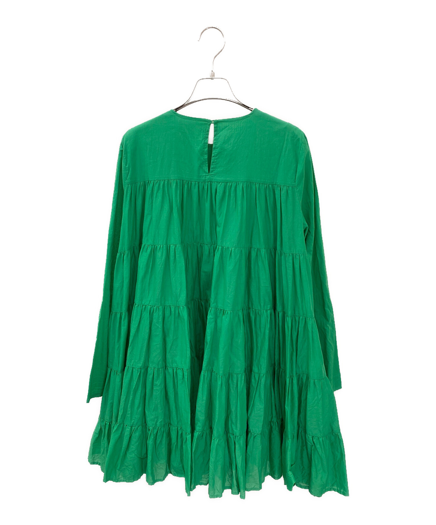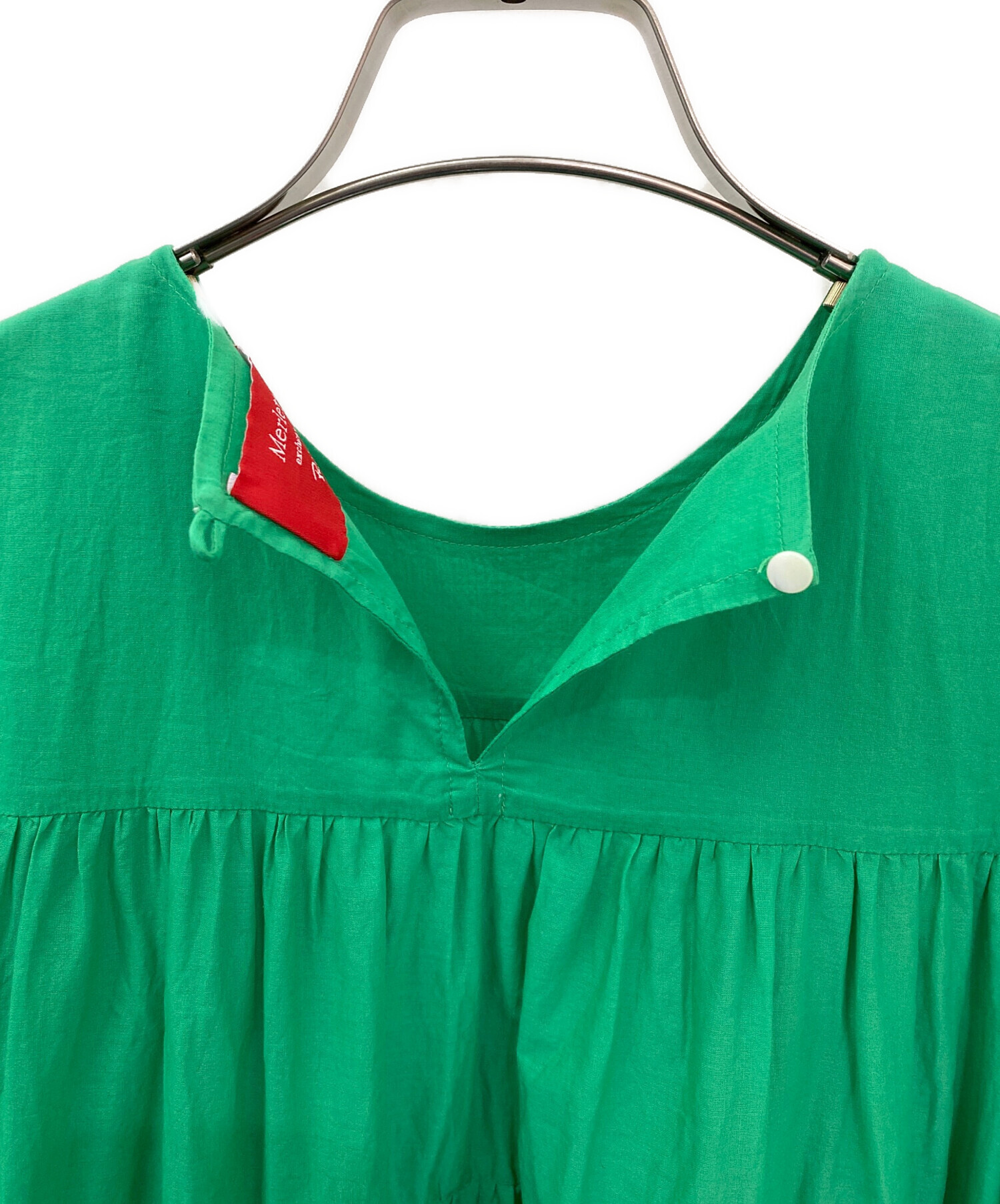| スタッフコメント | Ron Herman×Merletteのコラボレーションならではの、上品さとリラックス感を兼ね備えたシャーリングブラウスでございます。全体に施された繊細なシャーリングが、ふんわりと立体感のあるシルエットを演出し、女性らしい柔らかな印象に。目を惹くグリーンカラーがコーディネートのアクセントとなり、シンプルなボトムスと合わせるだけで華やかな着こなしが完成します。 |