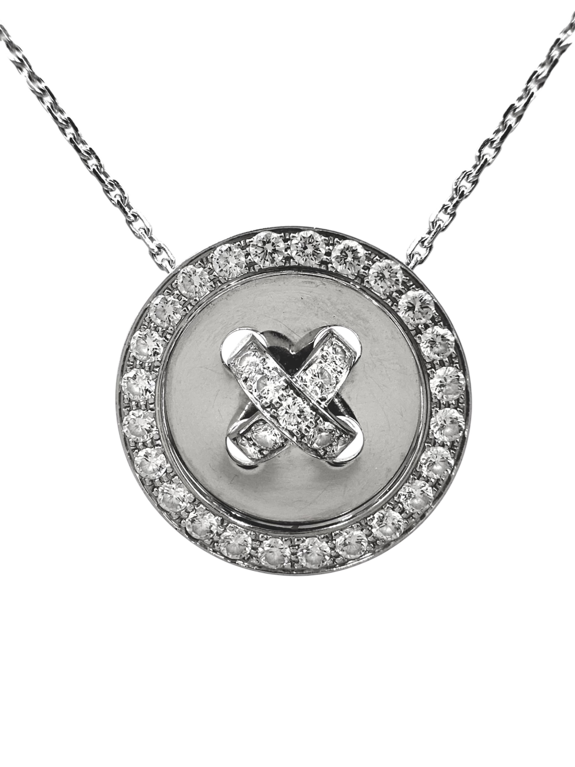 スタッフコメント VAN CLEEF & ARPELSのブトニエールネックレスでございます。フランス語でボタン穴を示すブト二エールの名の通り、ボタンをモチーフにしたかのような可愛らしいフォルムが特徴的なアイテムとなっております。K18WGとダイヤモンドの輝きがお顔周りを華やかに魅せてくれます。