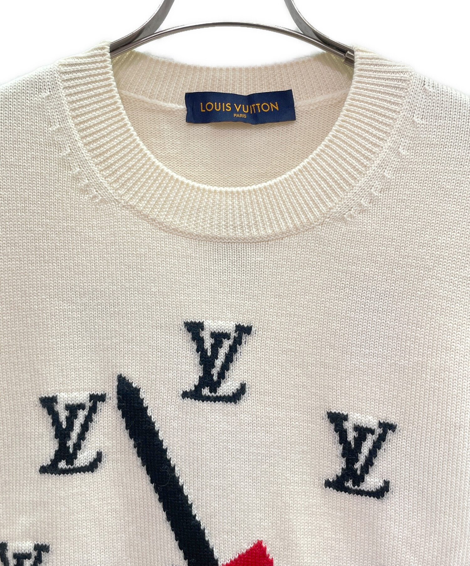 | スタッフコメント | ルイヴィトンの元デザイナー ヴァージル・アブロー氏が手掛けたアイコニックなセーターでございます。胸元と背面に大きな「時計(クロック)」のグラフィックがインタルシア(象嵌編み)という技法で表現されています。文字盤の数字の一部が「LV」ロゴに置き換わっており、遊び心溢れるデザインです。 |
