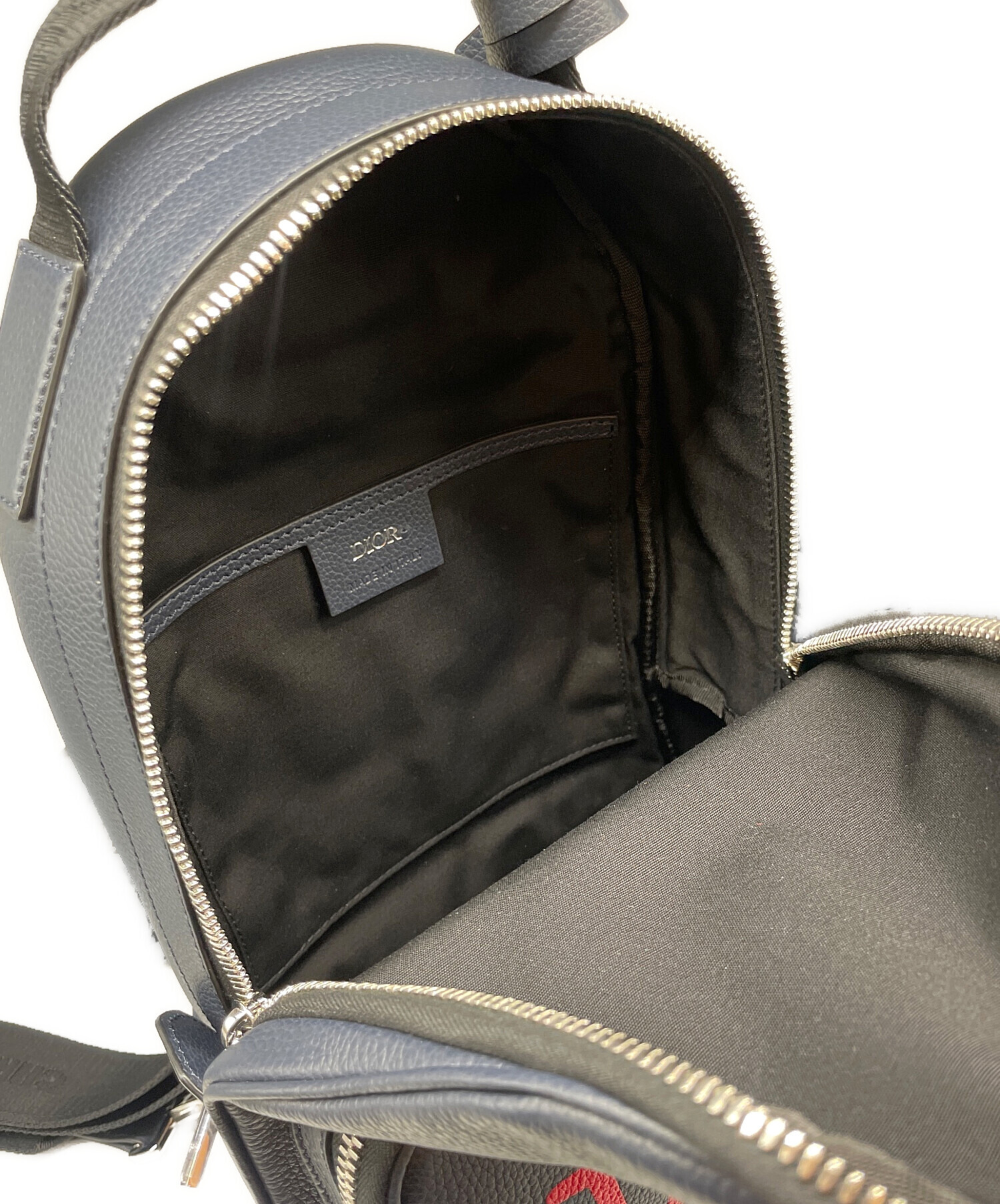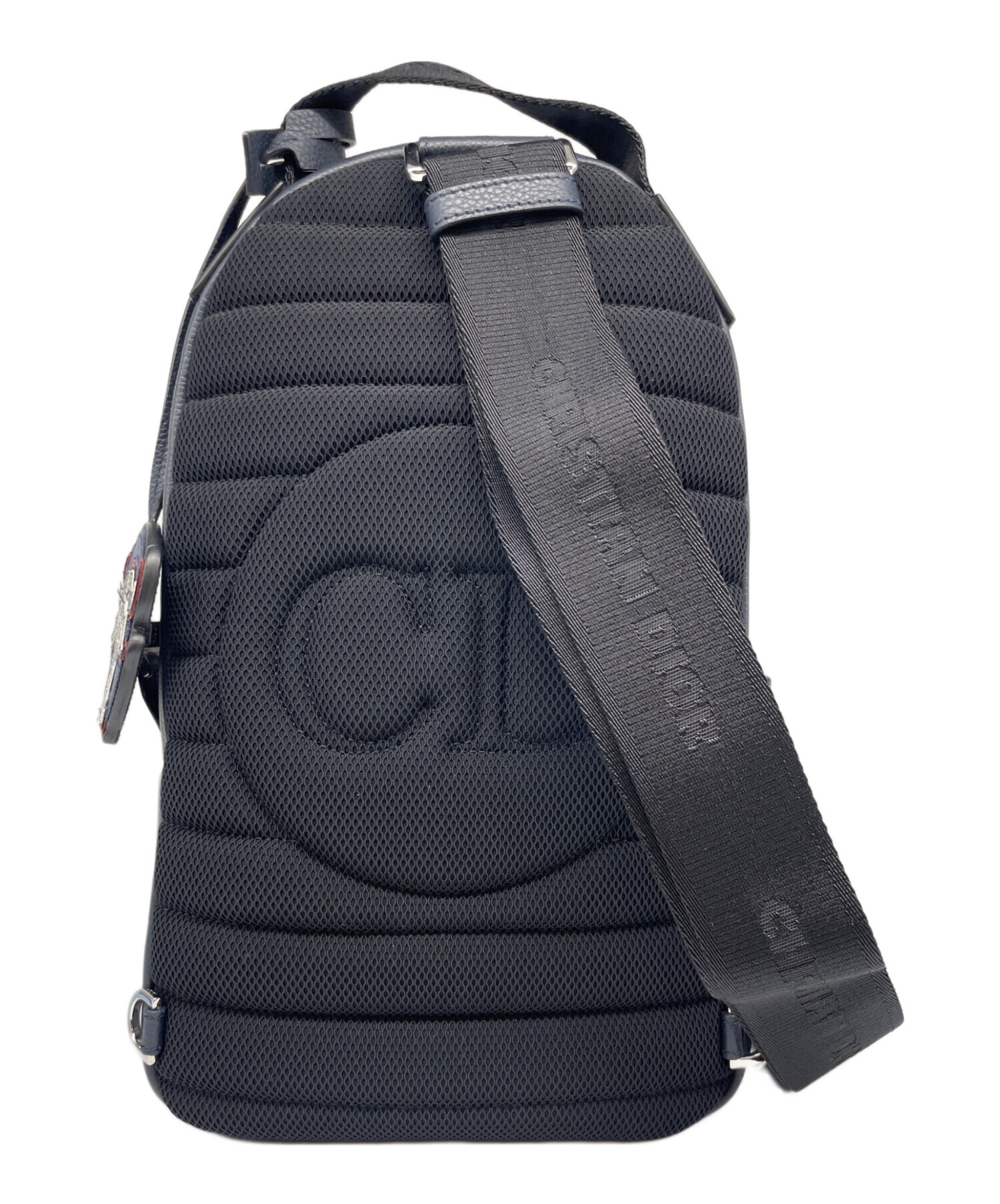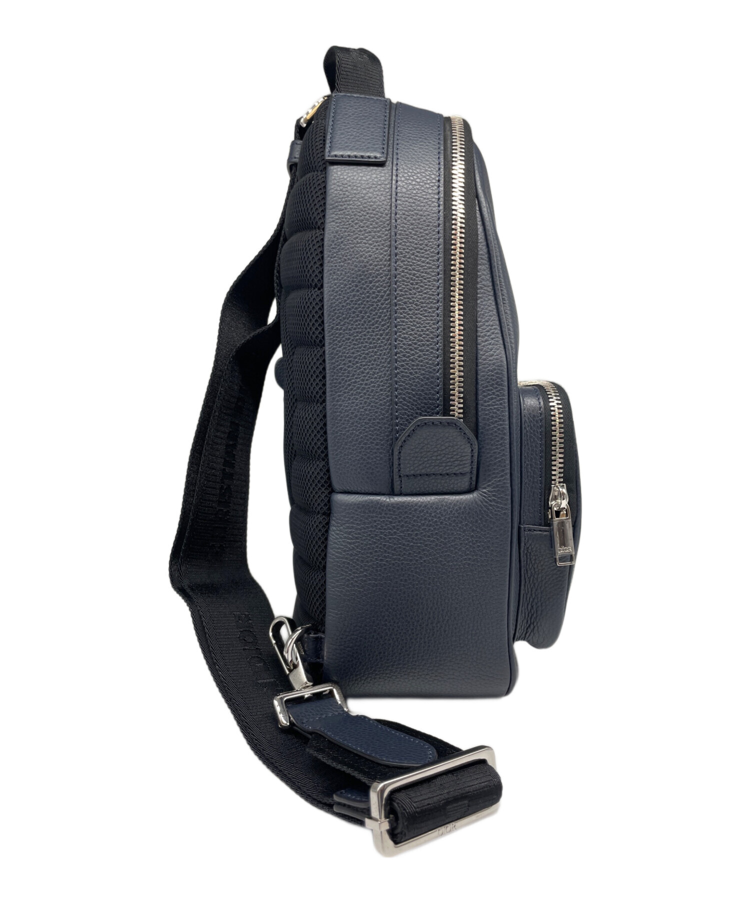| スタッフコメント | ディオールがショーン・ステューシーとのコラボレーションで発表した幅広のショルダーストラップが特徴の縦型ボディバッグです。ネイビー系を基調としたレザー素材に、ショーン・ステューシーが再解釈したDiorロゴが施されています。 |
