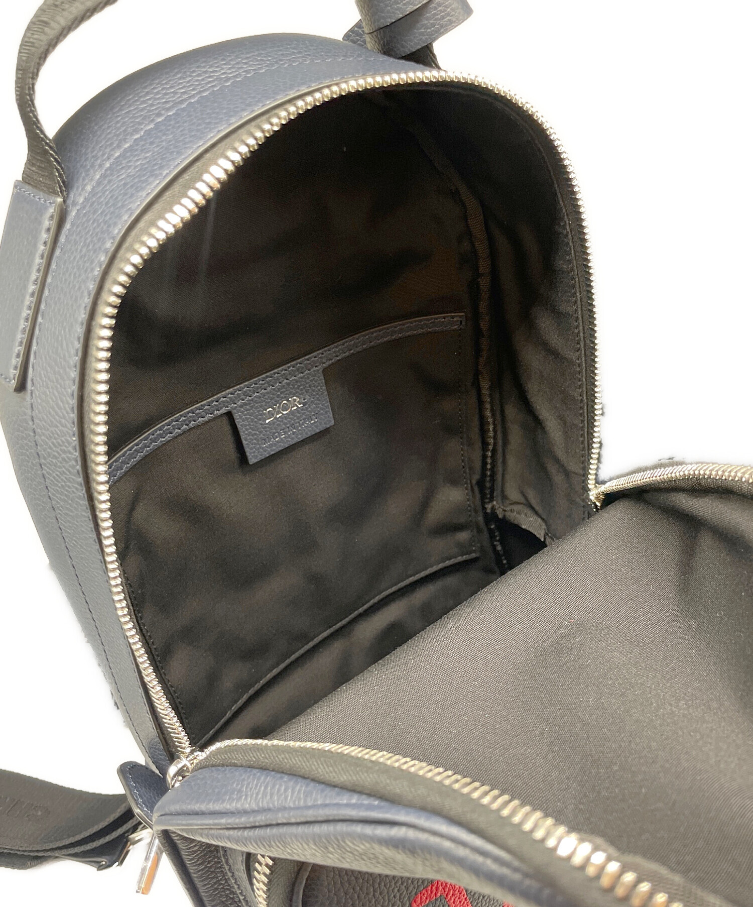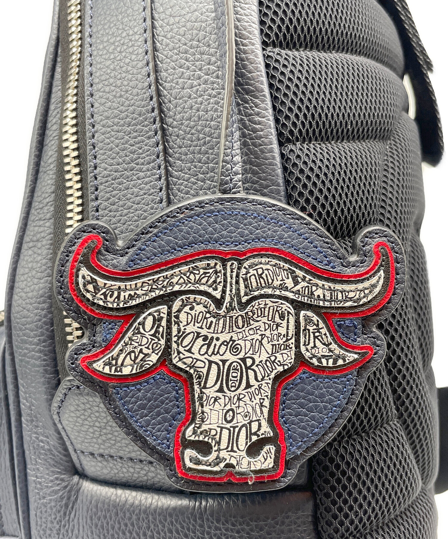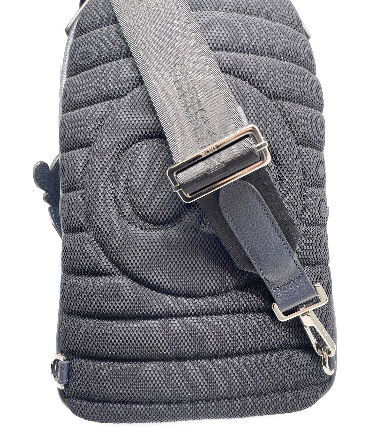 | スタッフコメント | ディオールがショーン・ステューシーとのコラボレーションで発表した幅広のショルダーストラップが特徴の縦型ボディバッグです。ネイビー系を基調としたレザー素材に、ショーン・ステューシーが再解釈したDiorロゴが施されています。 |
