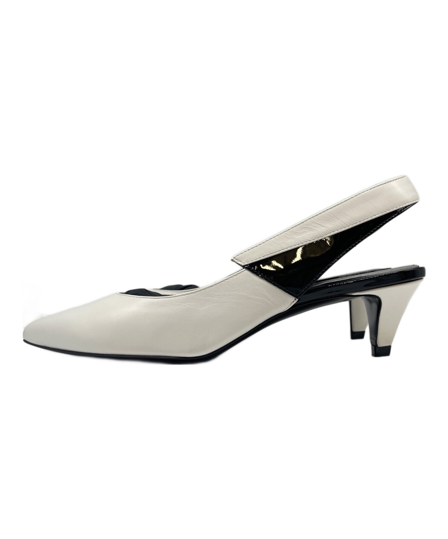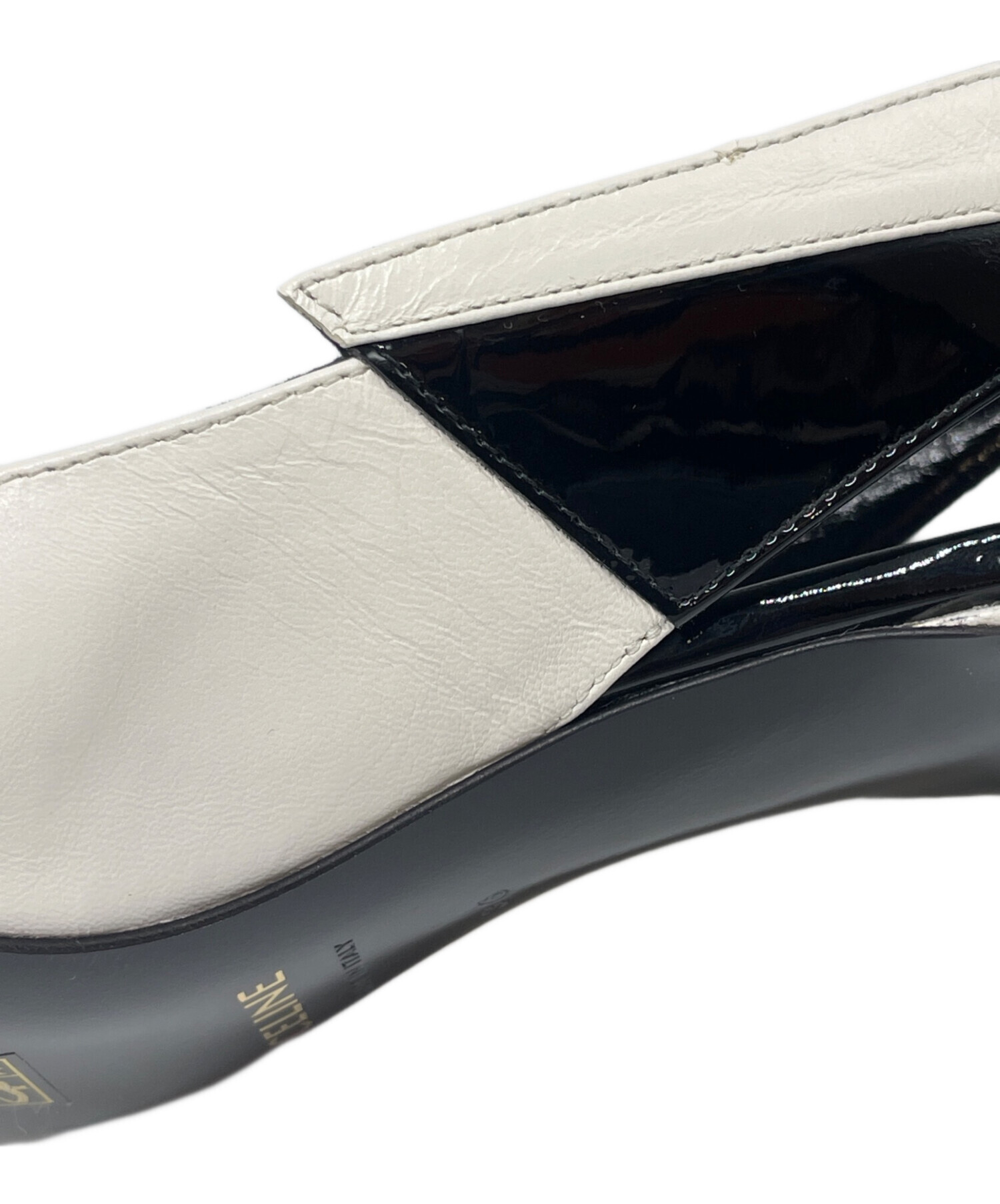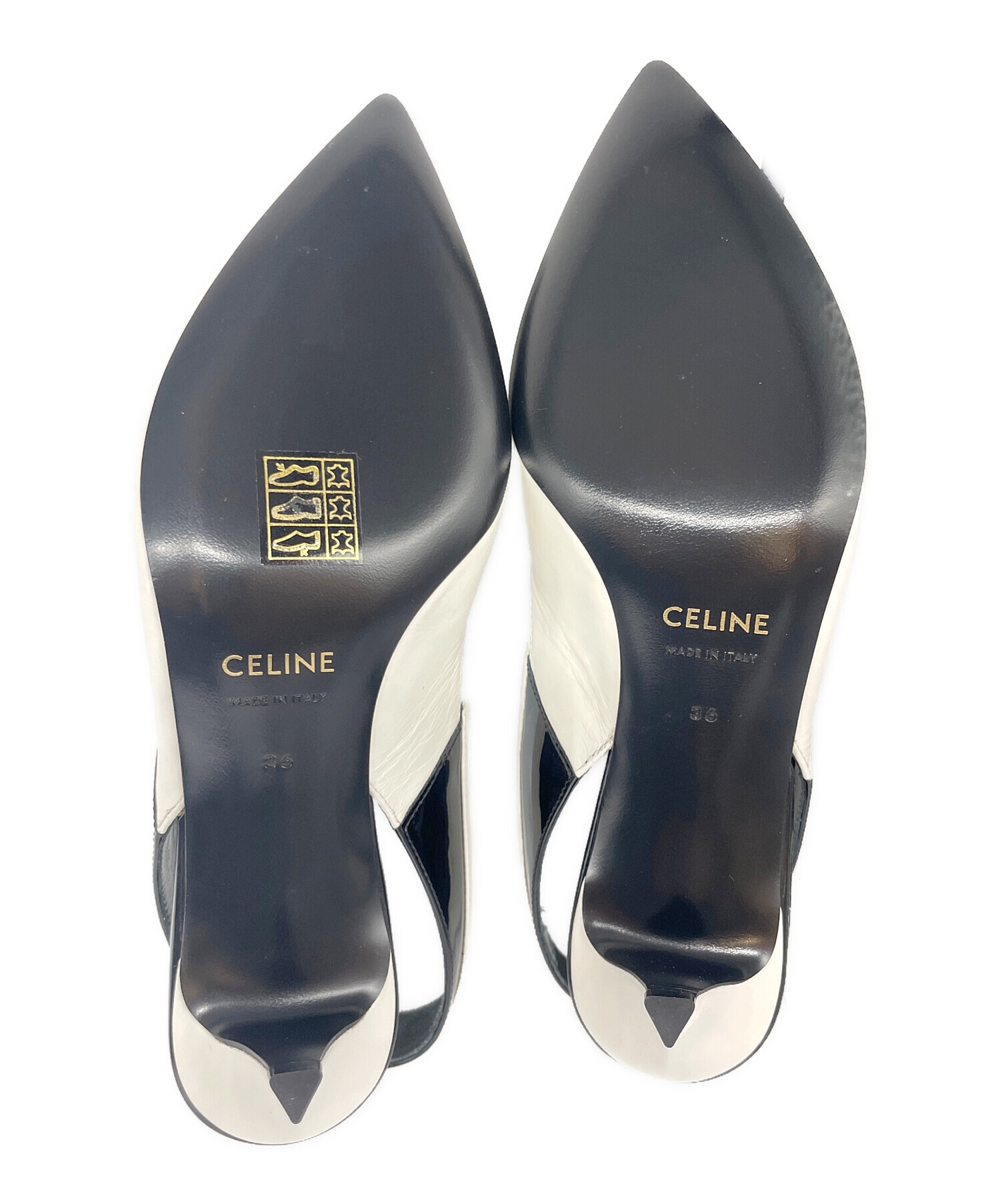 | スタッフコメント | セリーヌの白と黒のコントラストが美しいポインテッドトゥ パンプスでございます。エディ・スリマンによる初のウィメンズコレクションで発表された、ホワイトとブラックのバイカラーが特徴です。シャープなシルエットと、足首をホールドするスリングバックストラップ、比較的高くないヒールは歩きやすさとデザイン性を両立しています。 |