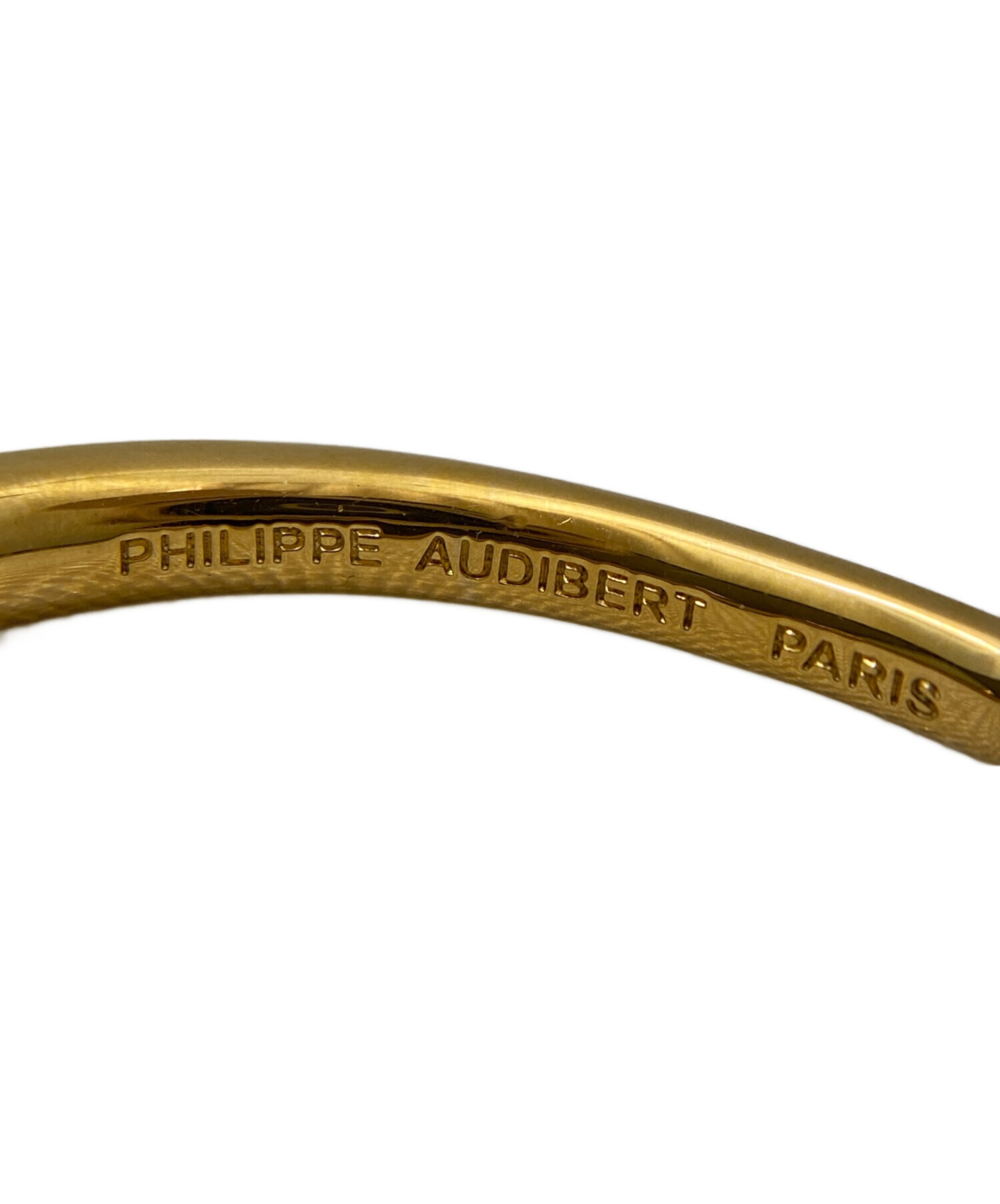 | スタッフコメント | PHILIPPE AUDIBERTのバングルでございます。ゴールド一色のシンプルなデザインに、中央の丸いモチーフがさりげないアクセントを添えています。無駄のない洗練された佇まいで、手元を上品に引き立ててくれる一本です。単体使いはもちろん、他のブレスレットや時計との重ね付けにも馴染みやすく、幅広いスタイリングに活躍します。 |