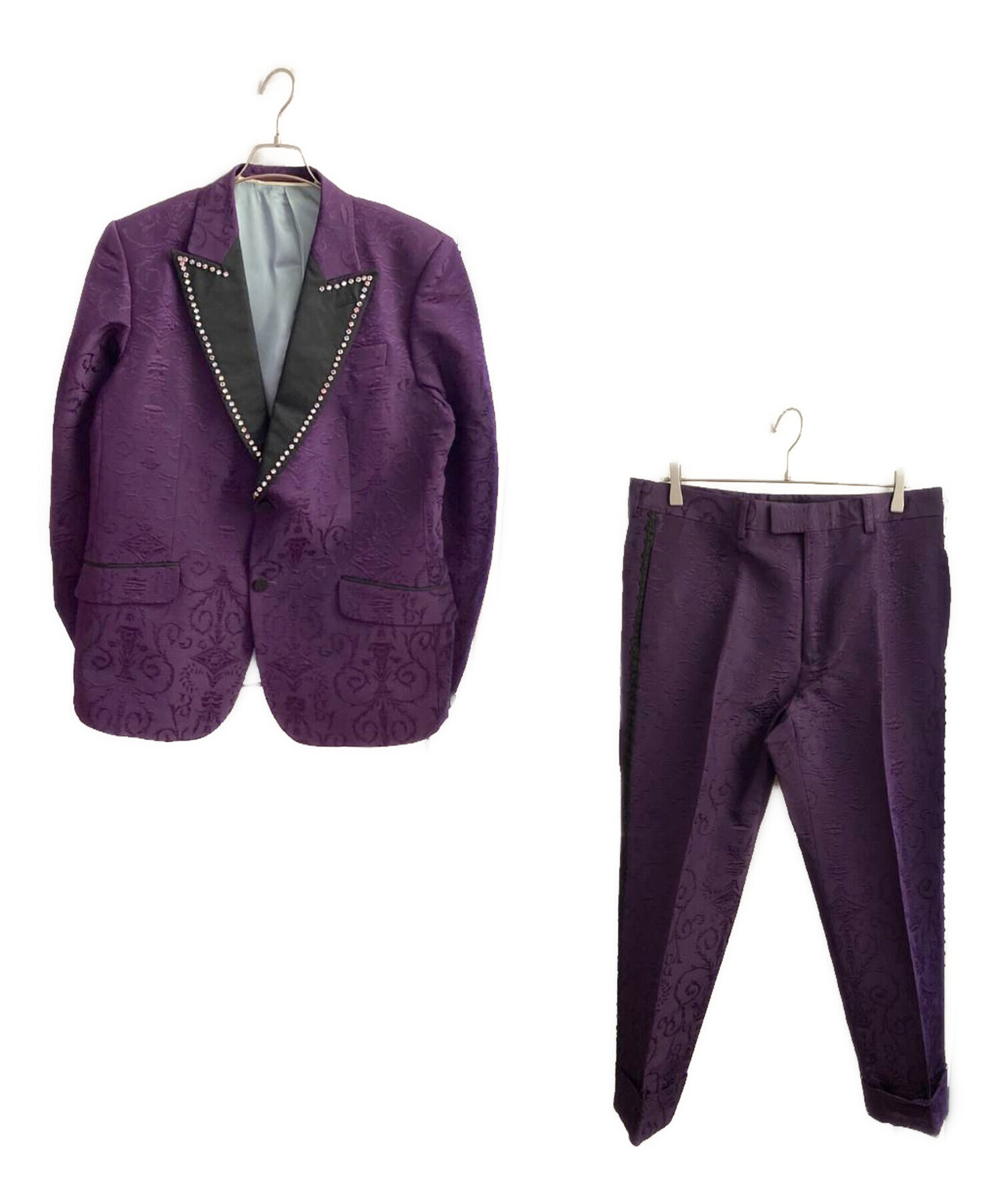 | スタッフコメント | 華やかさを全面に押し出した、スパンコール装飾のドレスセットアップ。深みのあるパープルカラーにきらめきのあるディテールが映え、ステージ感のある存在感を放ちます。セットでの着用はもちろん、ジャケット・パンツをそれぞれ主役アイテムとして取り入れてもスタイリングに強いインパクトをプラス。モードな装いを楽しみたい方に刺さる一着です。 |