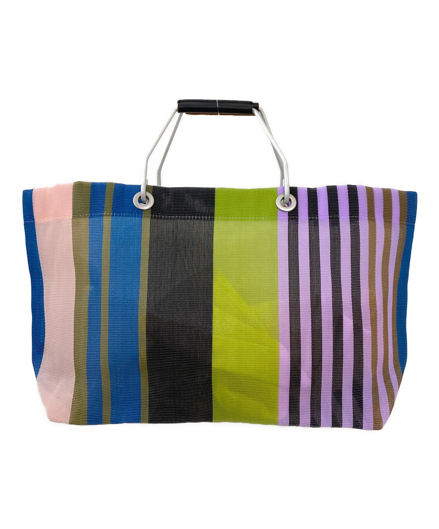 | スタッフコメント | 鮮やかなマルニらしい配色ストライプデザインと、軽やかで清涼な素材感が魅力的なトートバッグです。持ち運びやすく、デイリー使いからお出かけ、旅行まで幅広く活躍します。 |
