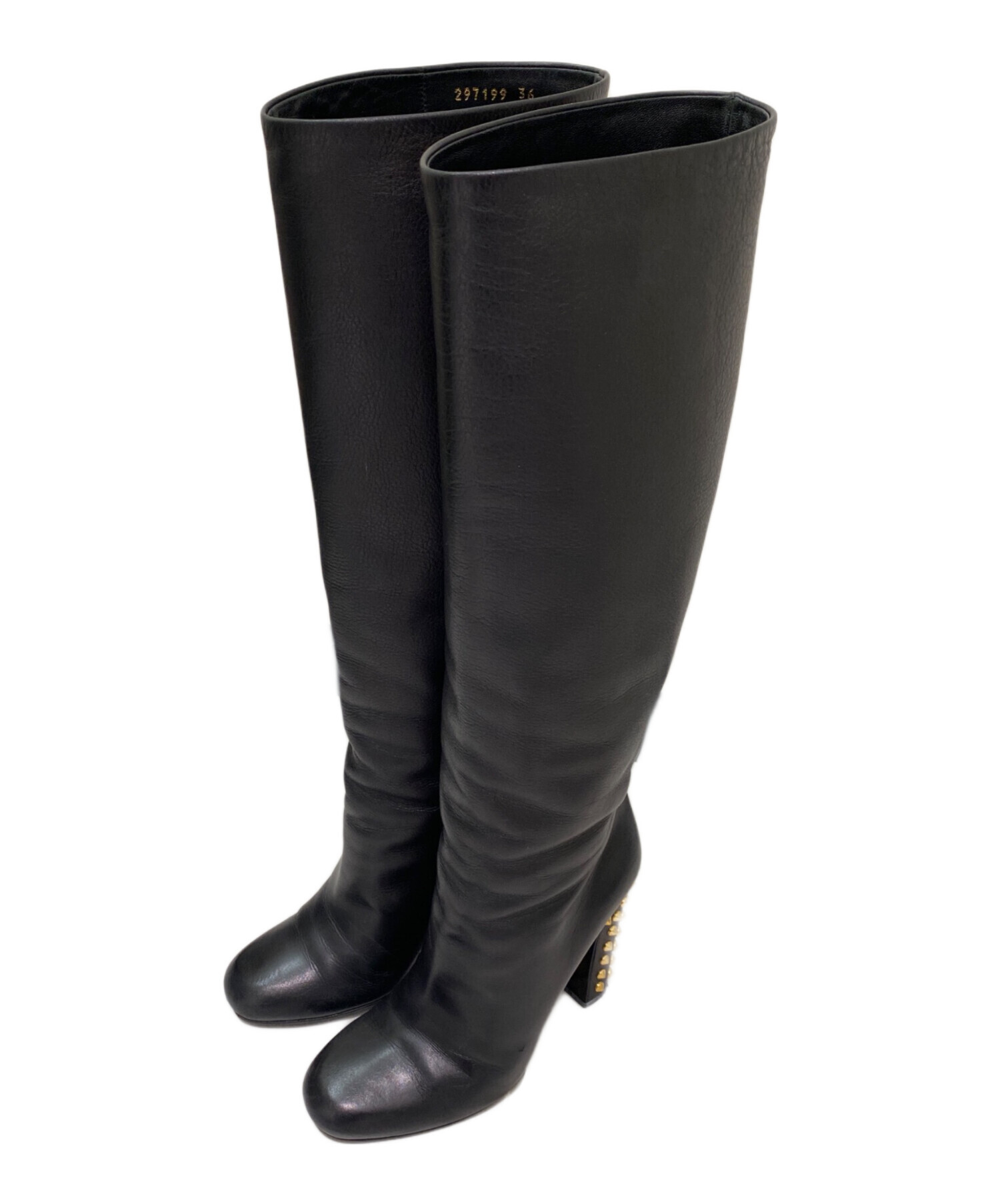 | スタッフコメント | ヒールにゴールドのスタッズがあしらわれたロングブーツです。ブラックのレザーにゴールドが映え、シャープなアクセントになります。シンプルなスタイリングに取り入れるだけで、装いを格上げしてくれるアイテムです。 |