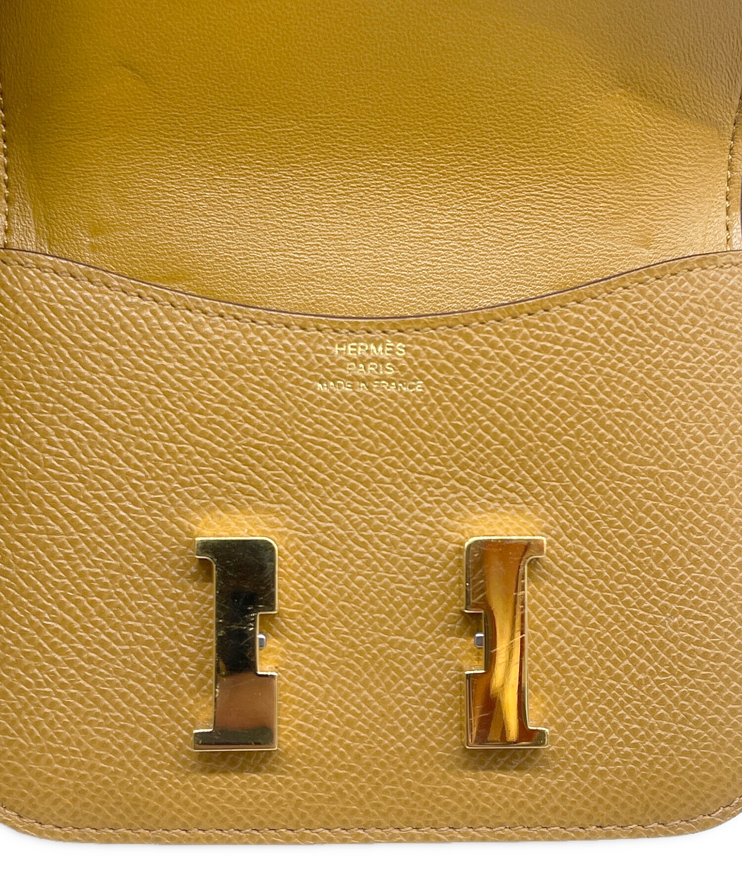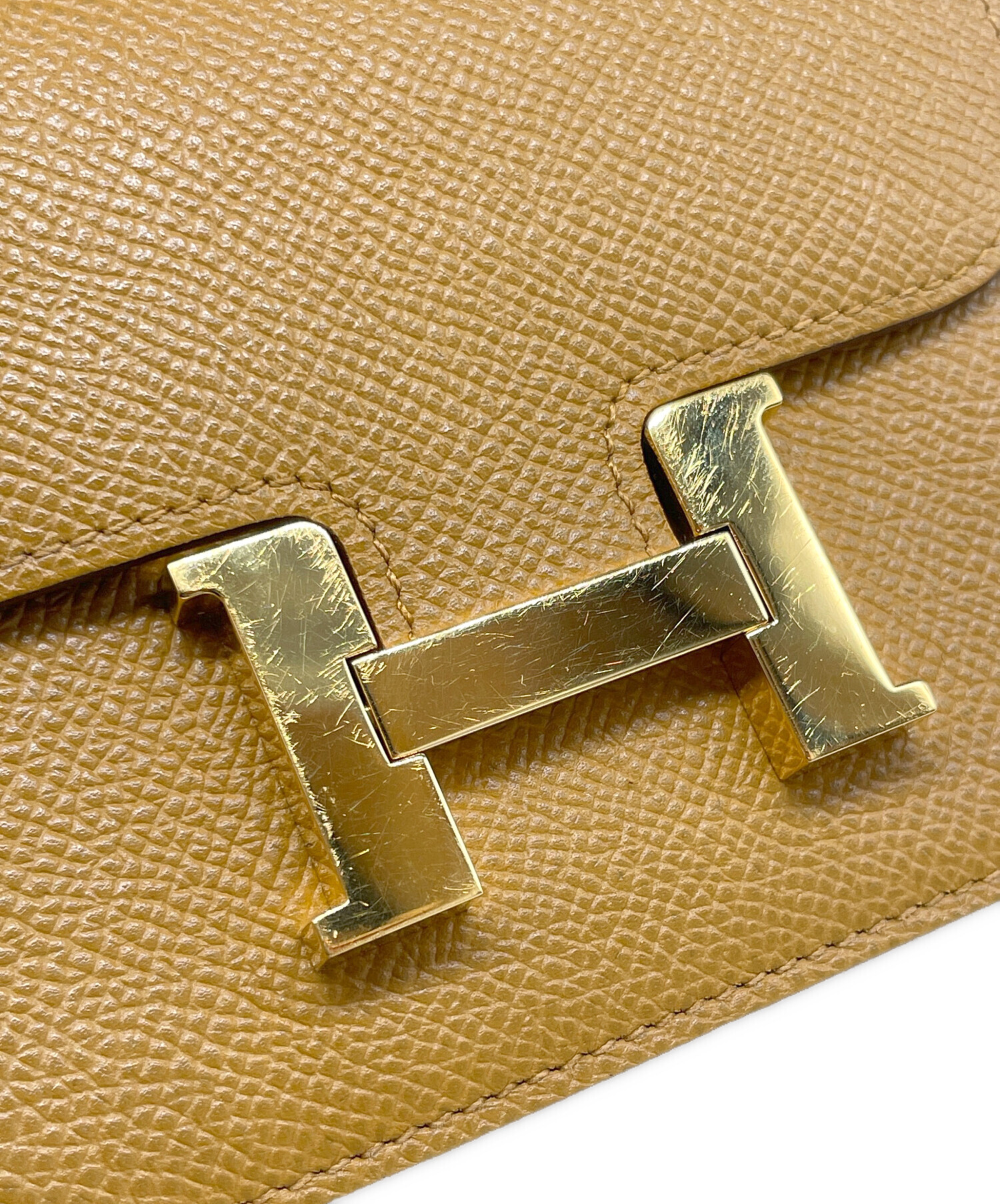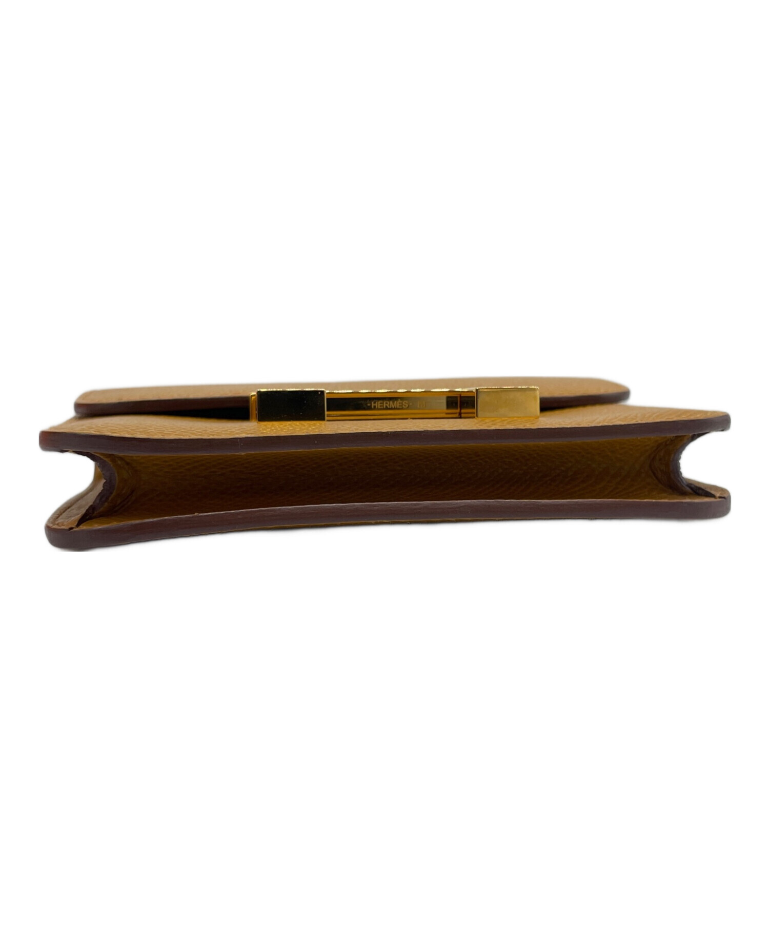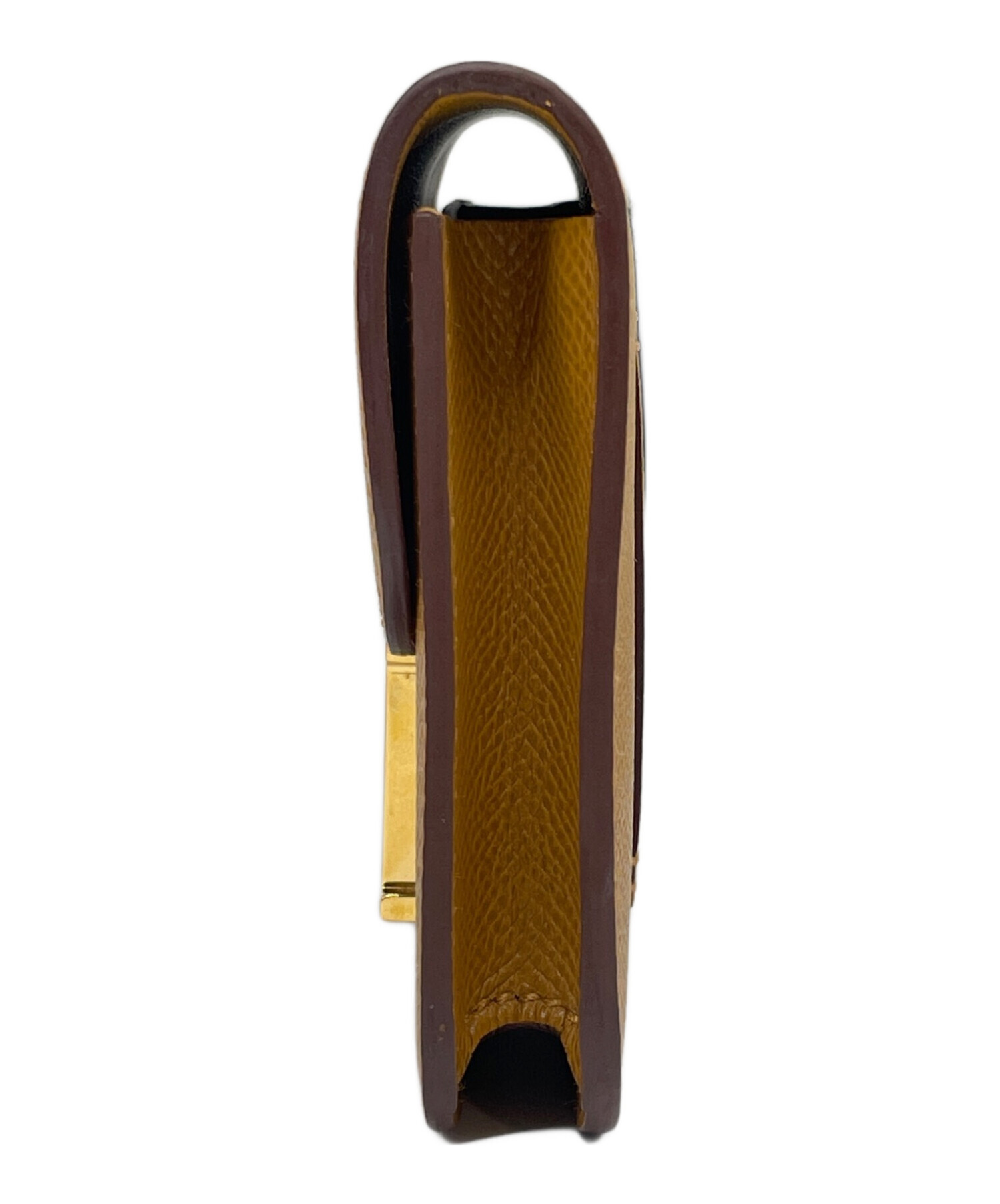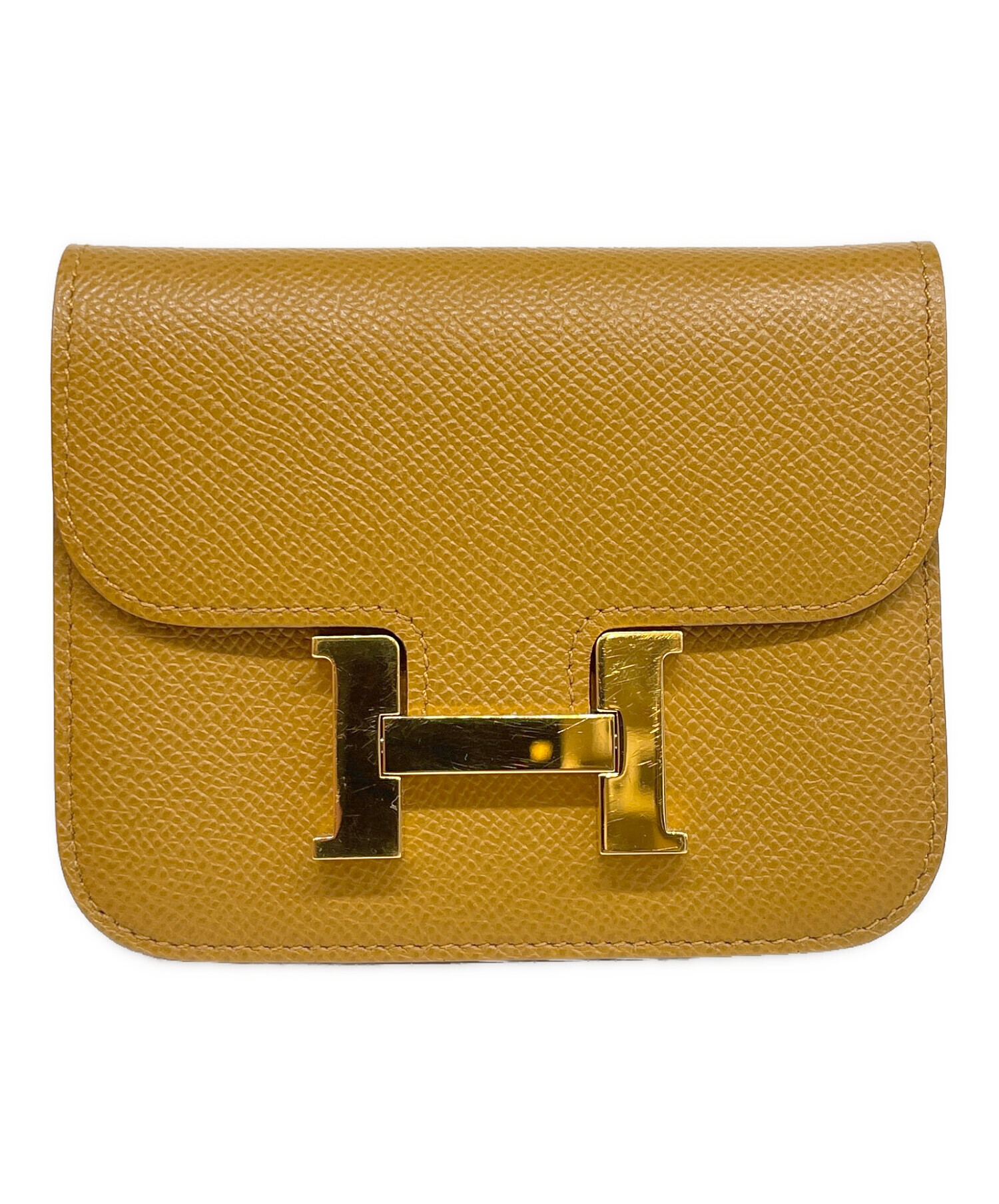 | スタッフコメント | フロントに配置された『H』アッシュ型の金具が存在感抜群の「コンスタンス スリム」でございます。素材には、型崩れしにくくカチッとした質感が魅力のヴォーエプソンを使用しており、キズや汚れなどのダメージが目立ちにくい点が大きな魅力です。お色は、上品で温かみのある茶系のセサミを採用。洗練されたカラーパターンで、コーディネートのアクセントとして活躍しております。 |