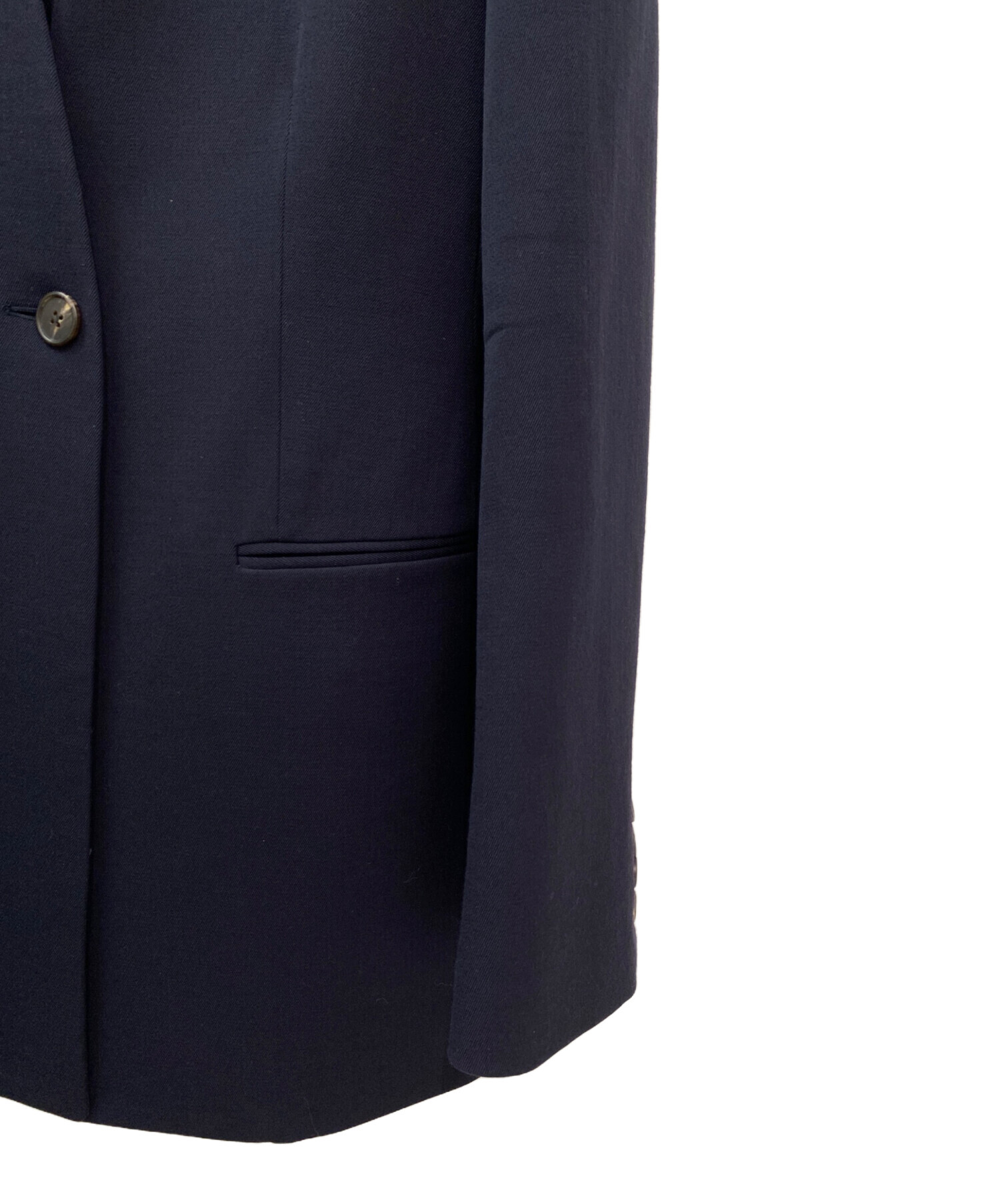スタッフコメント ミニマルで洗練された佇まいが魅力のジャケットです。深みのあるネイビーが上品で知的な印象を演出し、オンオフ問わず幅広いシーンで活躍します。無駄を削ぎ落としたクリーンなデザインに、計算された美しいシルエットが際立ち、羽織るだけでスタイリング全体を格上げしてくれます。フォーマルにもカジュアルにも対応でき、長くご愛用いただけるタイムレスなアイテムです。