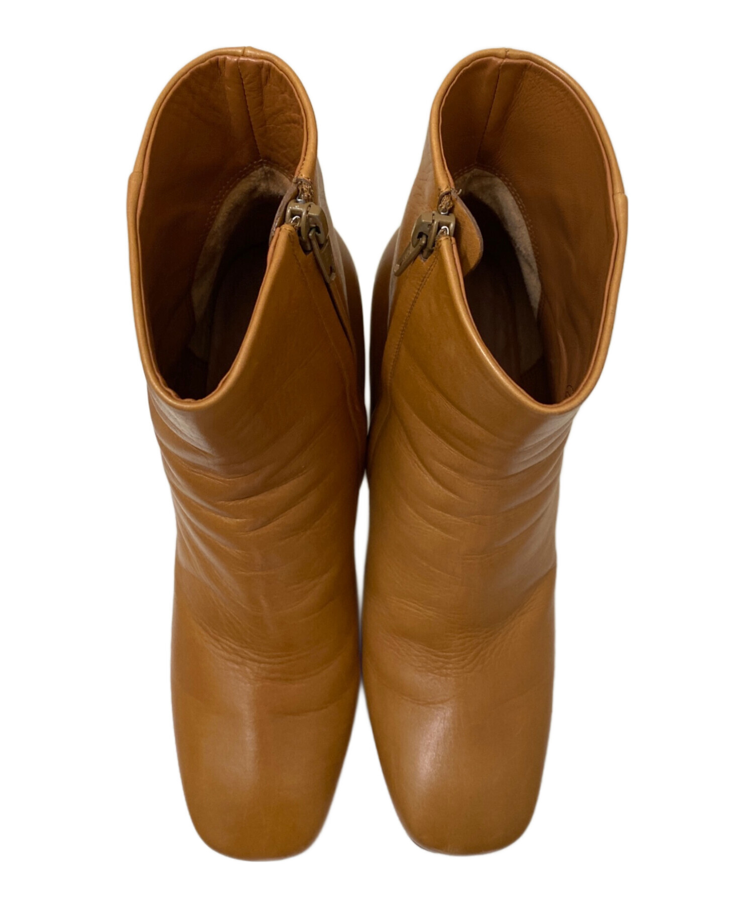 | スタッフコメント | 上質なレザーを使用した、CELINEのサイドジップブーツ。明るいブラウンカラーが足元に温かみと上品さを添え、落ち着いた印象に仕上げます。サイドジップ仕様で着脱しやすく、すっきりとしたシルエットが洗練された佇まいを演出。デイリーからきれいめまで幅広いスタイリングにマッチする、汎用性の高い一足です。 |