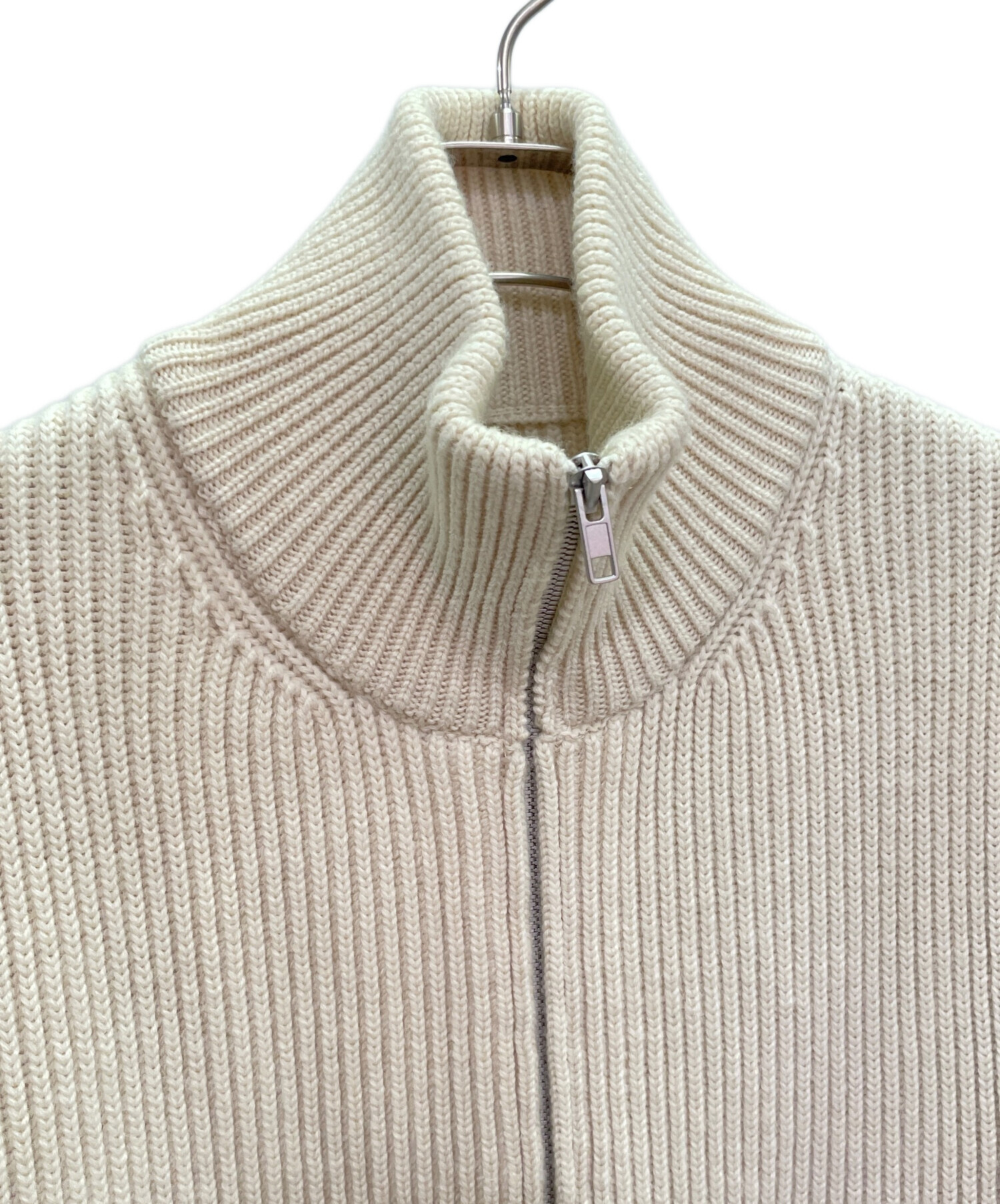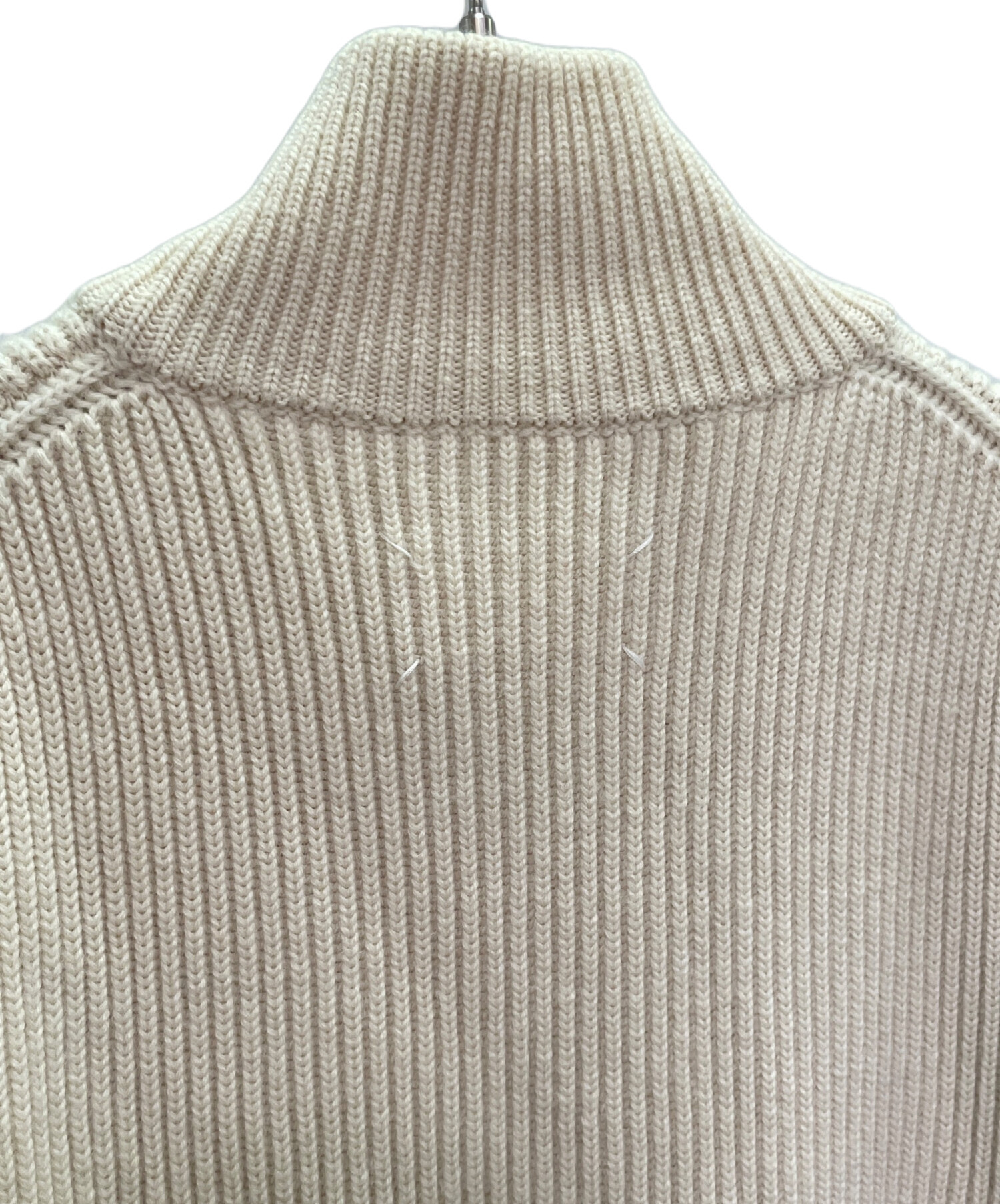 | スタッフコメント | Maison Martin Margiela 14ラインのドライバーズニット。上品なベージュカラーに、ダブルジップ仕様の立ち襟デザインが特徴です。しっかりとしたニット素材で保温性も高く、秋冬のコーディネートで活躍する一着。シンプルながらマルジェラらしい洗練された雰囲気が魅力のメンズMサイズです。 |