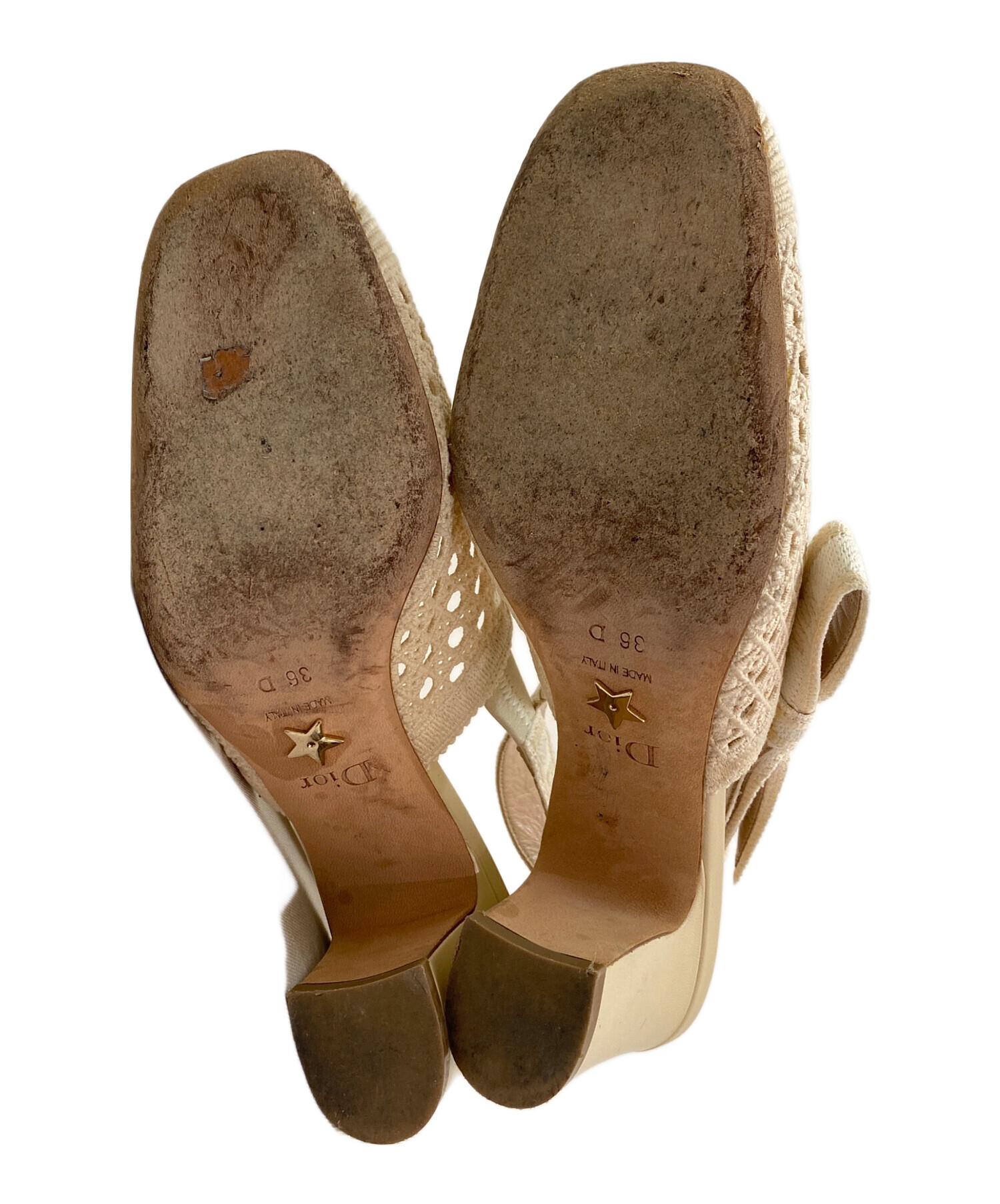 | スタッフコメント | Diorを象徴するカナージュモチーフを、繊細なエンブロイダリーで表現したスリングバックパンプス。軽やかなメッシュ素材にベージュカラーを合わせることで、上品で柔らかな印象に仕上げられています。 |