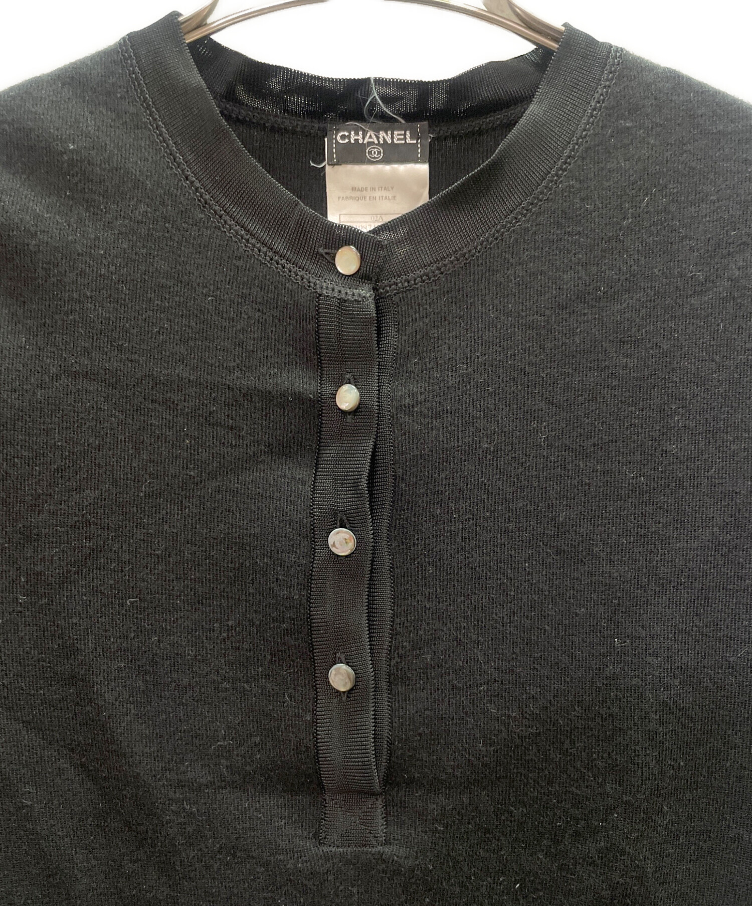 | スタッフコメント | CHANELのカシミヤ混ヘンリーネックカットソーは、最高級のカシミヤを使用した、 非常に柔らかく肌触りの良い極上の着心地が特徴です。カジュアルなヘンリーネックデザインに、シャネルらしいベージュや黒といった上品な色使い、控えめなボタンのロゴなどが高級感を演出する、洗練された大人のリラックスウェアです。 |