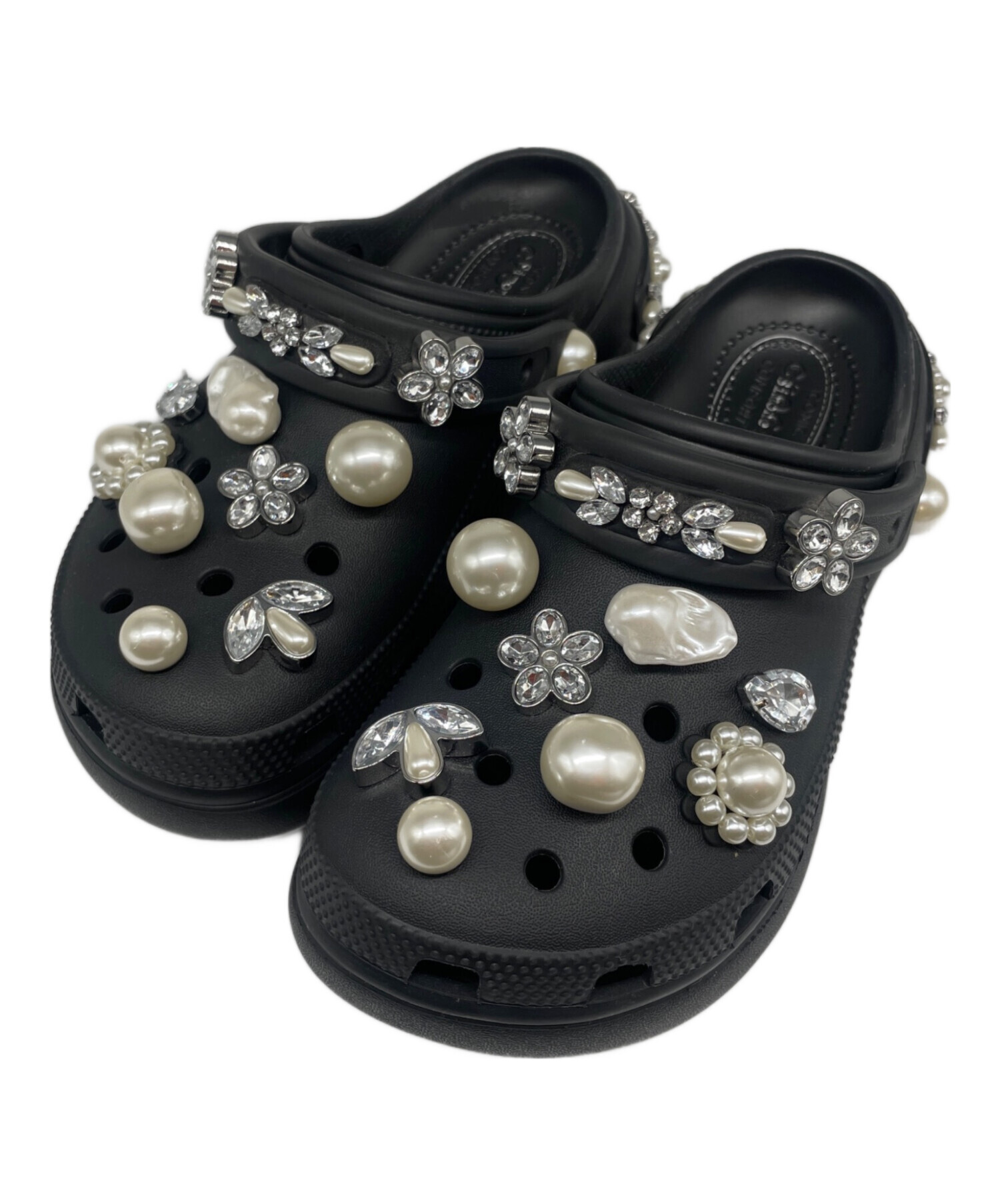 | スタッフコメント | Simone Rocha x Crocsのコラボから、繊細なフローラル装飾が目を引くロマンティックなミュールです。パールやビジューが贅沢にあしらわれ、歩くたびにジュエリーのような煌めきをちます。クロックスらしい軽やかな履き心地と、シモーネ・ロシャの装飾美が融合した、まさにアートのような一足です。 |