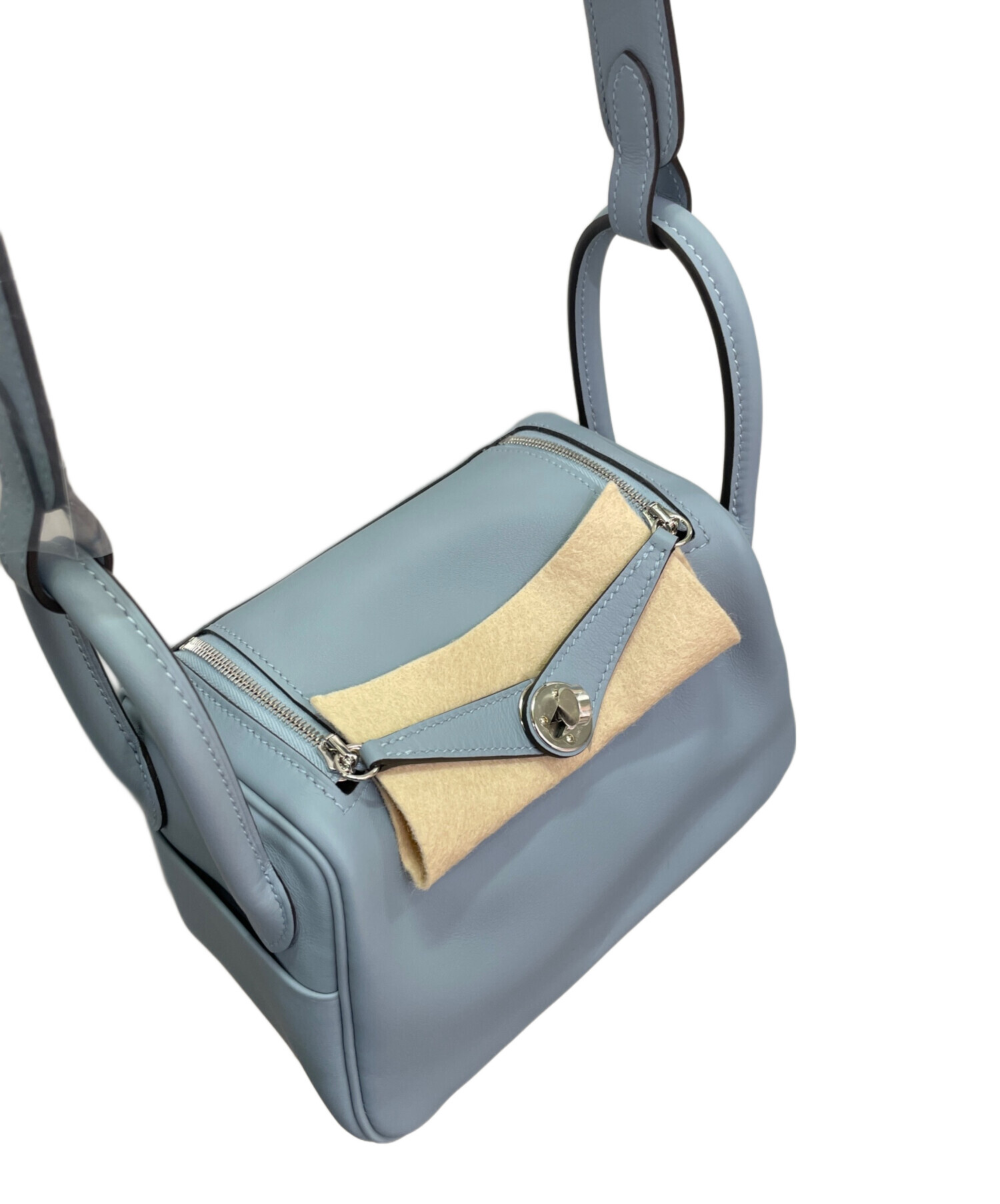 | スタッフコメント | 上質なヴォースイフト素材を使用したリンディミニ。しなやかな質感と美しい発色が魅力で、上品なグリパンタンカラーが洗練された印象を演出します。コンパクトながら実用性も兼ね備え、日常使いから特別なシーンまで幅広く活躍する逸品です。 |