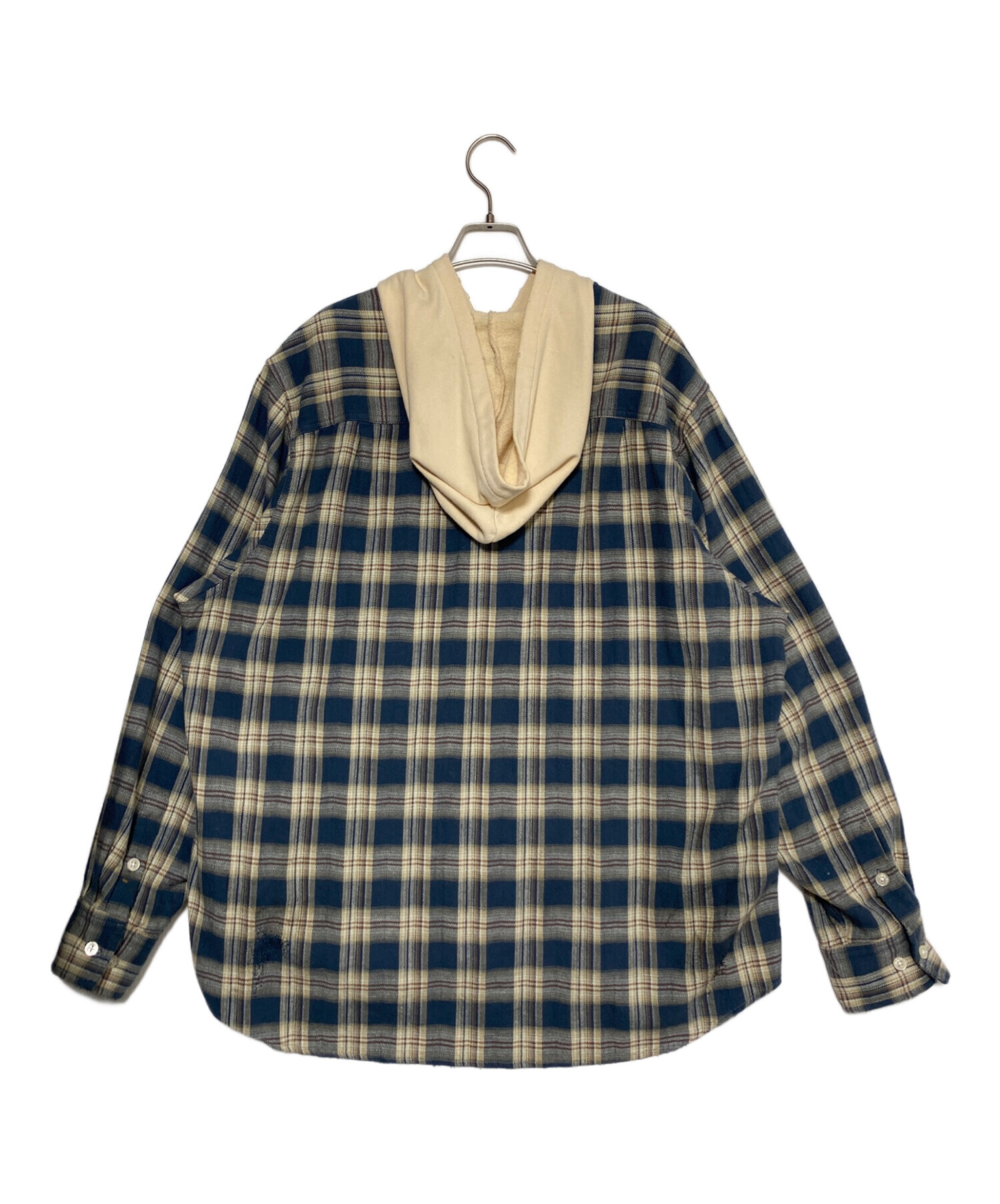 スタッフコメント フードとネルシャツを組み合わせたレイヤード風デザインが特徴的な一着。コットンフランネル素材をベースに、手作業によるダメージや汚し加工が施されており、ヴィンテージライクな雰囲気を強く演出。オーバーサイズシルエットでラフに羽織れる仕様となっており、KAMIYAらしい無骨さとストリート感を兼ね備えたアイテムです。