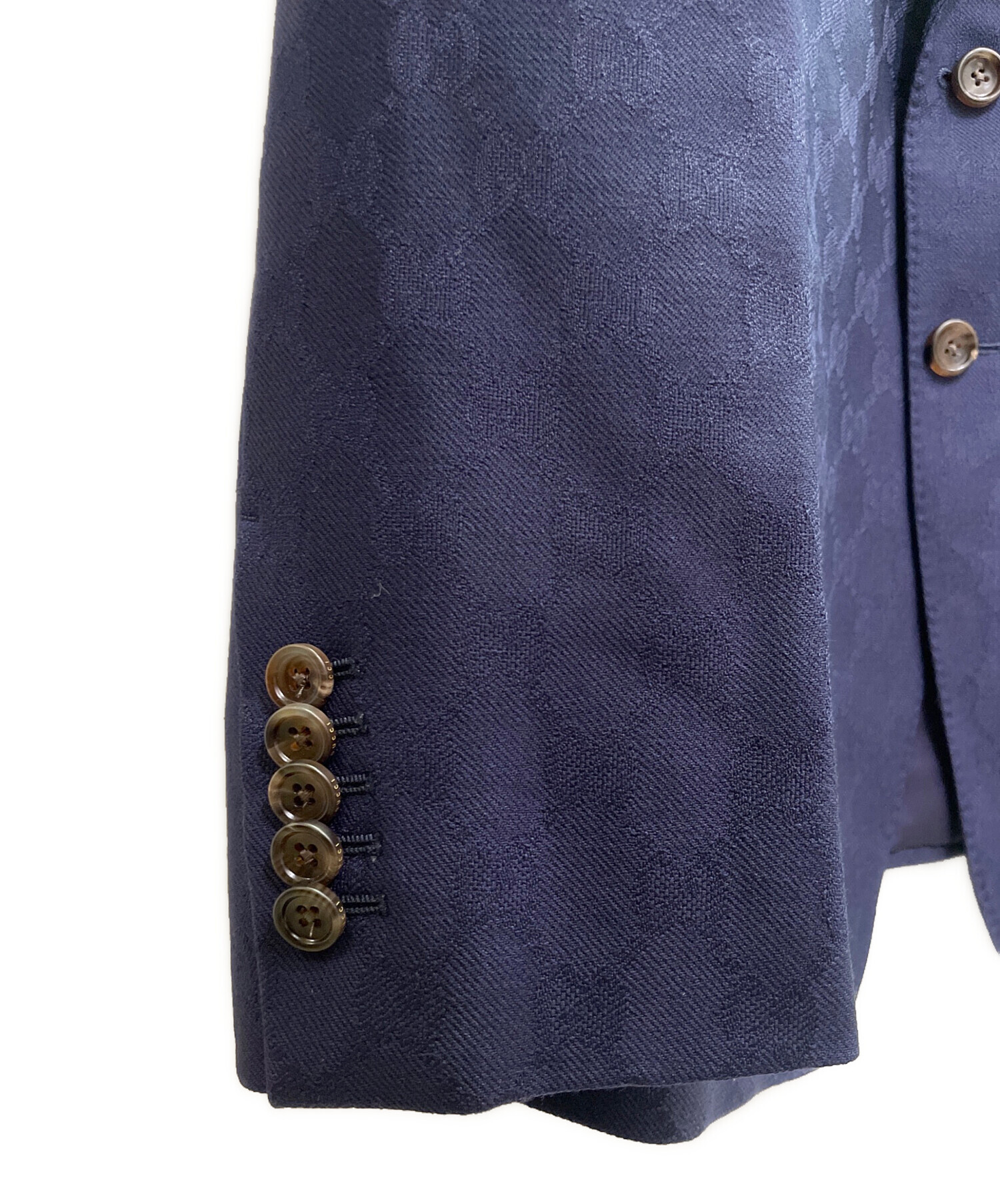 | スタッフコメント | グッチを象徴するGGパターンを全面に配した、存在感抜群のセットアップスーツ。上質なウール素材を使用し、しなやかな質感と高級感のある仕上がりが魅力です。クラシックなテーラリングにブランドのアイコンを落とし込むことで、モードとエレガンスを両立。単体使いでもスタイリングの主役となる、ラグジュアリー感溢れる一着です。 |