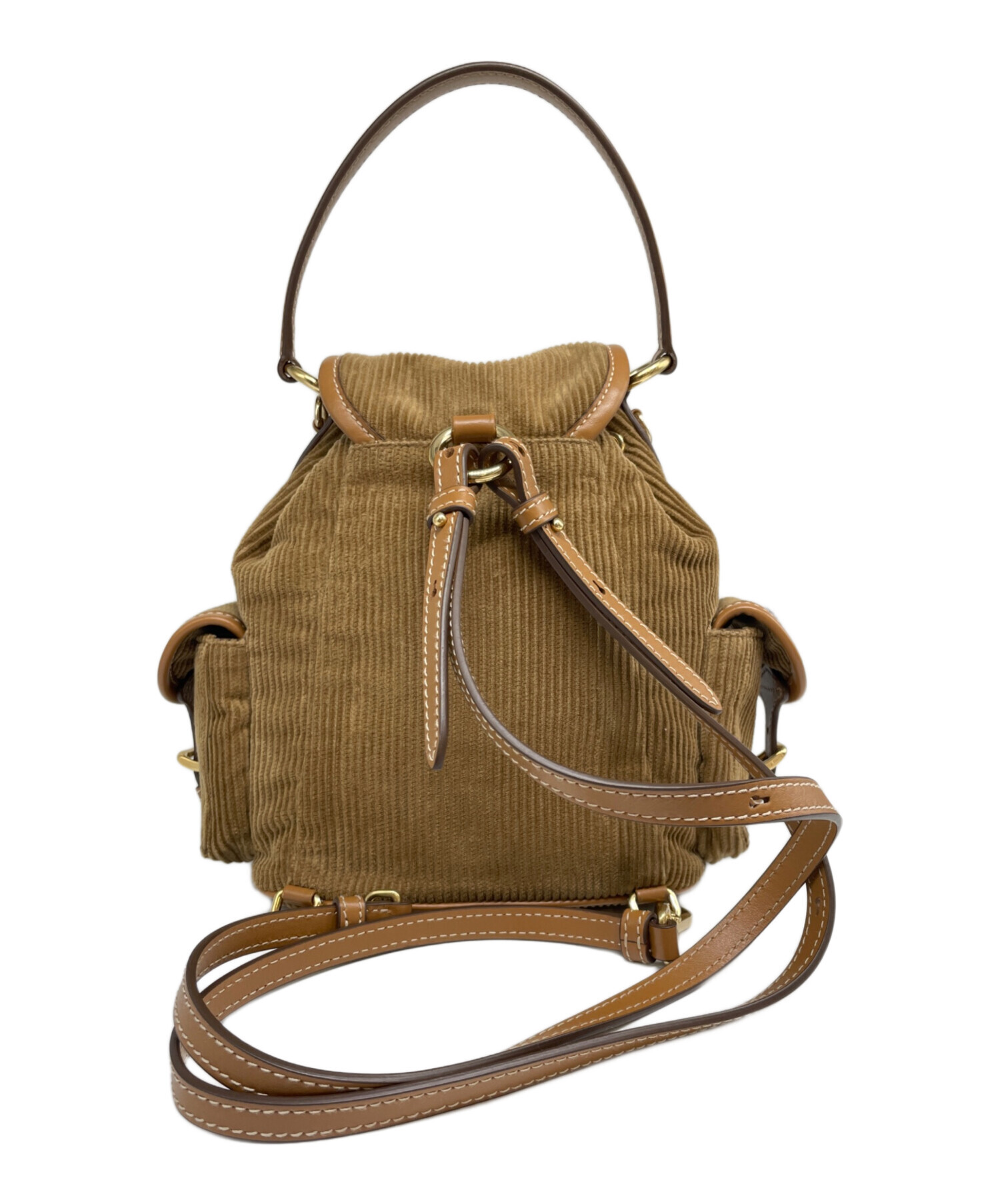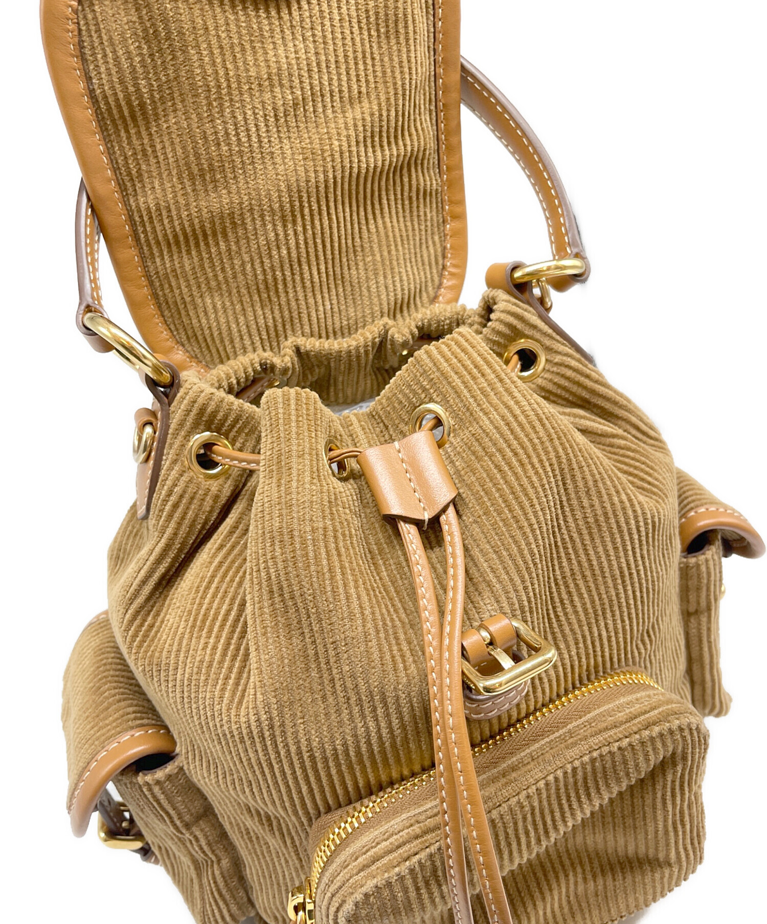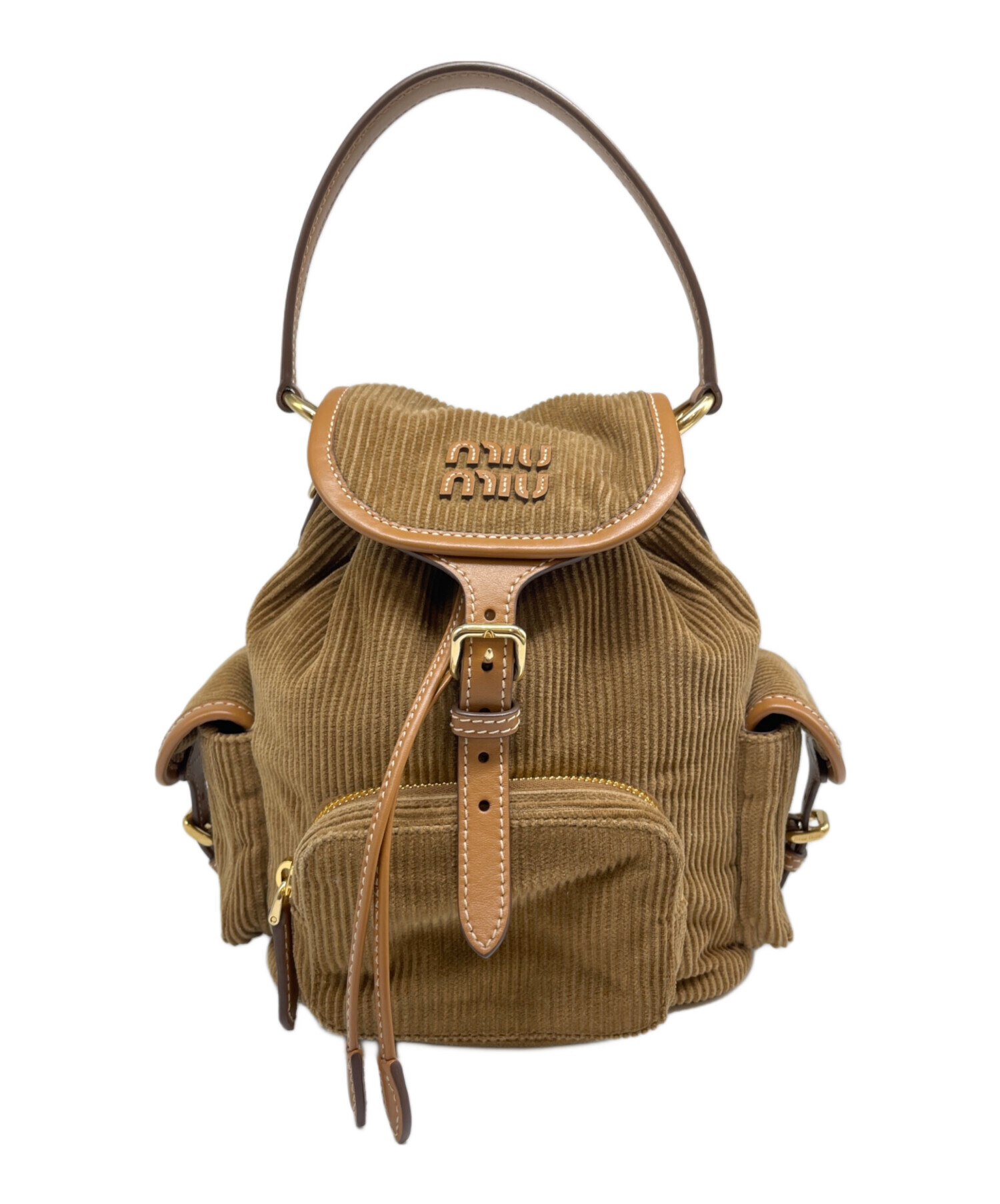 | スタッフコメント | MIUMIU(ミュウミュウ)のミニバックパックです。柔らかなコーデュロイと上質なレザーを組み合わせた、季節感溢れる贅沢なデザイン。フロントの立体的なロゴがアクセントになり、小ぶりながら収納力も備えた実用的なサイズ感です。カジュアルから綺麗めまで幅広いスタイルにマッチします。 |