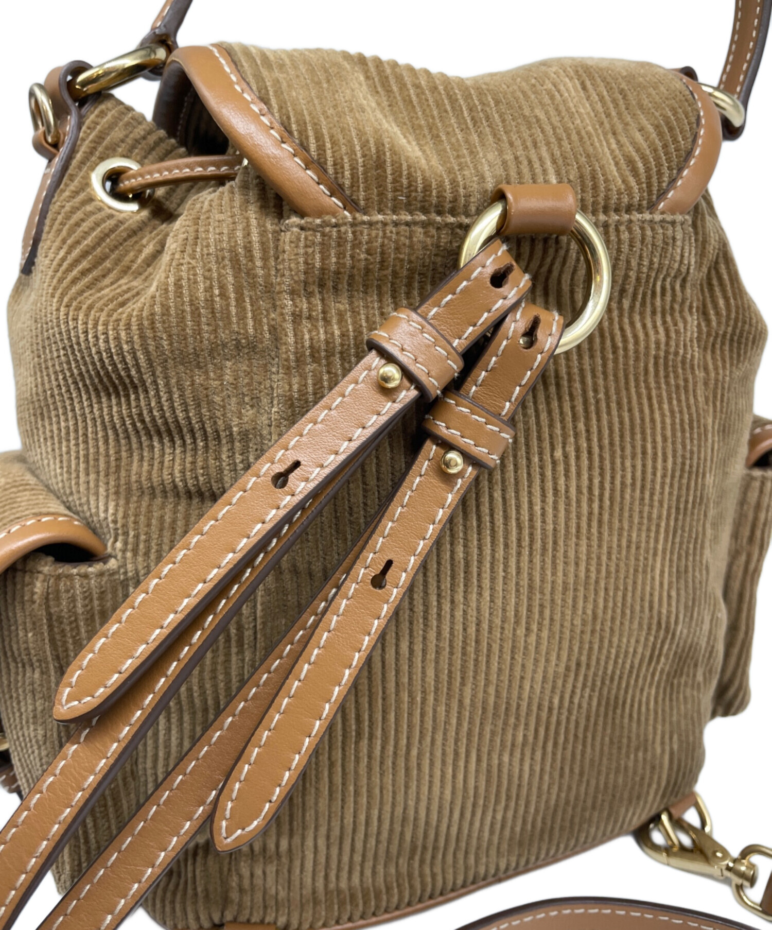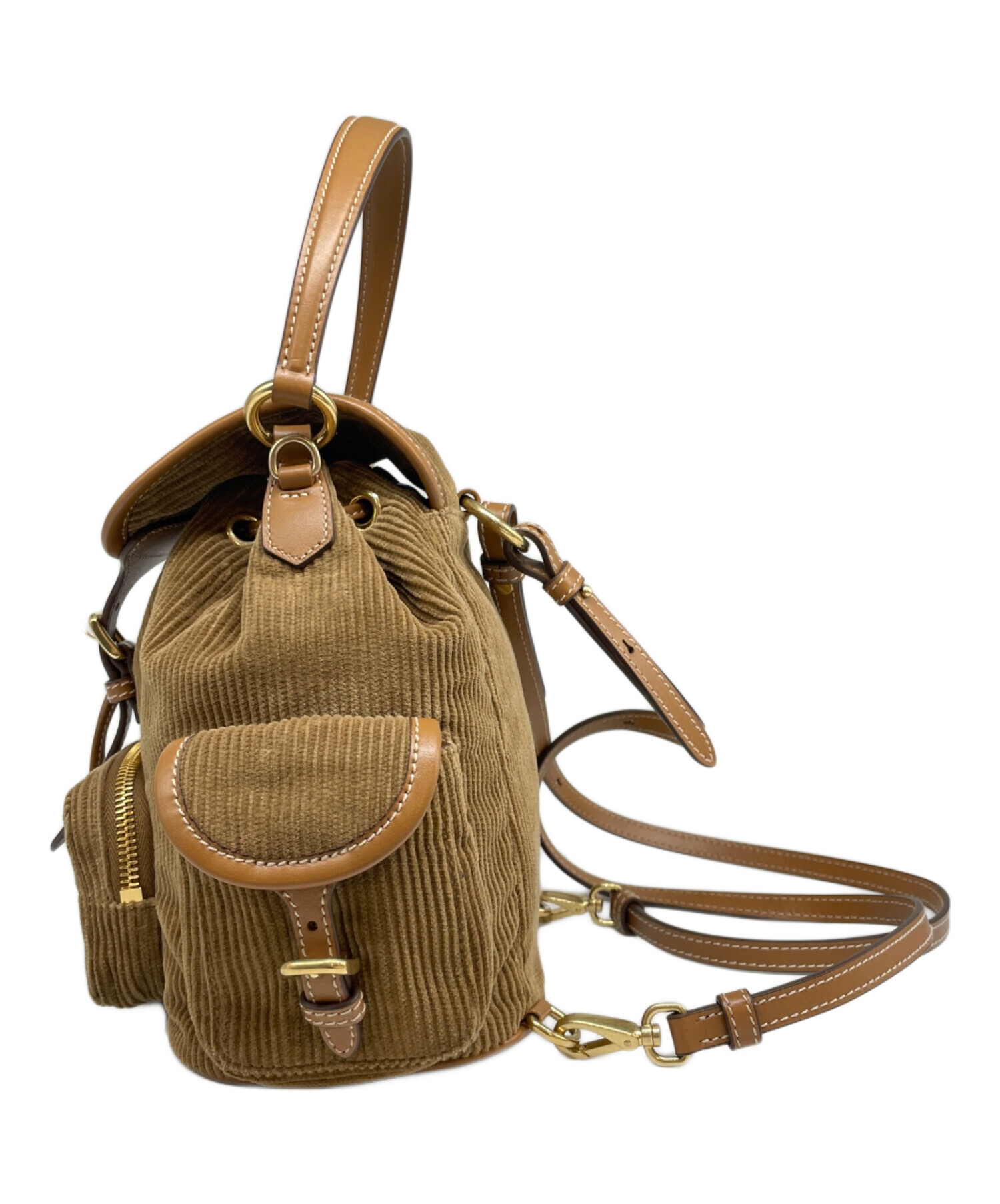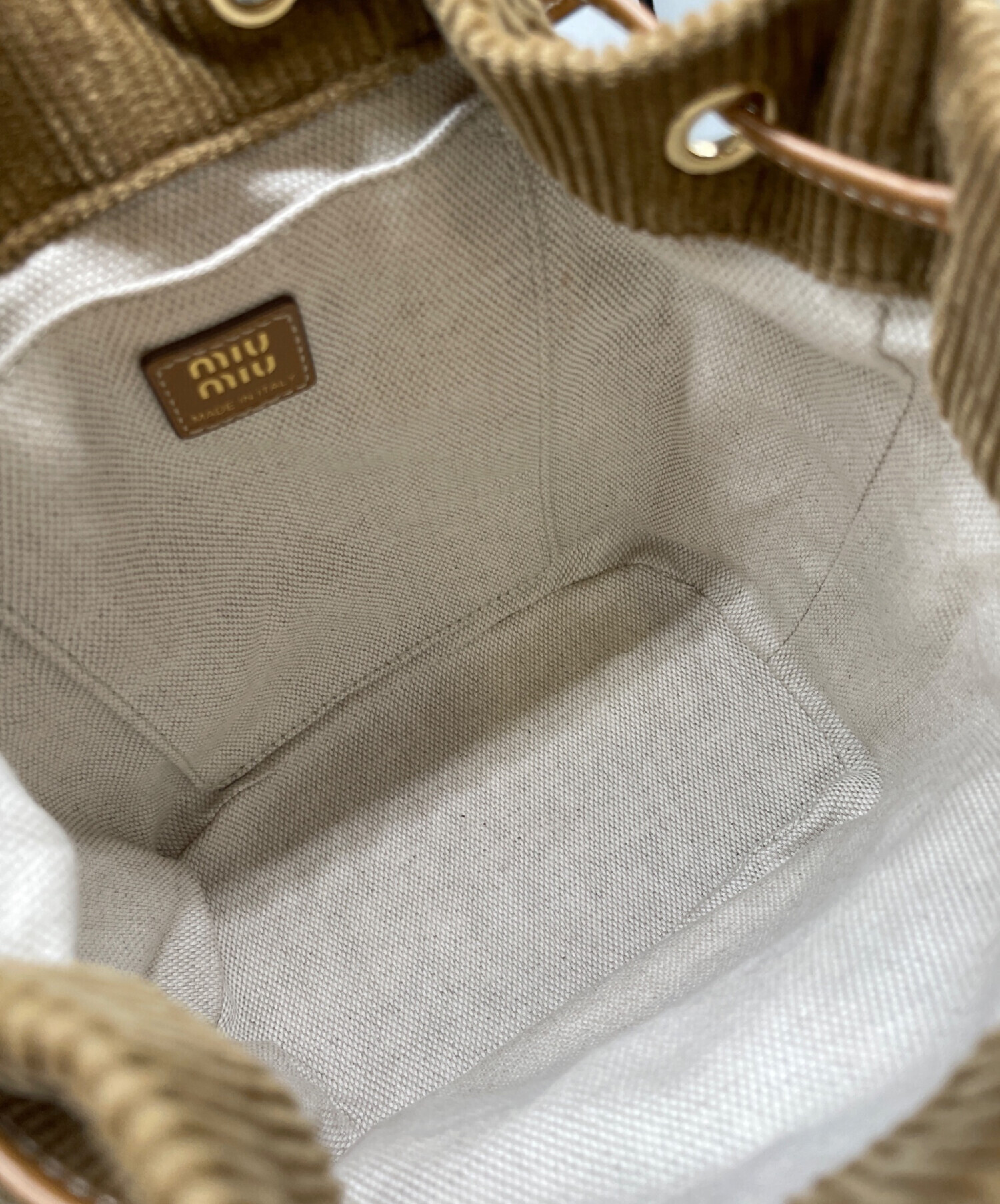 | スタッフコメント | MIUMIU(ミュウミュウ)のミニバックパックです。柔らかなコーデュロイと上質なレザーを組み合わせた、季節感溢れる贅沢なデザイン。フロントの立体的なロゴがアクセントになり、小ぶりながら収納力も備えた実用的なサイズ感です。カジュアルから綺麗めまで幅広いスタイルにマッチします。 |