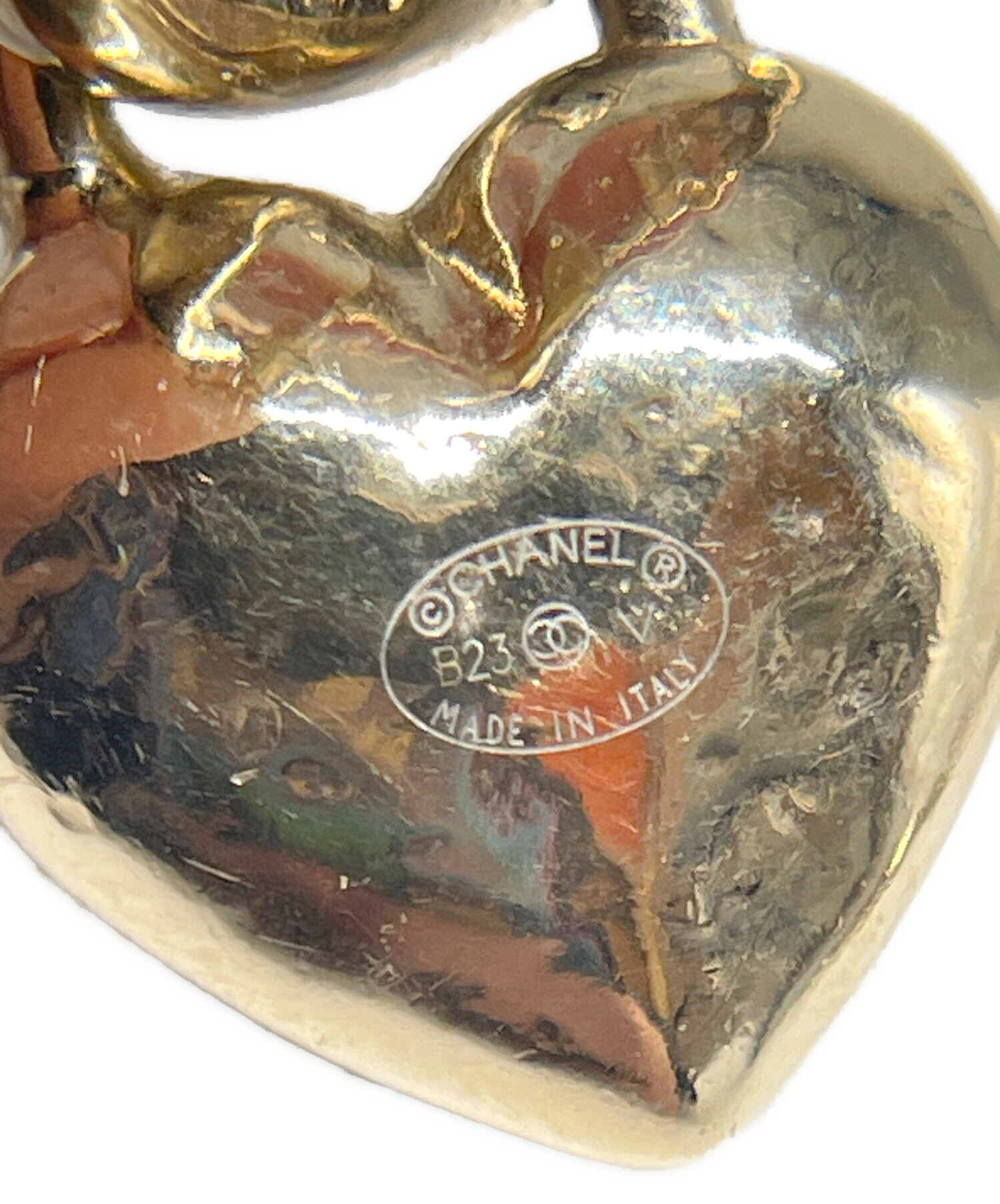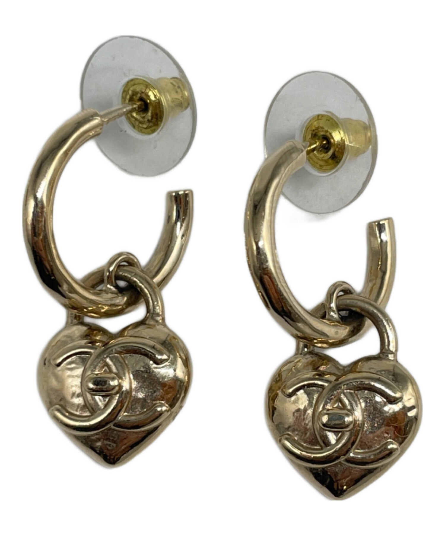 | スタッフコメント | こちら、 CHANELのハートモチーフフープピアスでございます。 ハートモチーフフープピアスは、甘いハートとブランドの気品が融合した、大人フェミニンなデザインが最大の特徴です。 ハートの中に「ダブルC」ロゴが配置され、一目でCHANELとわかる存在感があります。 |