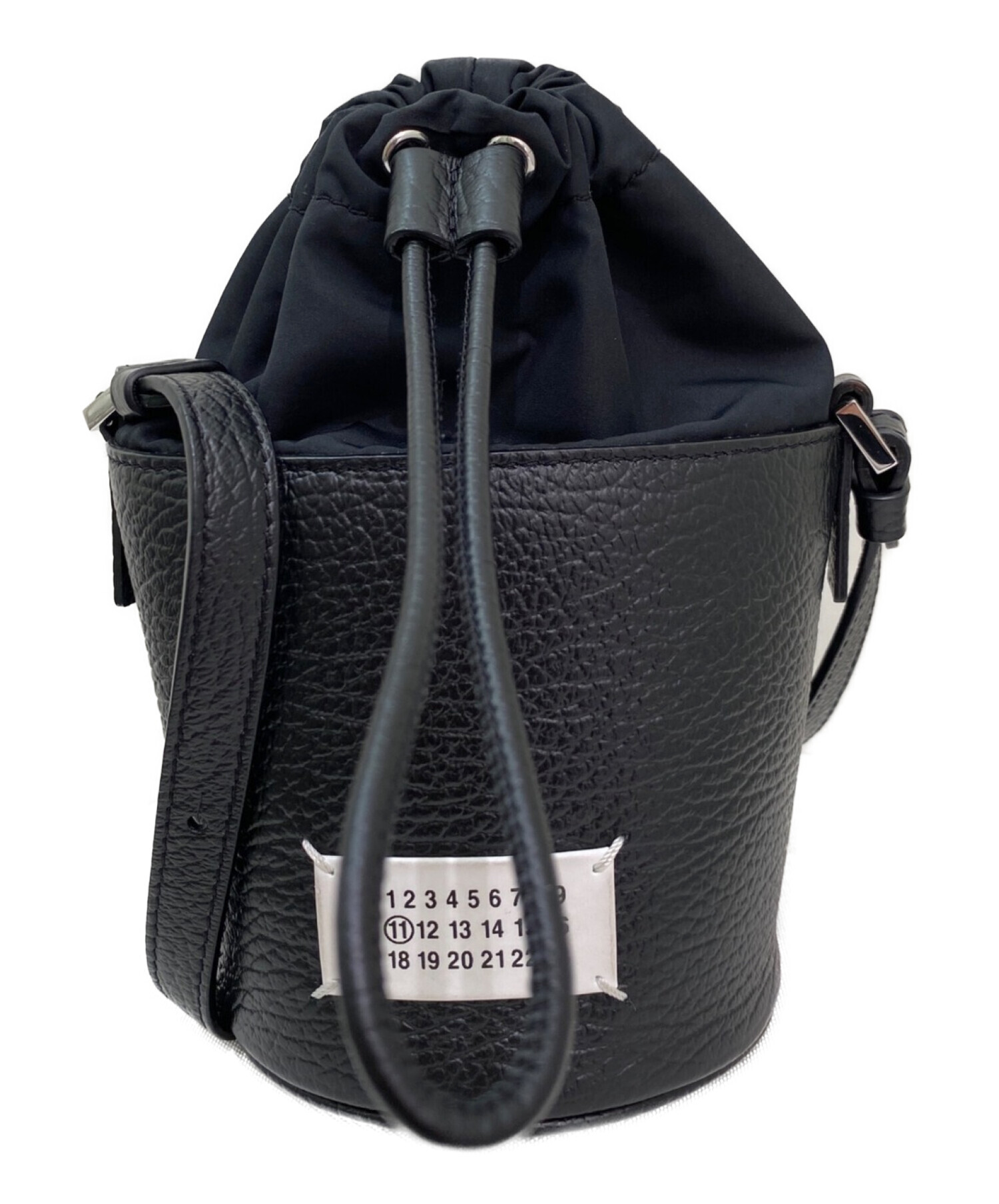 | スタッフコメント | マルジェラの人気ライン5ACバケットバッグになります。マイクロサイズとコンパクトなサイズ感になりますが、奥行きがあるため、携帯電話や2つ折り財布等を収納できるスペースがございます。コロンとした丸い形が可愛らしいアイテムです。 |