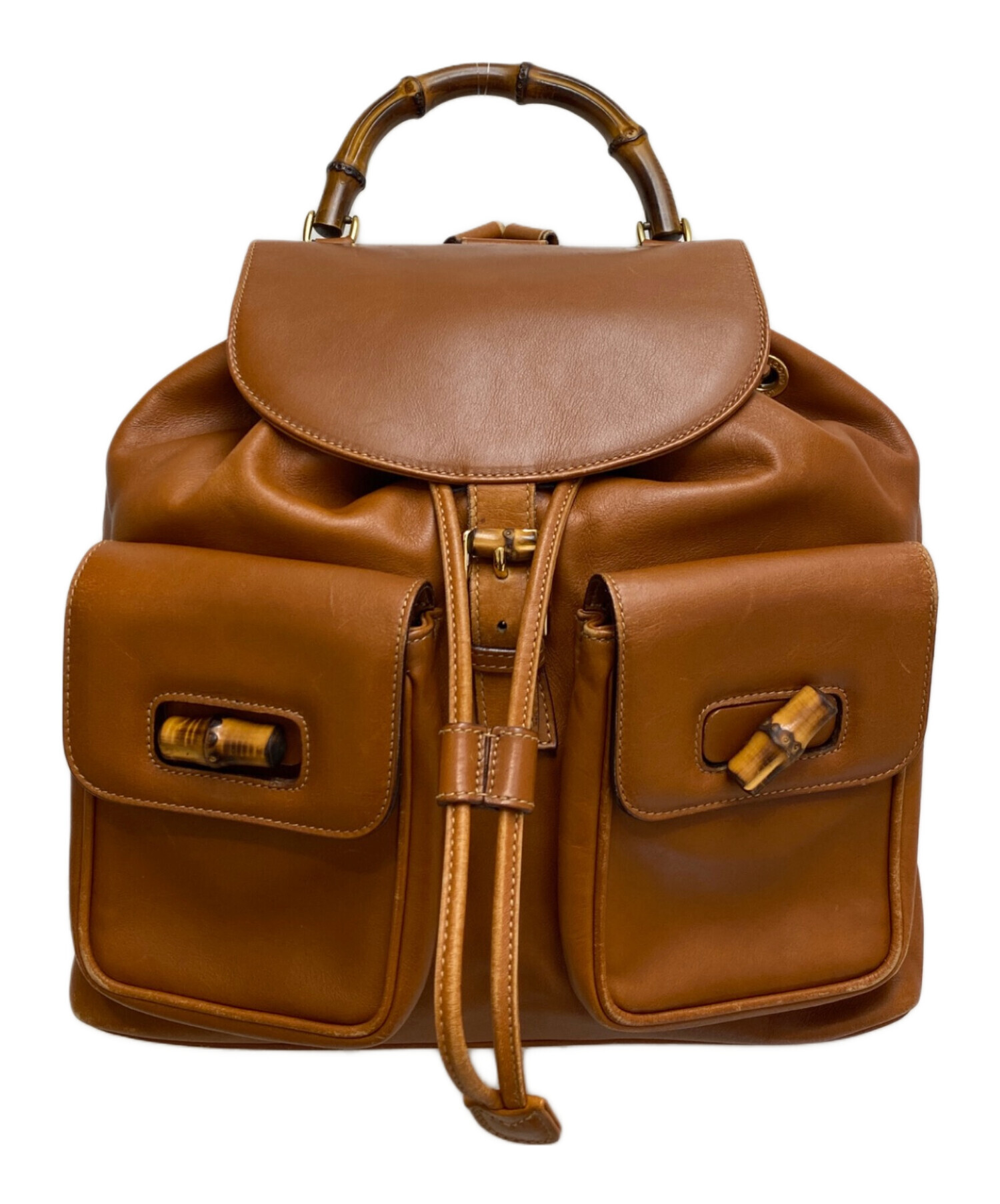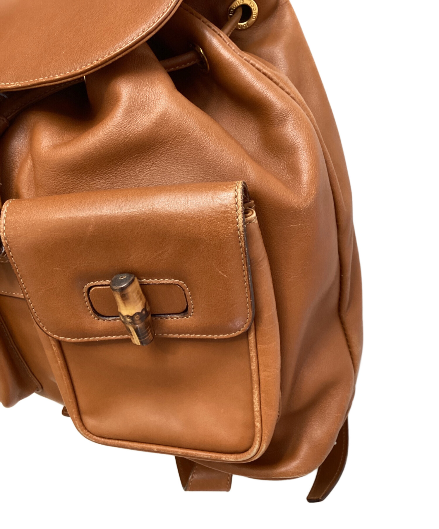 | スタッフコメント | 各所にあしらわれたバンブーディテールが魅力的なレザーバックパックでございます。ブラウンの滑らかな手触りで光沢のあるカーフスキンが上品な印象でお出かけに彩りを添えてくれます。便利な2つの外ポケットに、手持ちでも使いやすいバンブーハンドル、調節可能なショルダーストラップでどなたでもお使いいただけます。 |