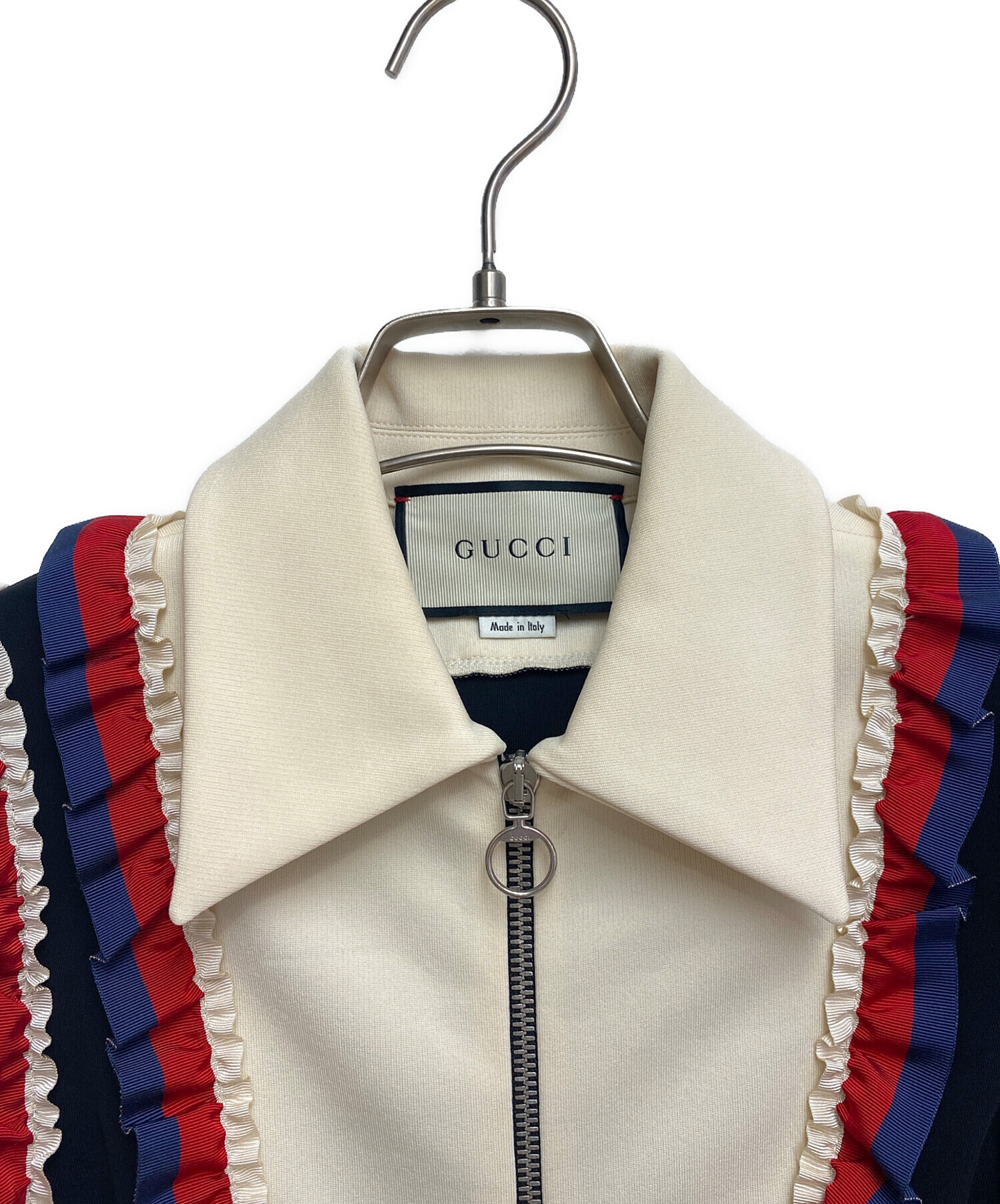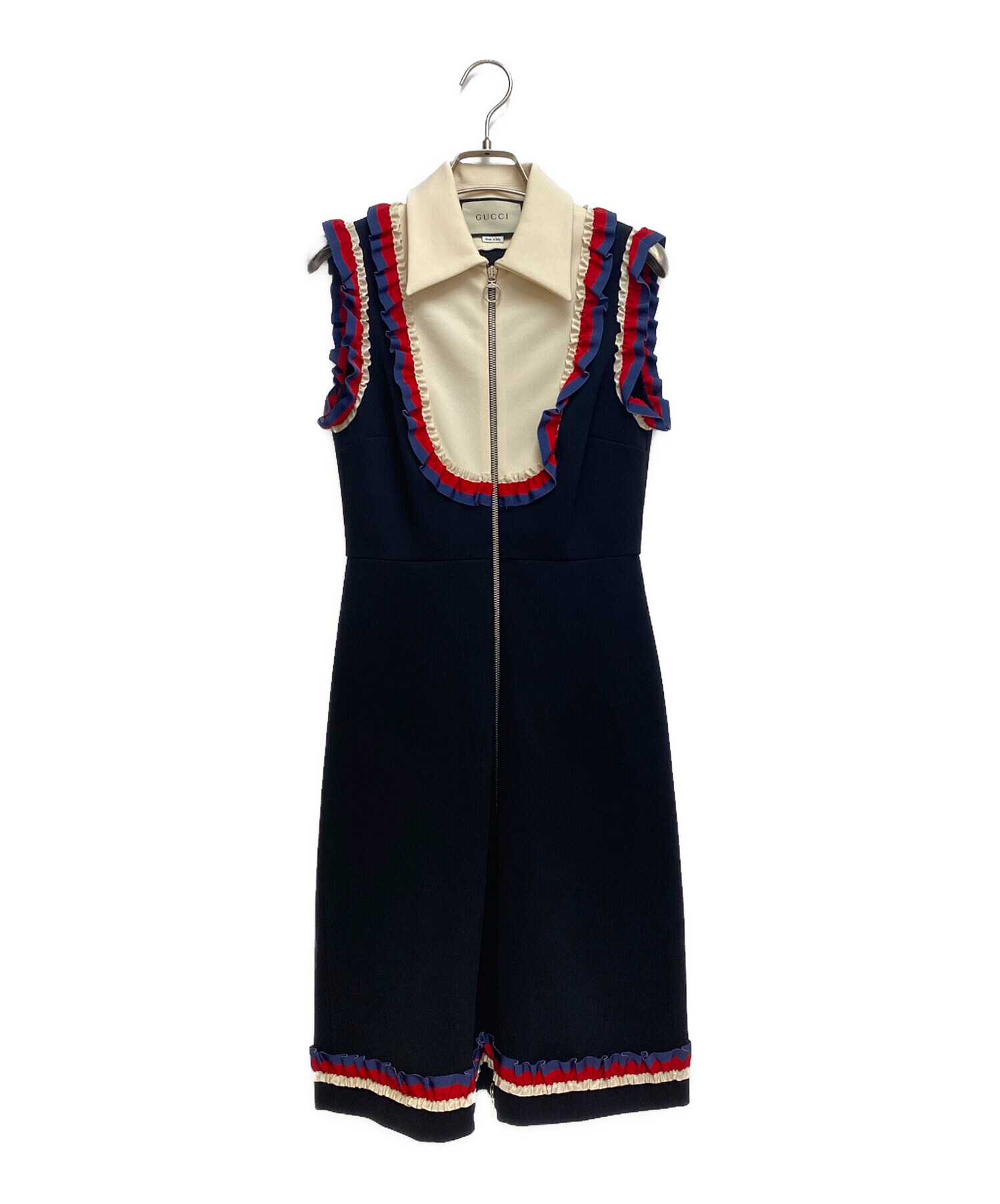 | スタッフコメント | 各所に施されたフリルがチャームポイントなフリルノースリーブワンピースでございます。また、フリルとリボンがGUCCIらしいトリコロールカラーとなっている点も非常に魅力的です。 |