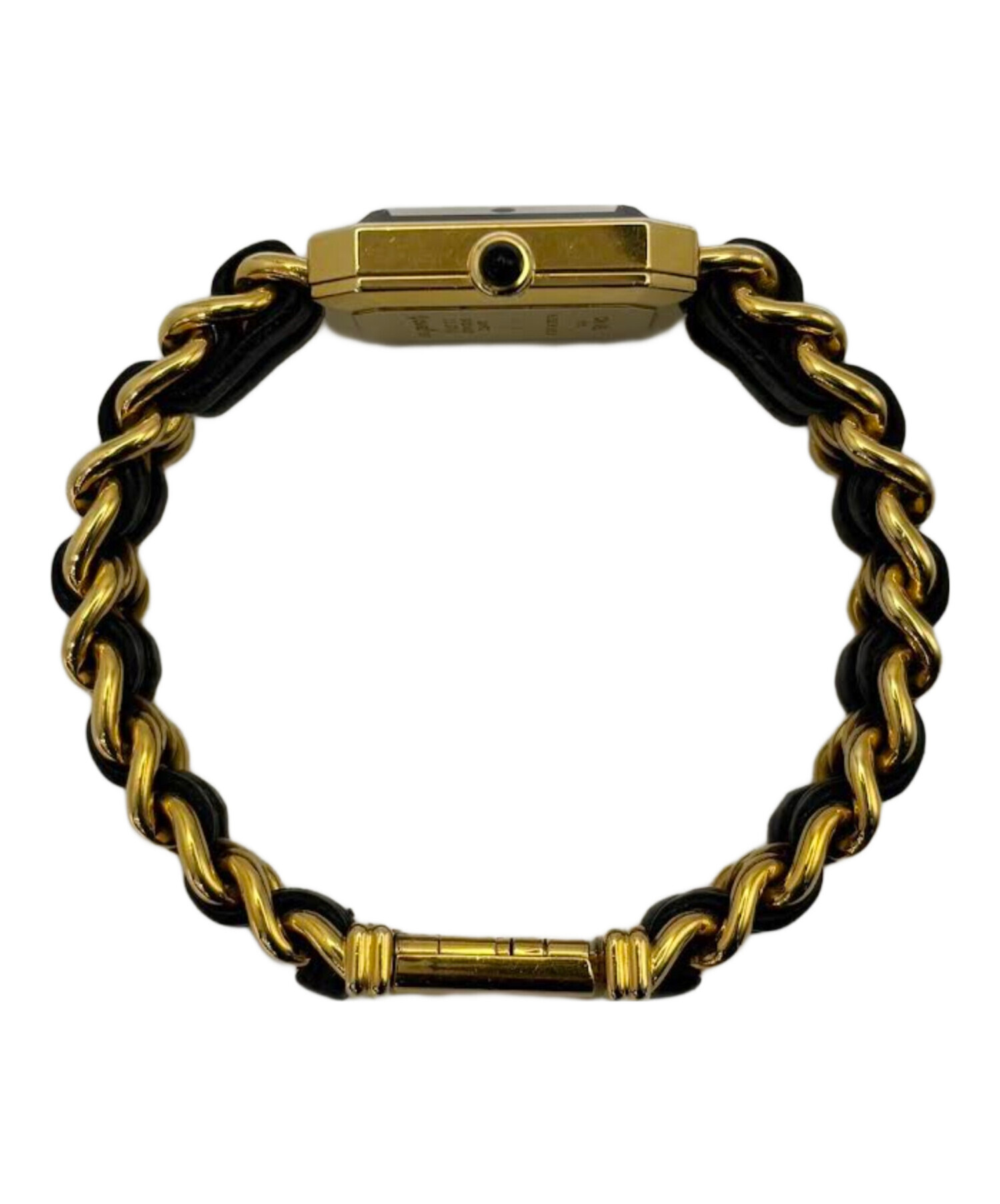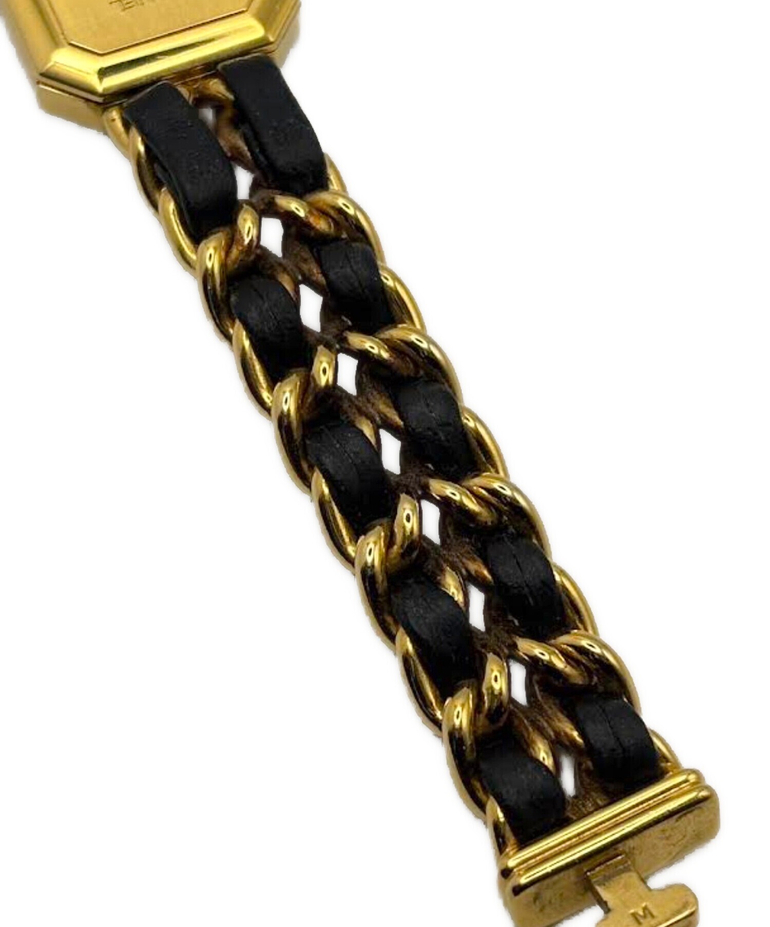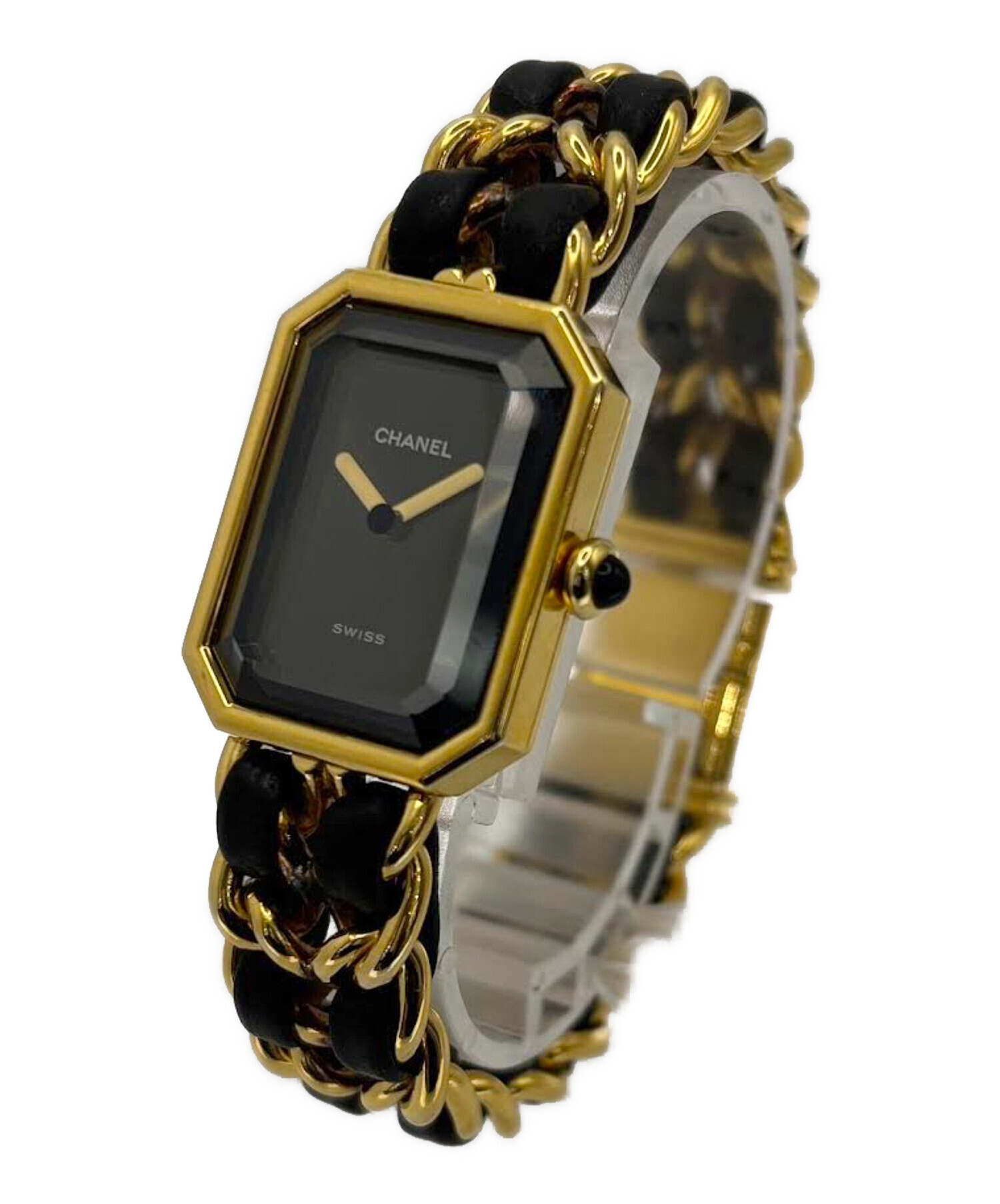| スタッフコメント | CHANELプルミエールコレクションのオリジナルでございます。八角形のケースは香水 N°5 のボトルストッパーの形を、レザーを編み込んだオリジナルブレスレットはシャネルのアイコニックなキルティングバックのチェーンを連想させます。合わせやすい色使いで、日常の様々なコーディネートに華を添えてくれます。 |