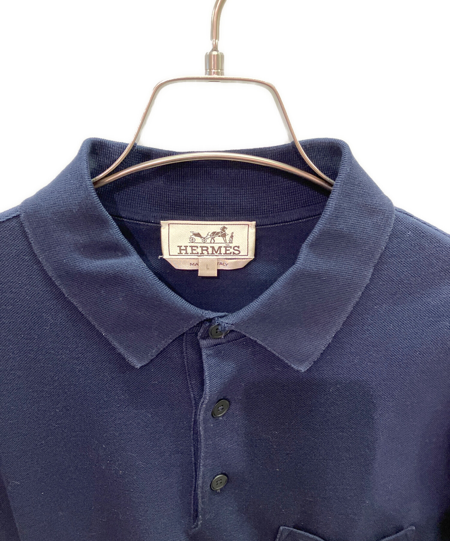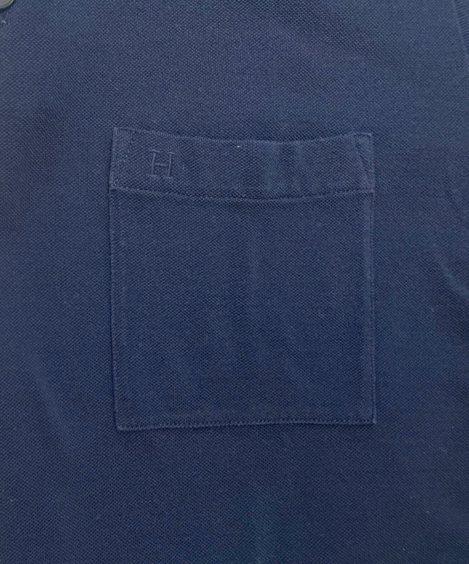 | スタッフコメント | ポケットにさりげなく配置されたHロゴがブランドらしさを感じさせるエルメスの鹿の子 Tシャツでございます。洗練されたシンプルなデザイン、汎用性の高いネイビーカラーが特徴的で、オールシーズンで活躍するお品物となっております。 |