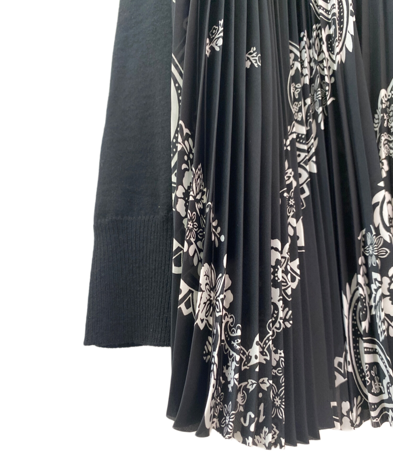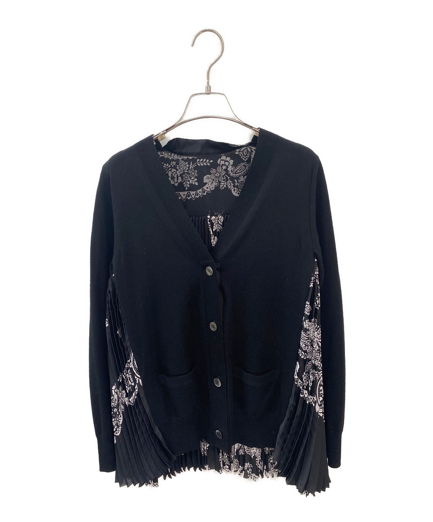 スタッフコメント ウールの前身頃に花柄プリントのプリーツ素材がドッキングしたカーディガンでございます。ユニークなデザインながらモノトーンでシックにまとまります。カーディガンが主役になるアイテムでございます。