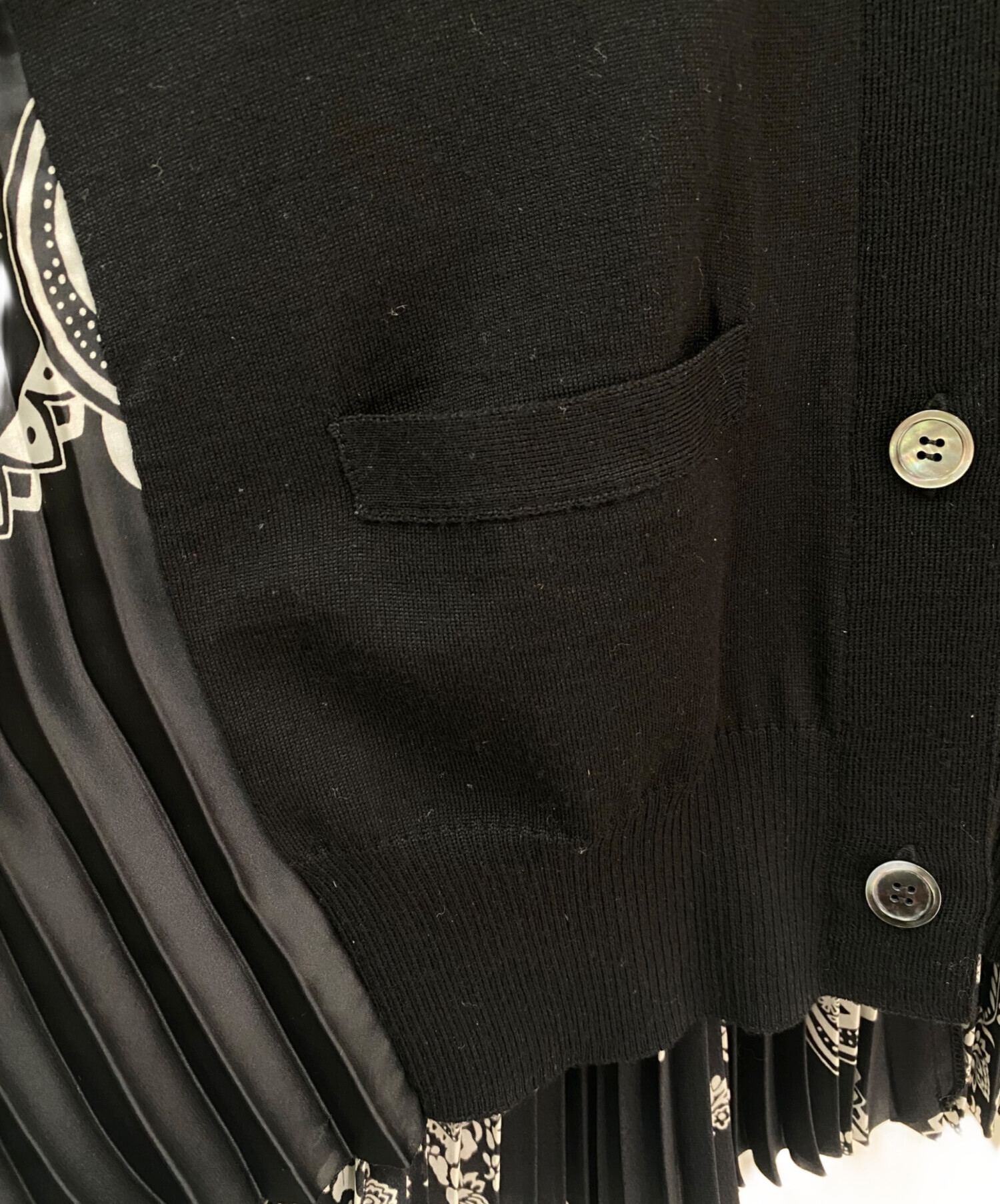 アイテム名 プリーツドッキングカーディガン/異素材切替/シェルボタン