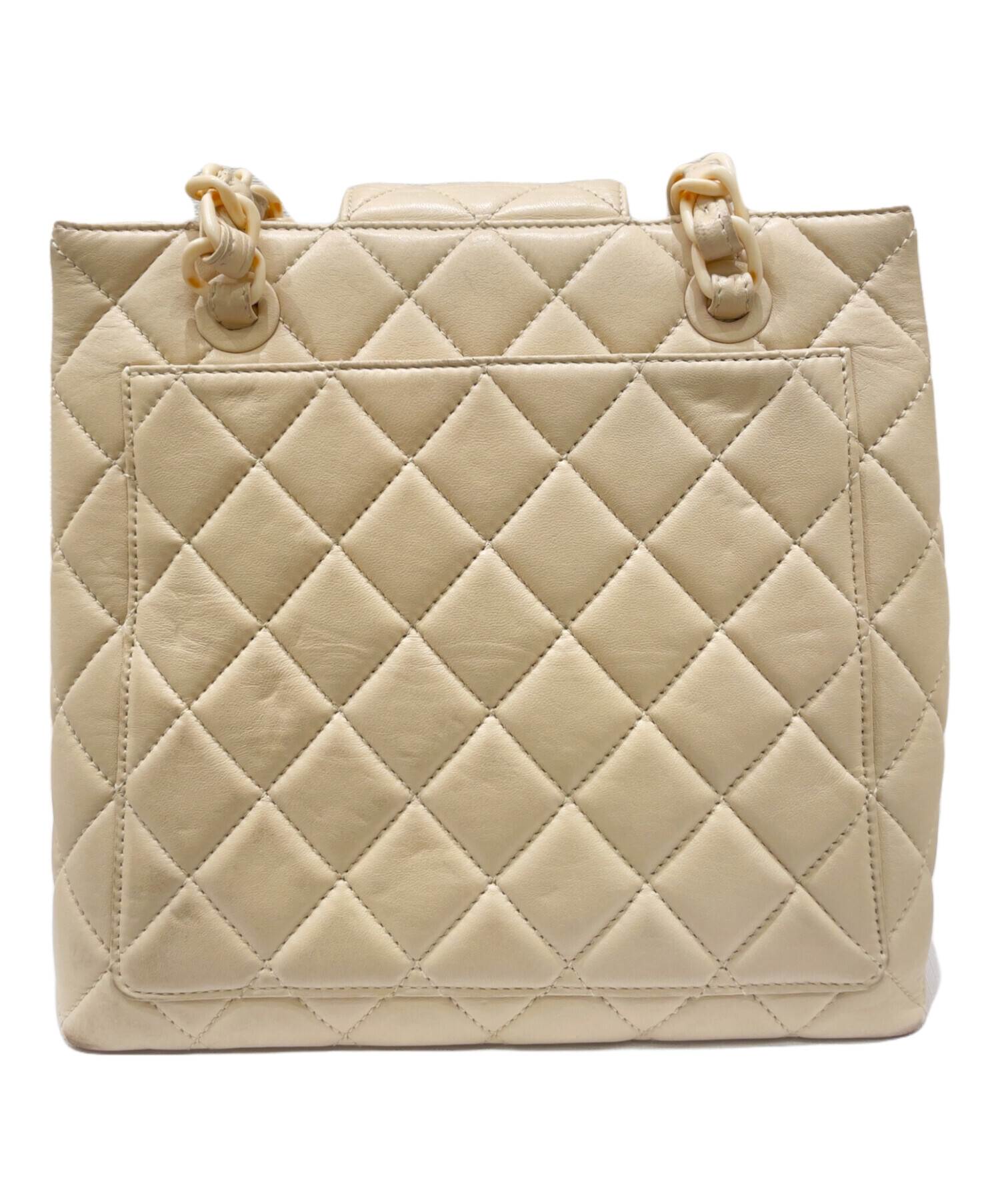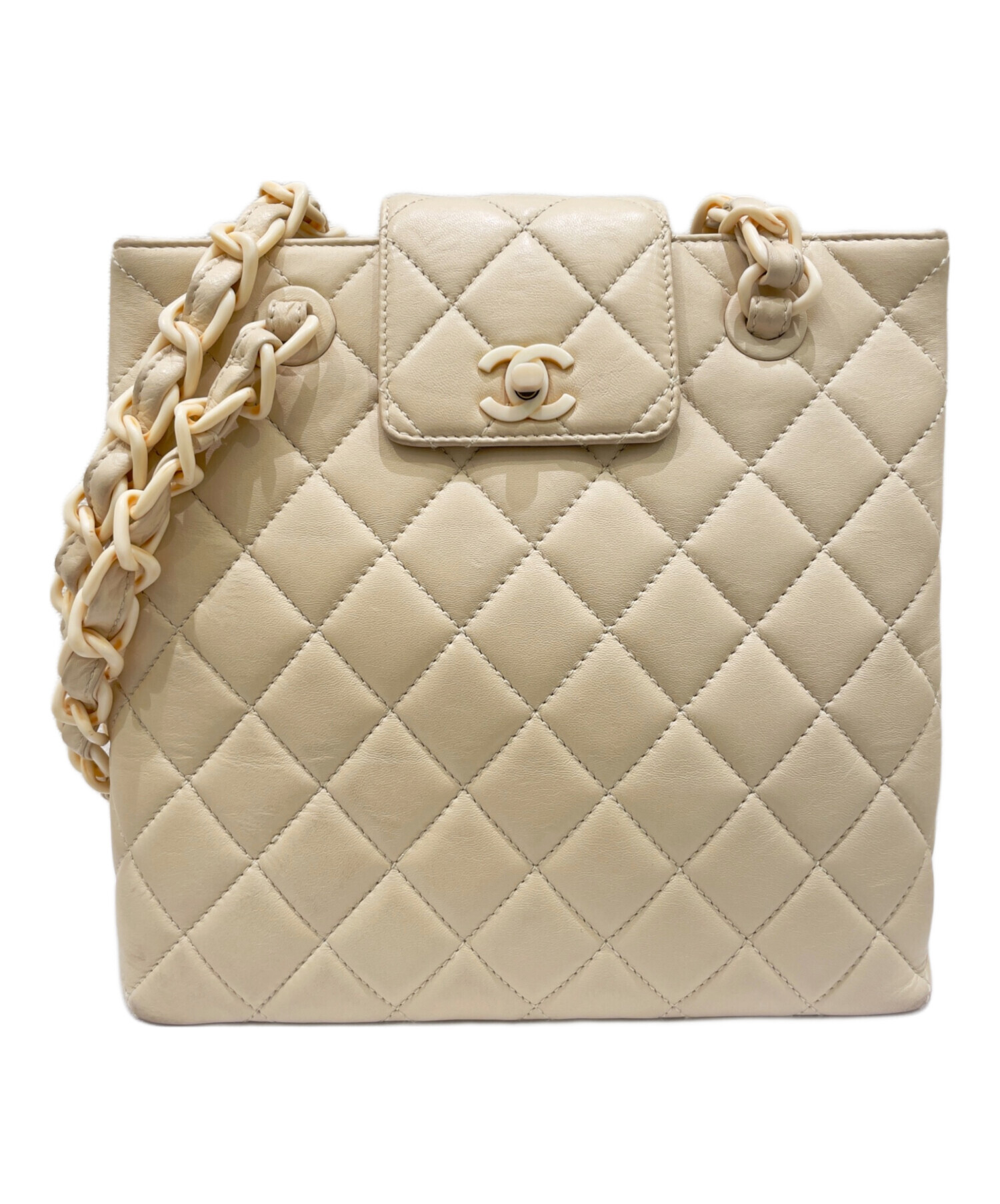 | スタッフコメント | 軽量なプラスチックチェーンが特徴的なキルティングトートバッグです。長財布やスマートフォンなど大体の小物が収納できるサイズ感です。 |