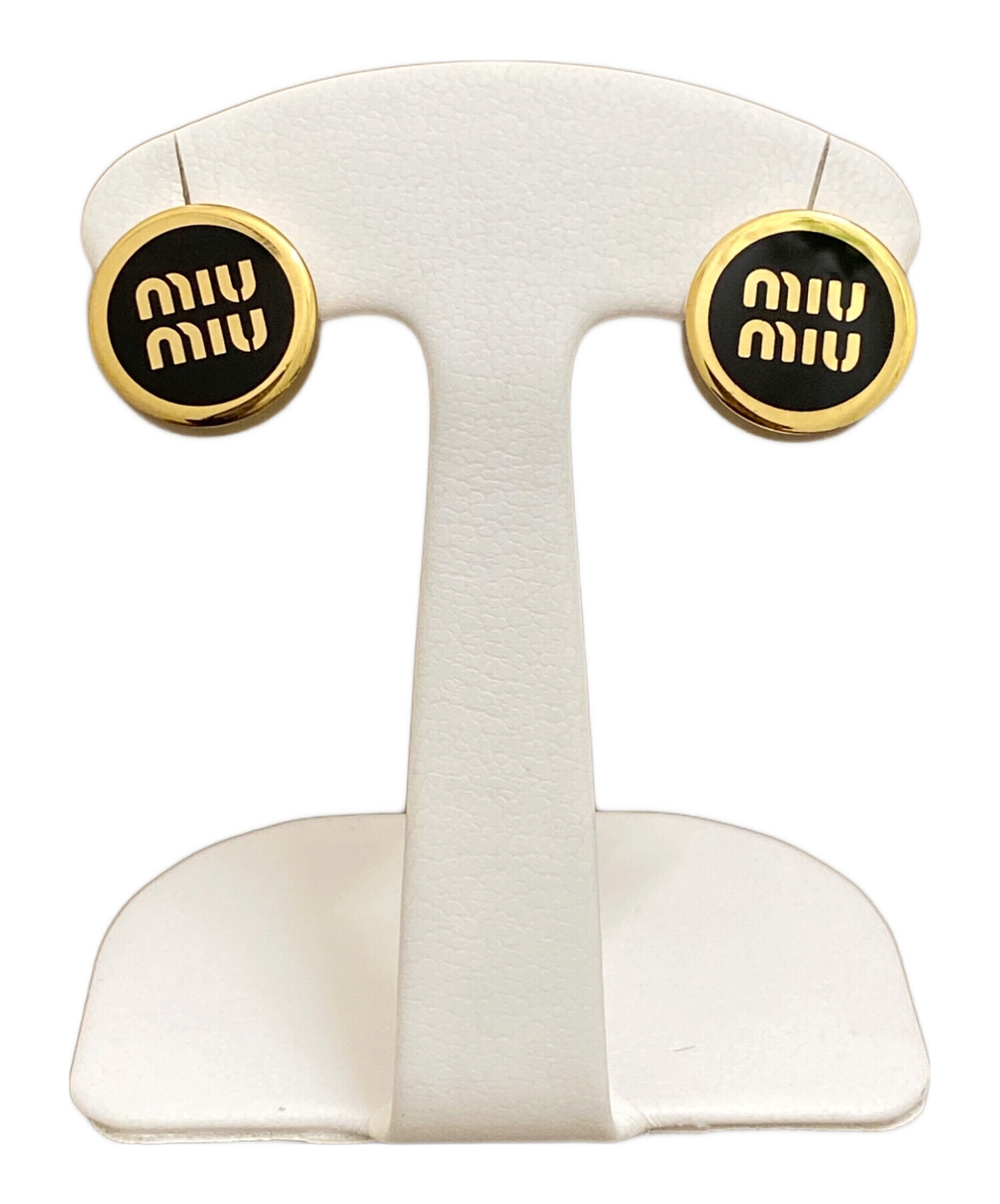 | スタッフコメント | ラウンドシェイプの中央にMIU MIUのロゴがあしらわれたピアスでございます。艶やかに光るブラックのエナメル×ゴールドのコンビネーションが美しく、上品な雰囲気になります。 |