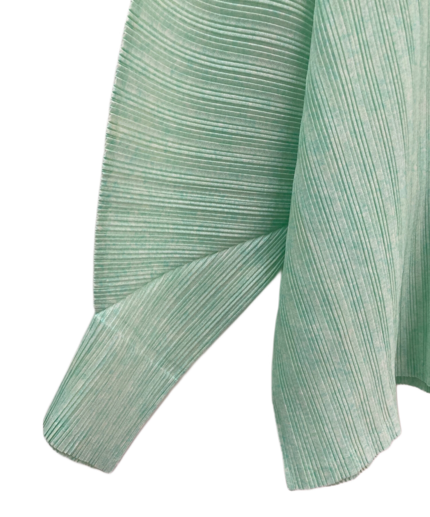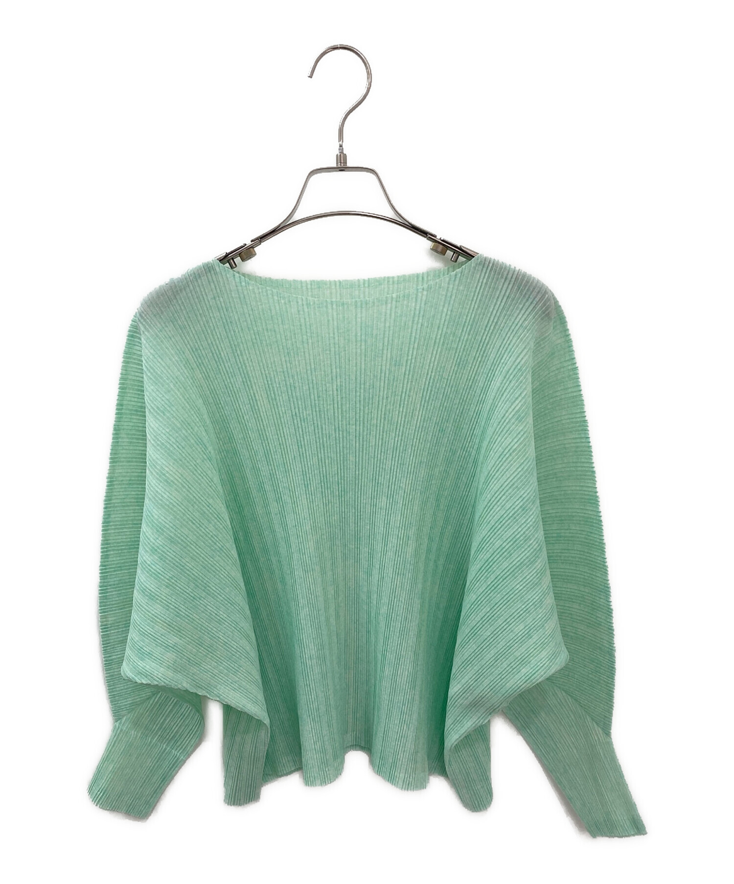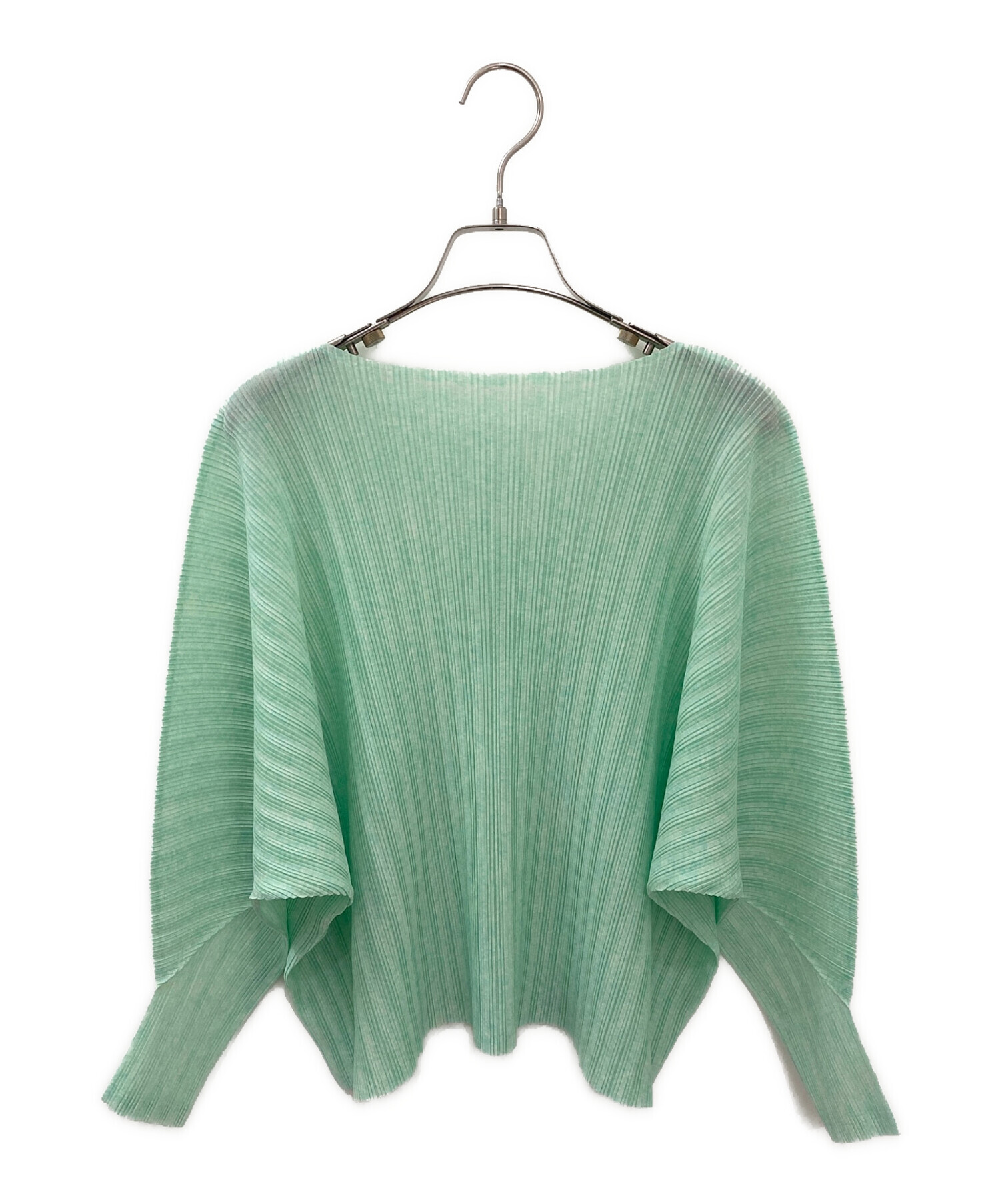 | スタッフコメント | PLEATS PLEASEのプリーツカットソーでございます。細かく斑になっているような模様のライトグリーンカラーです。ドルマンスリーブのシルエットが、女性らしい柔らかさとこなれ感を演出します。 |