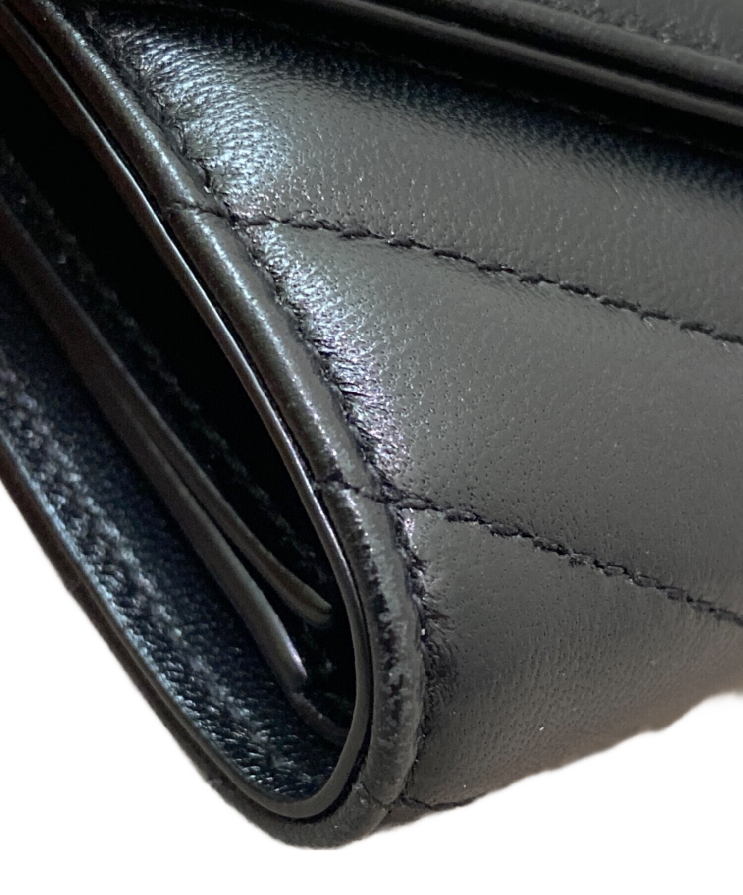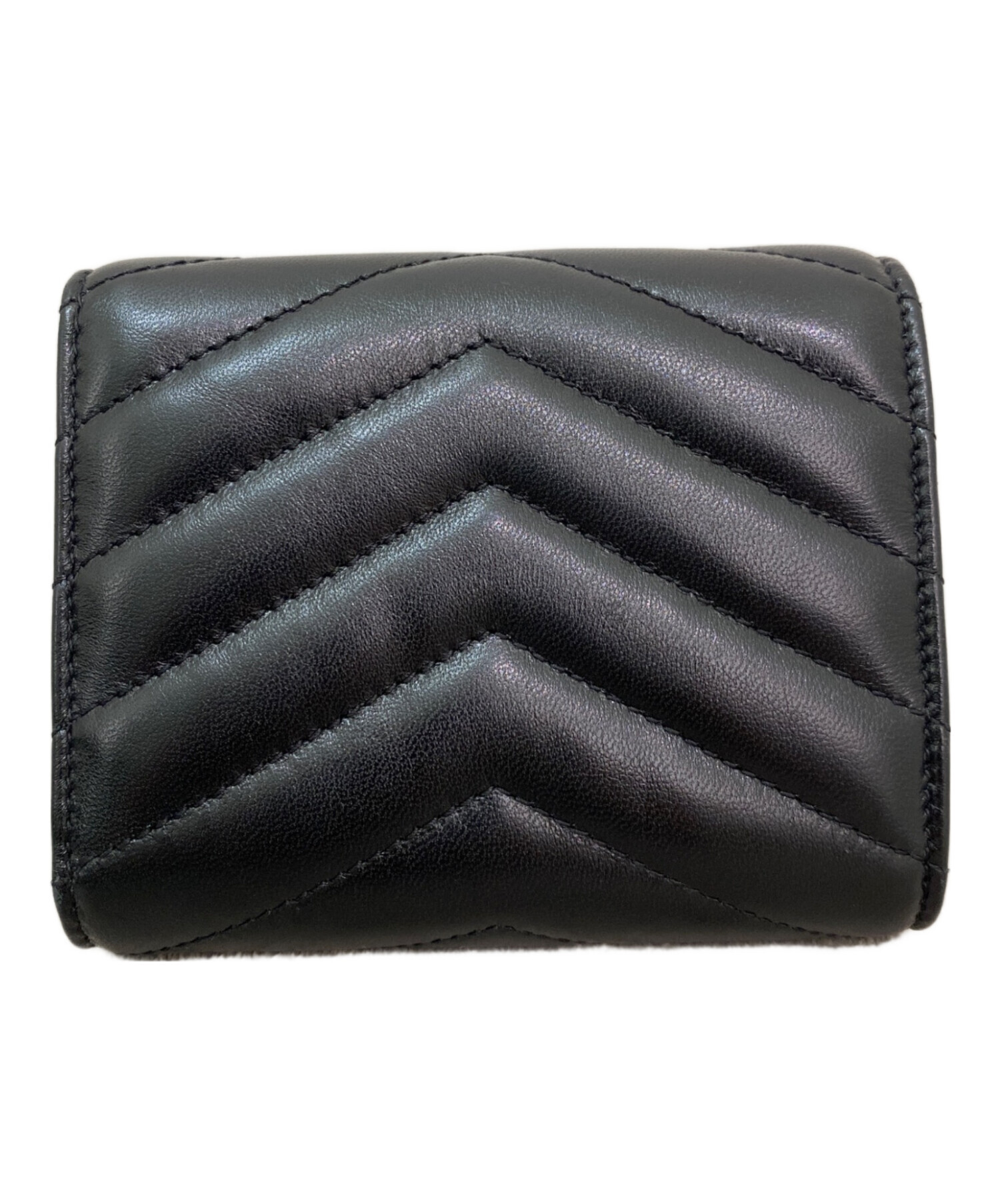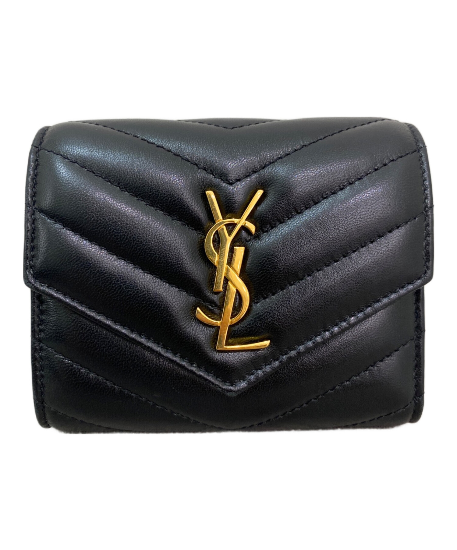 スタッフコメント ふっくらとしたV字のキルティングにゴールドのカサンドラがあしらわれたコンパクトウォレットでございます。サンローランらしいアイコニックなデザイン性と十分な収納力が魅力的なお財布でございます。