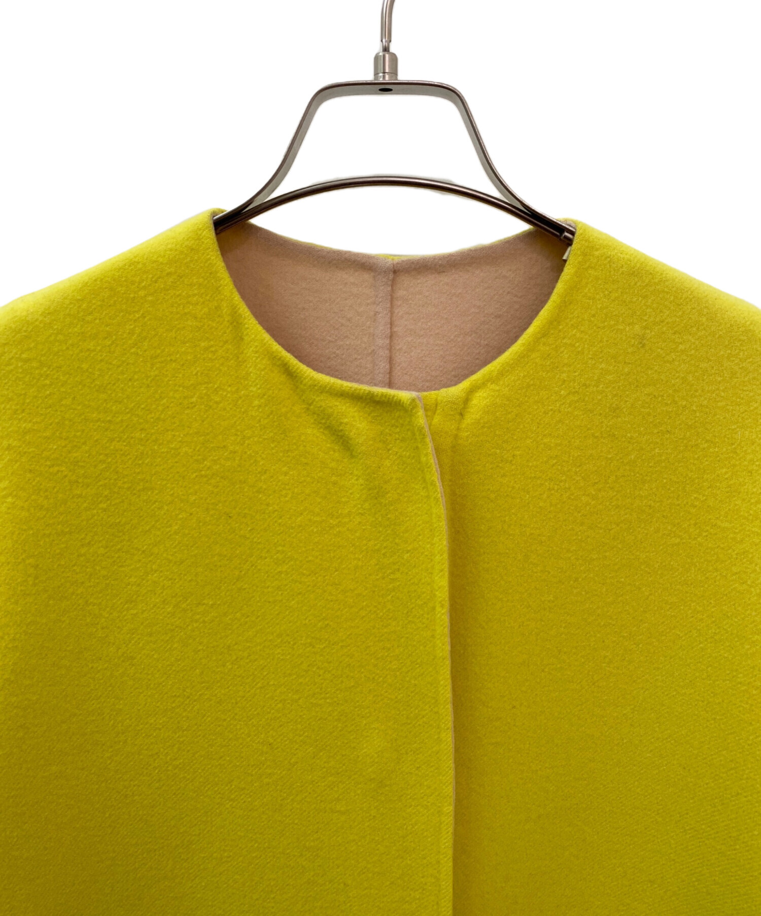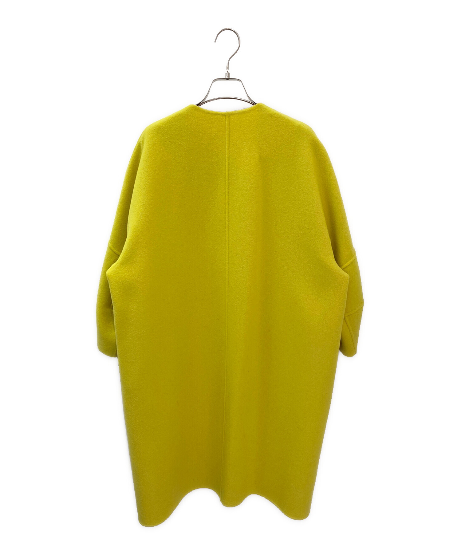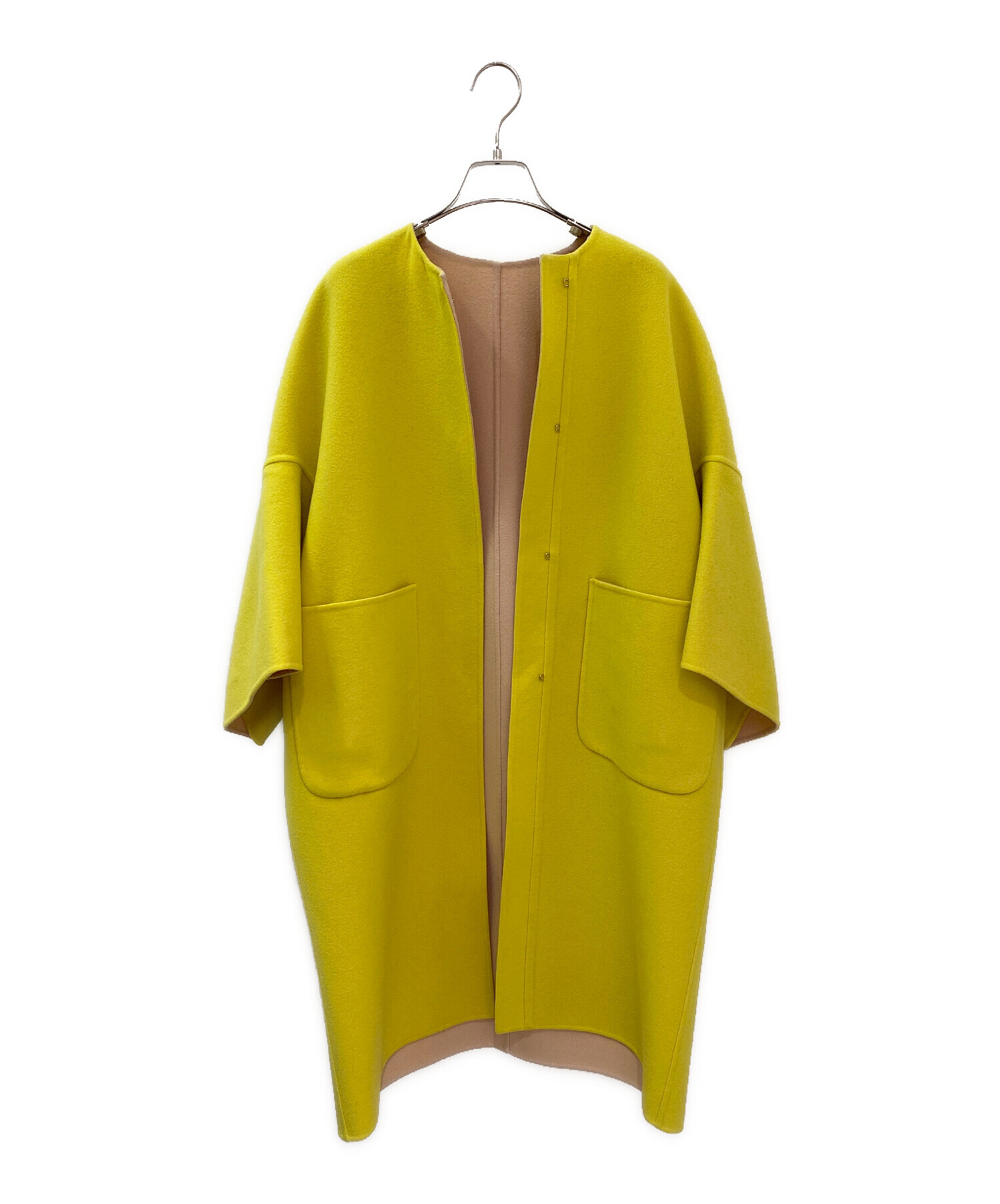 • DRAWER(ドゥロワー)DRAWER (ドゥロワー) 配色リバーノーカラーコート イエロー サイズ:36の古着・服飾アイテム 襟ヨゴレ有