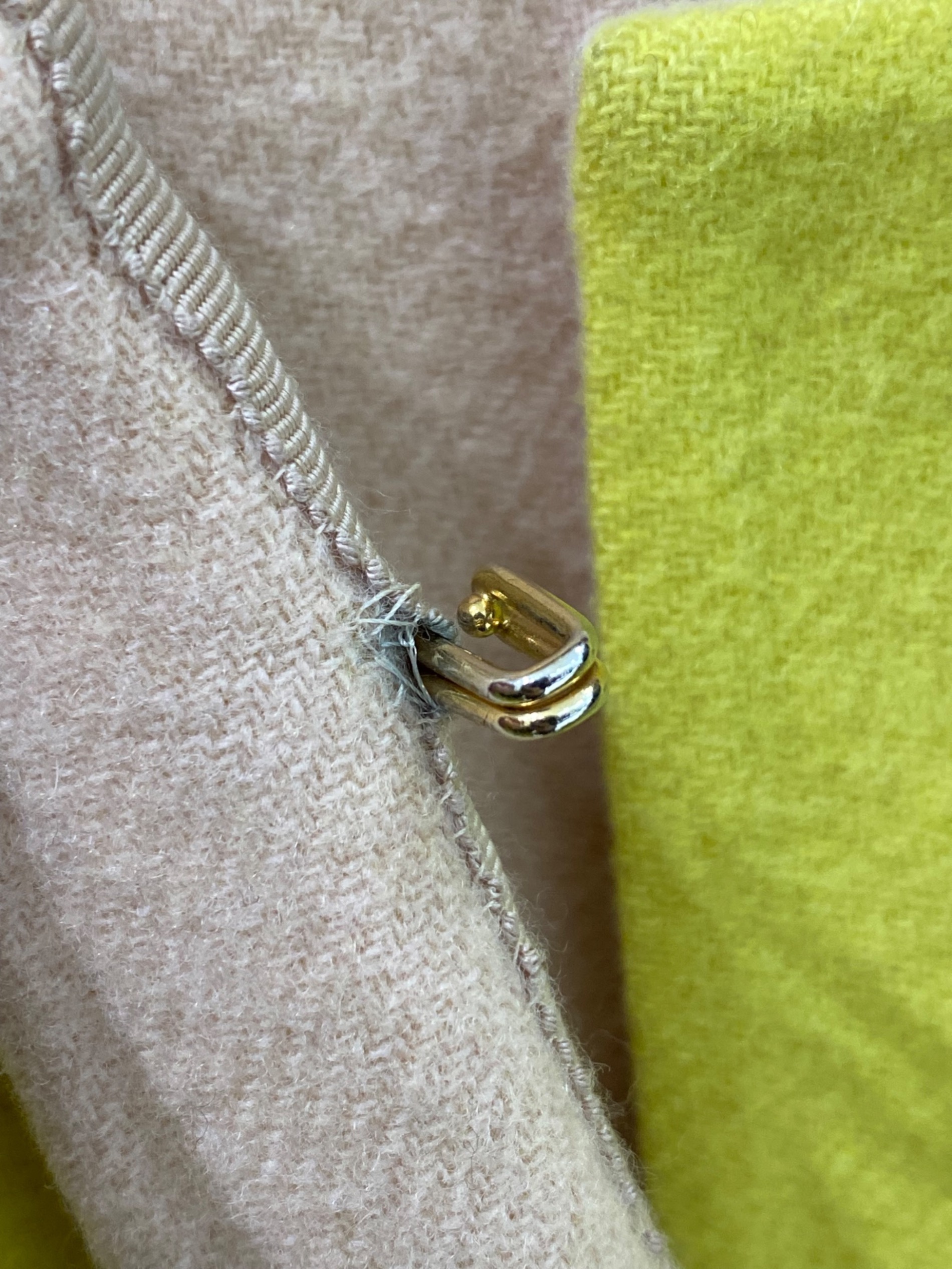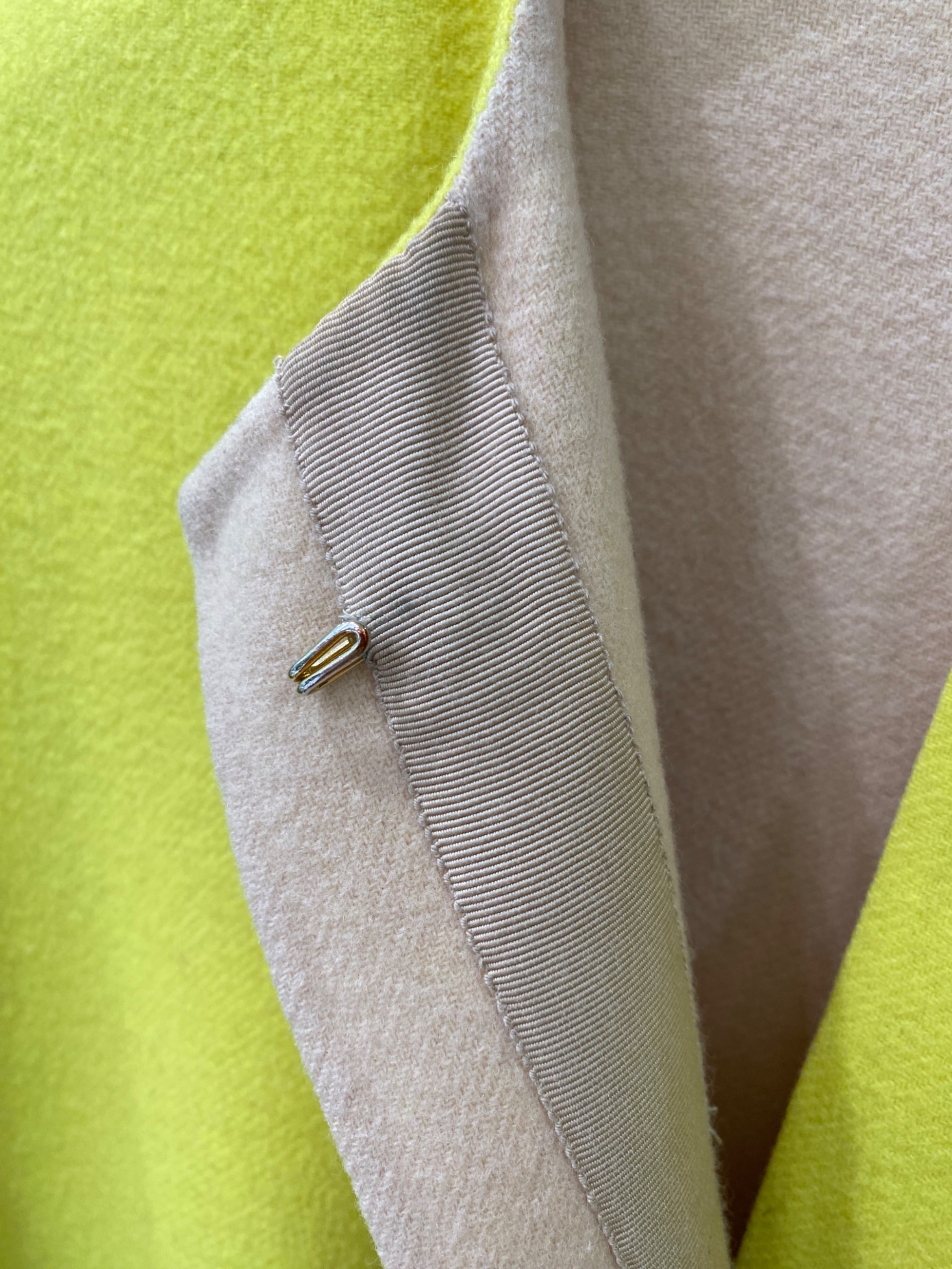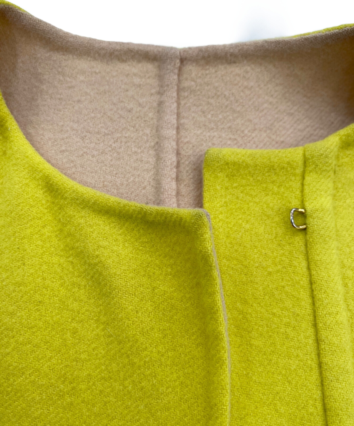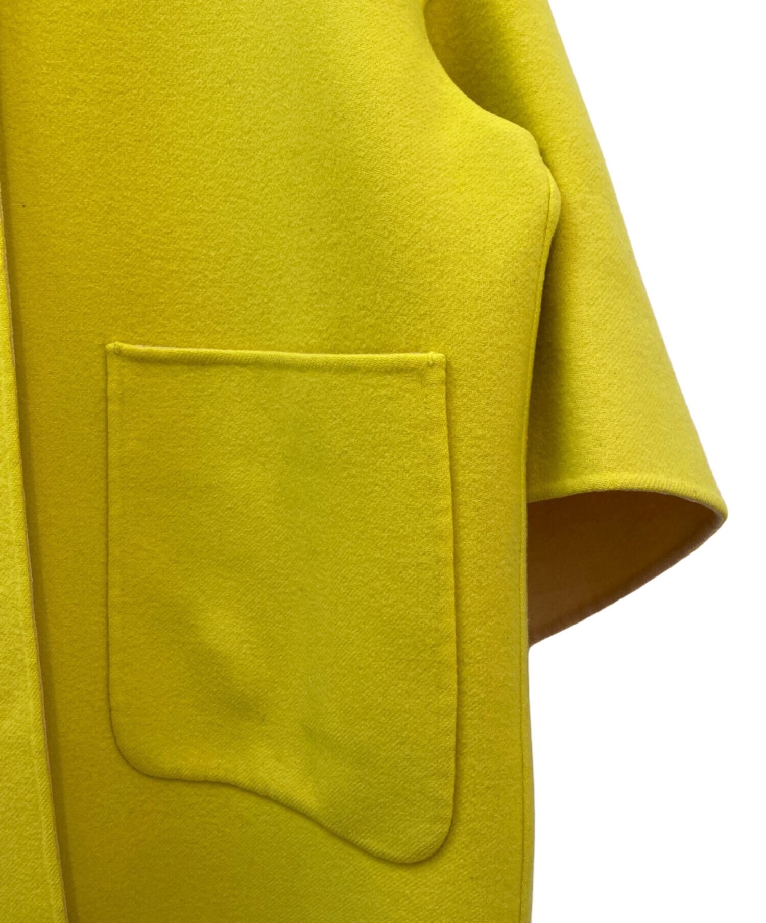 • DRAWER(ドゥロワー)DRAWER (ドゥロワー) 配色リバーノーカラーコート イエロー サイズ:36の古着・服飾アイテム 襟ヨゴレ有