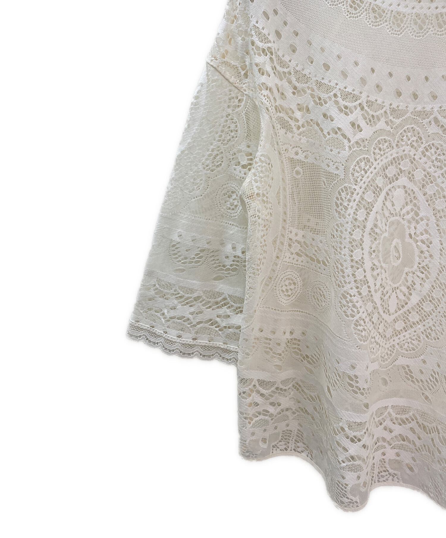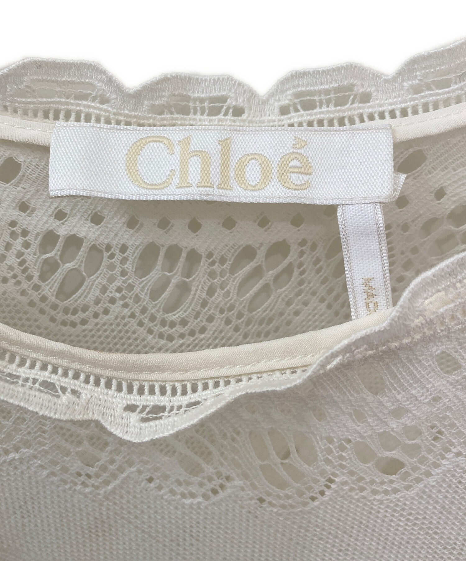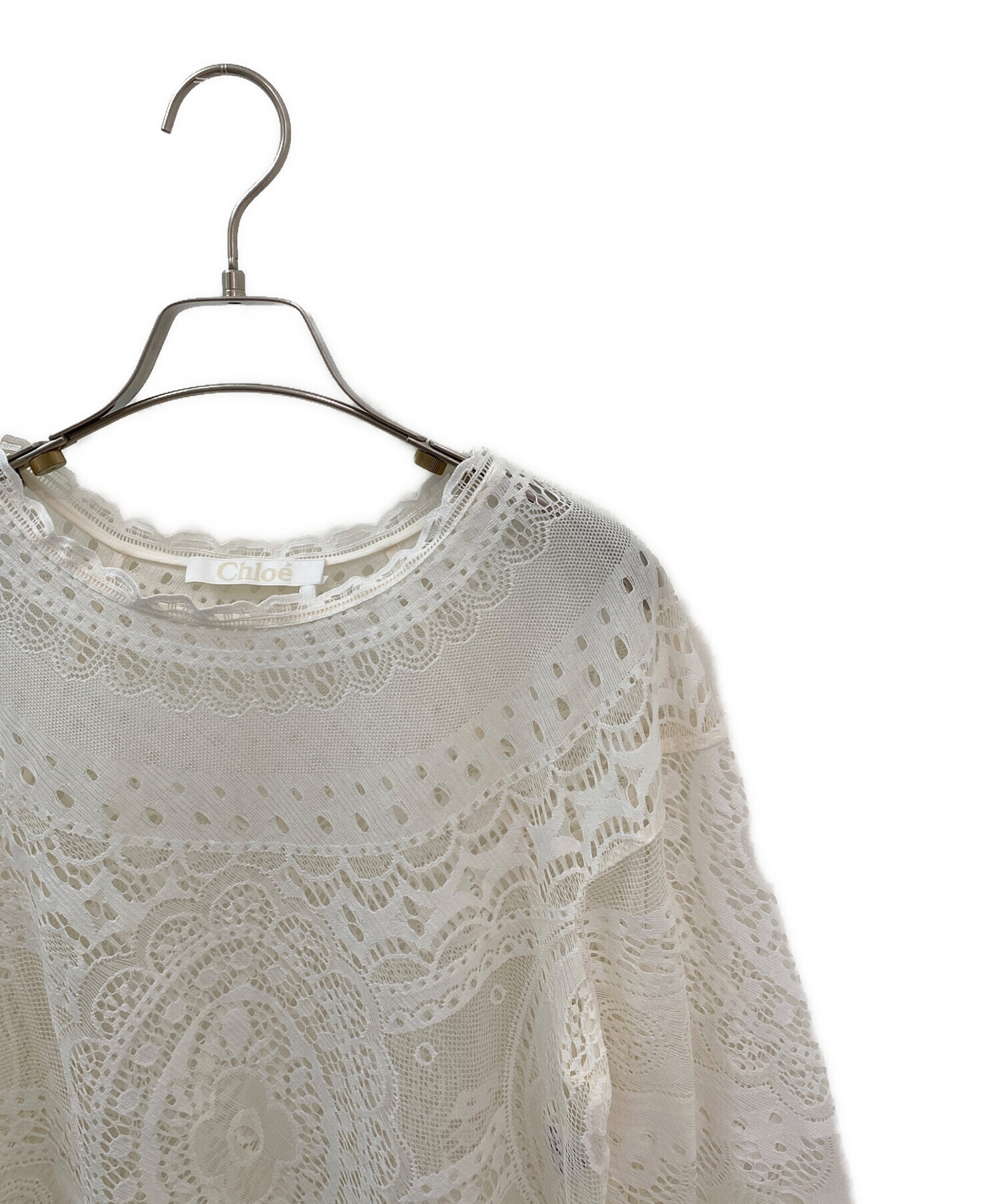 | スタッフコメント | Chloeのレースカットソーでございます。繊細なレース編みが上品なアイテムで、スカラップデザインが可愛らしい雰囲気を演出します。透け感があるのでインナーとのレイヤードコーデをお楽しみいただけるアイテムでございます。 |