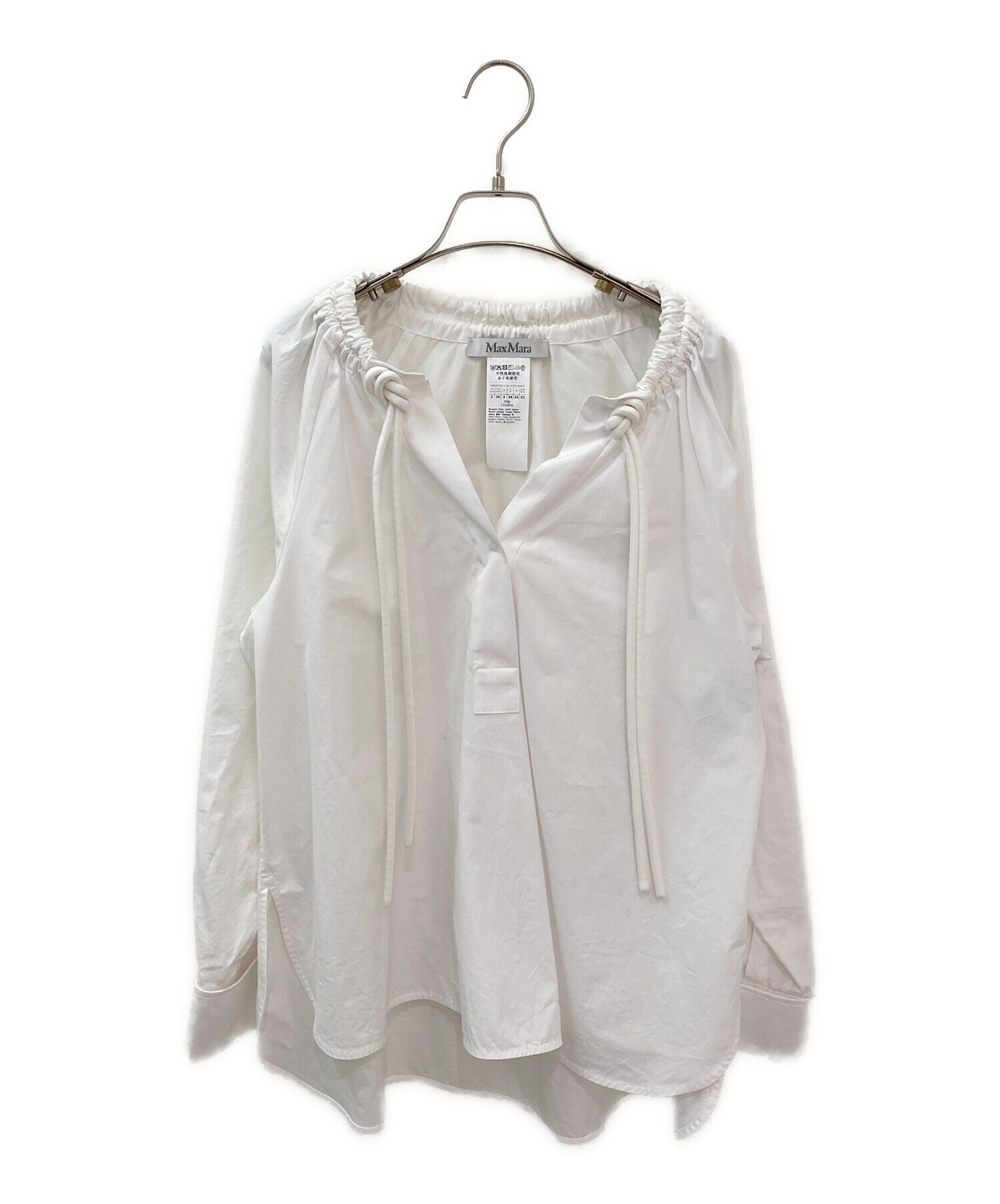 | スタッフコメント | MaxMaraのブラウスでございます。襟元のドロストデザインとカフスの金具が特徴的ながら、全体で見ると洗練されたデザインで、カジュアルからオフィスシーンまで活躍します。上質な素材で仕立てられており、長くご愛用いただける1着でございます。 |