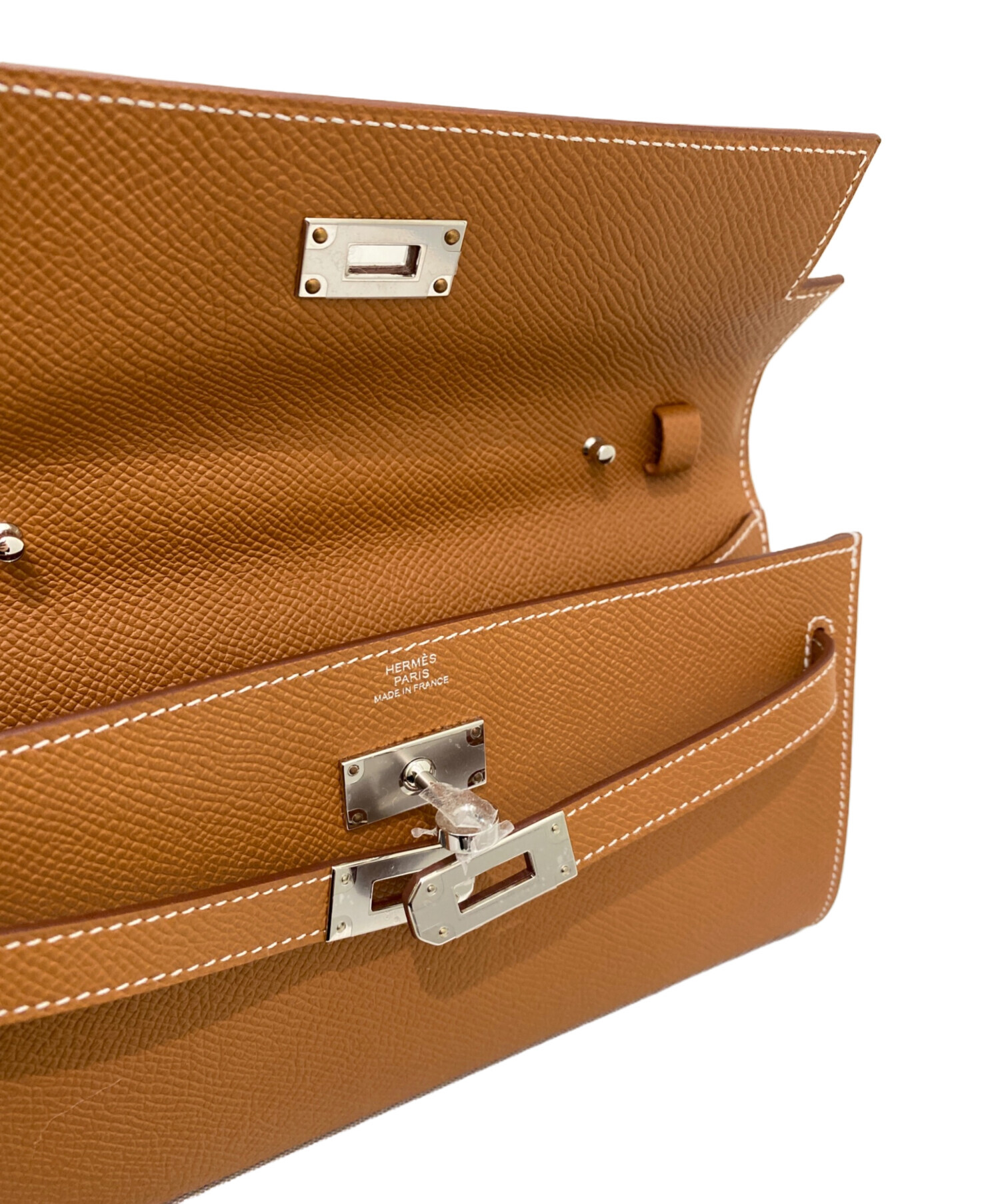 | スタッフコメント | 上質なヴォー・エプソンレザーを使用した、程よいハリと型崩れしにくい美しいフォルムで、ケリーバッグのアイコニックなデザインをコンパクトに落とし込んだアイテムです。クラッチとしてはもちろん、ストラップを付けてショルダーバッグとしても使用可能です。必要最低限の収納力を備え、デイリーからオケージョンまで幅広いシーンで活躍する一品でございます。 |