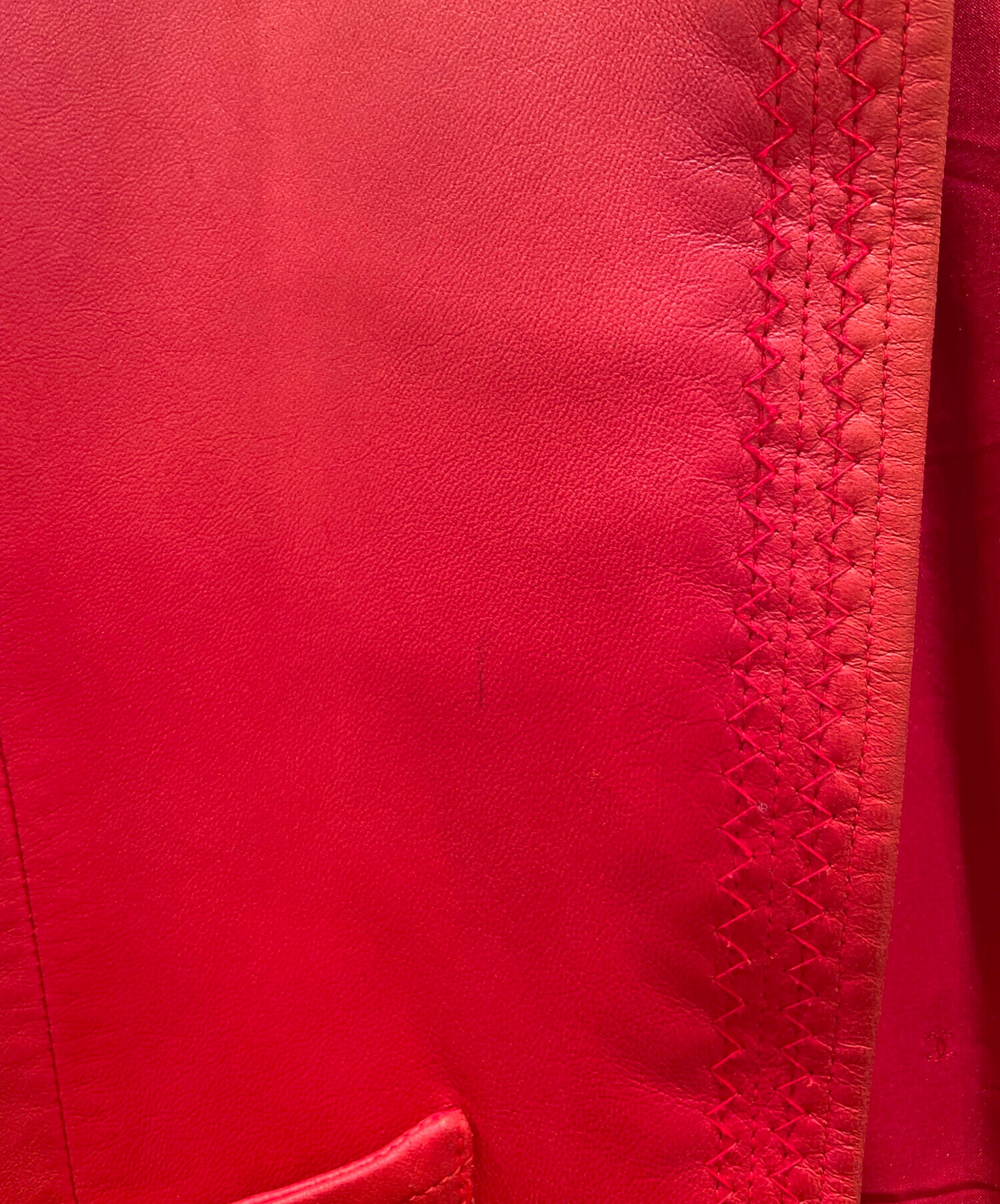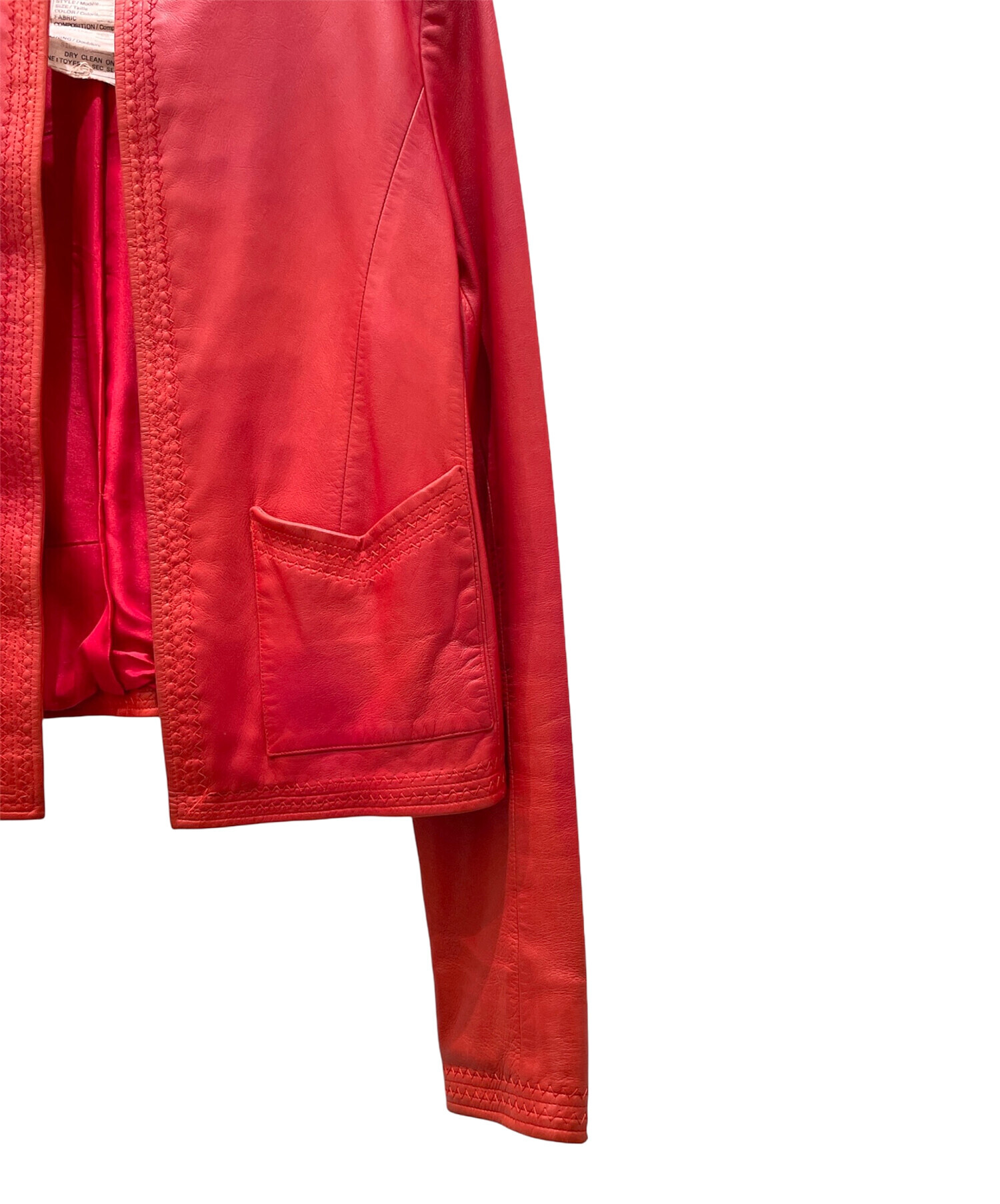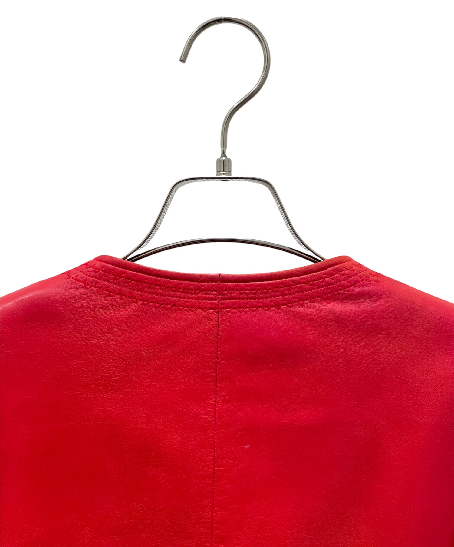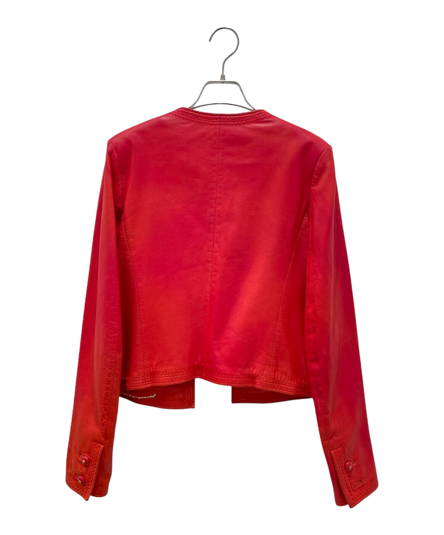| スタッフコメント | CHANELのレザージャケットでございます。鮮やかなレッドカラーが印象的で、シンプルながらも存在感のある一着。上質なレザーを使用し、しなやかで身体に馴染む着心地が魅力です。ノーカラーデザインにより、シャネルらしいエレガントさと洗練された雰囲気を演出。 |