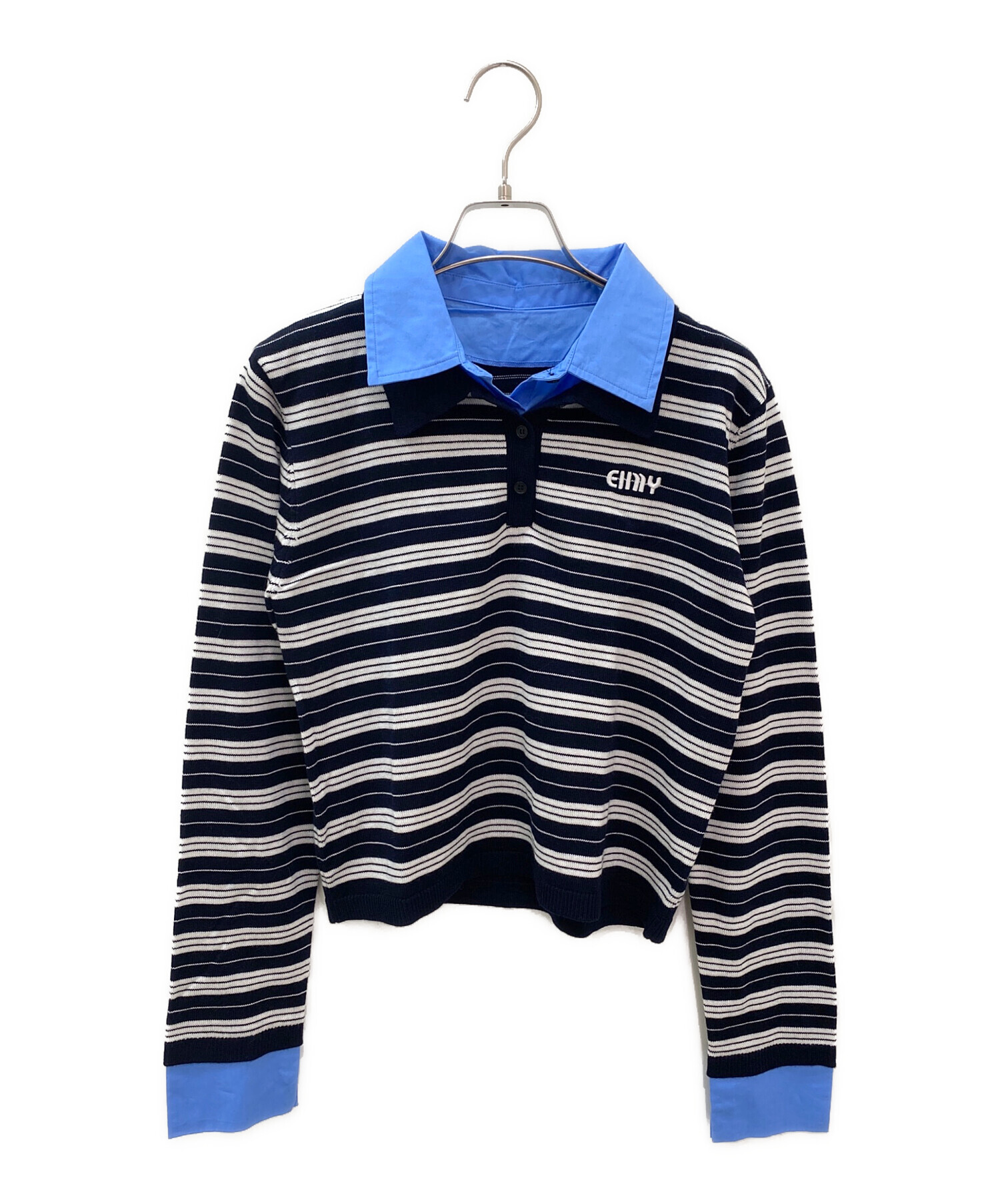 アイテム名 シャツレイヤードニット/ニット セーター ダブルカラーボーダーデザインニット