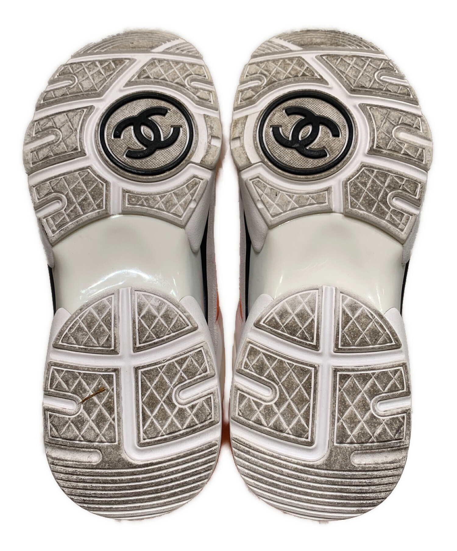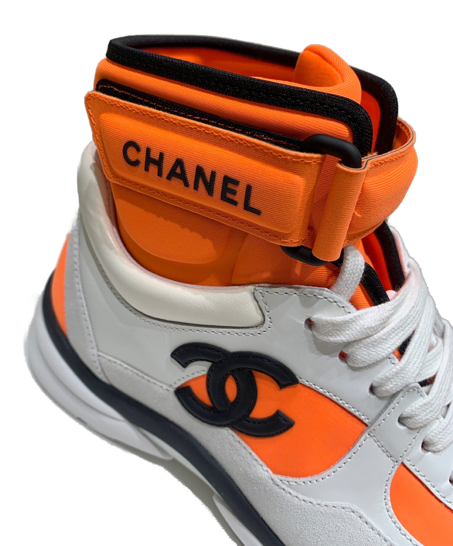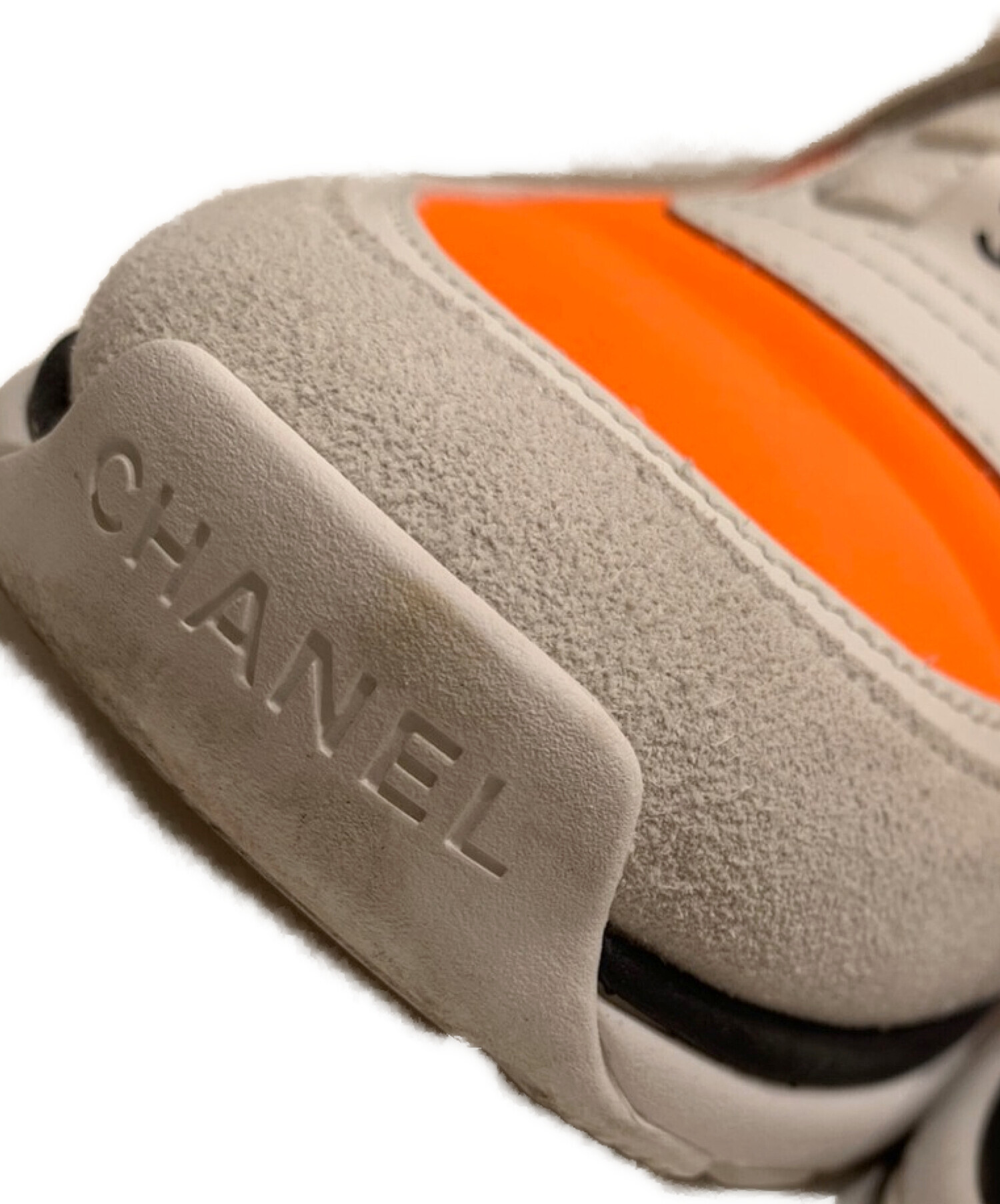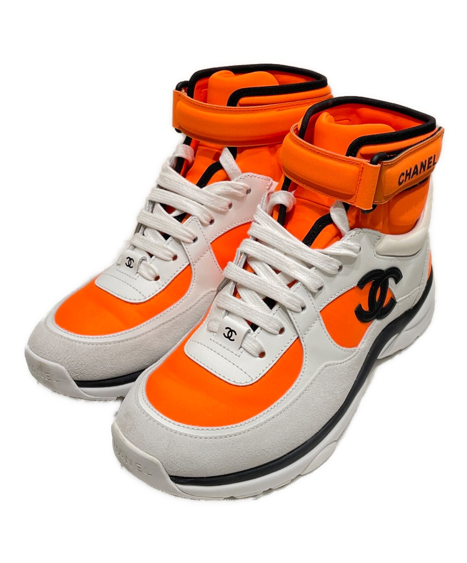 • CHANEL(シャネル)CHANEL (シャネル) ココマークハイカットスニーカー ホワイト×オレンジ サイズ:36の古着・服飾アイテム ソールに汚れ有